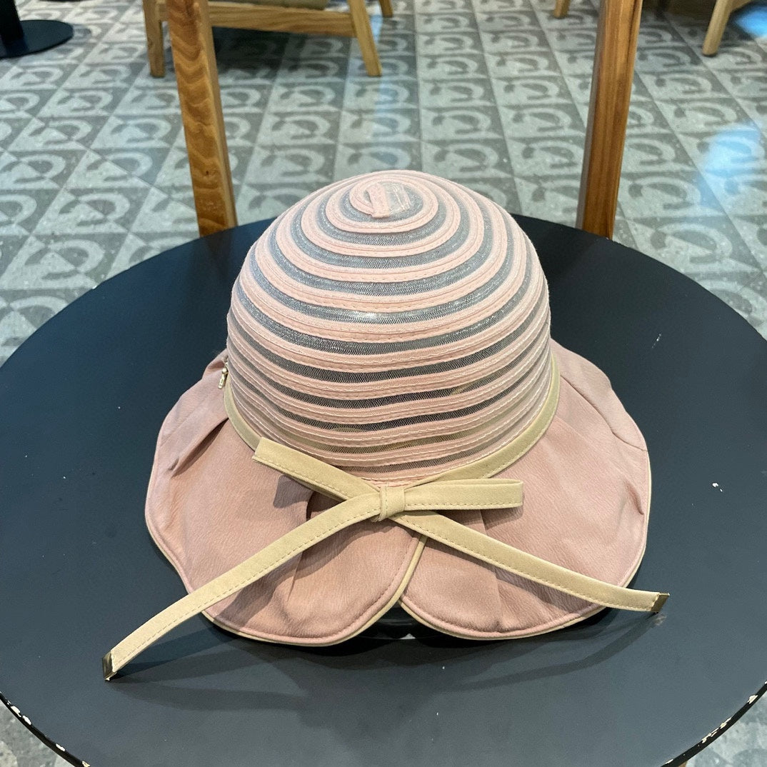 STRIPED BUCKET HAT IN WOOLLY BEIGE COTTON 434999
