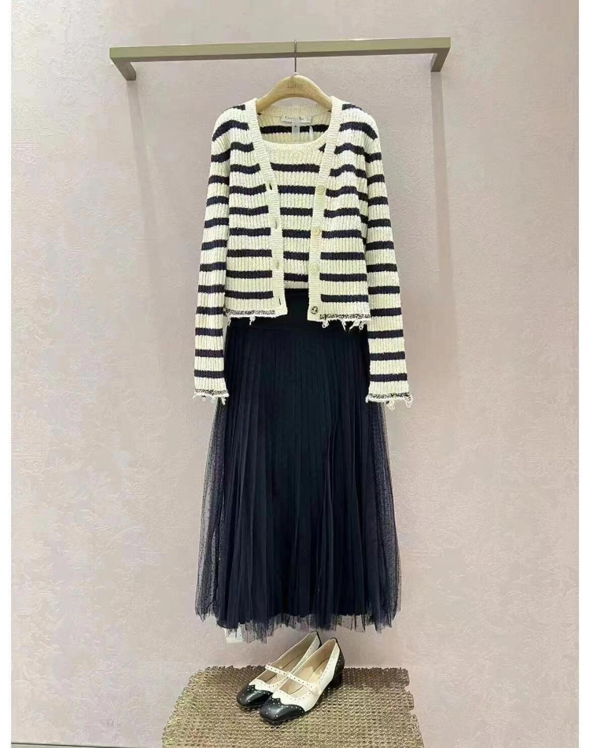Striped knitted Beige Black Cardigan