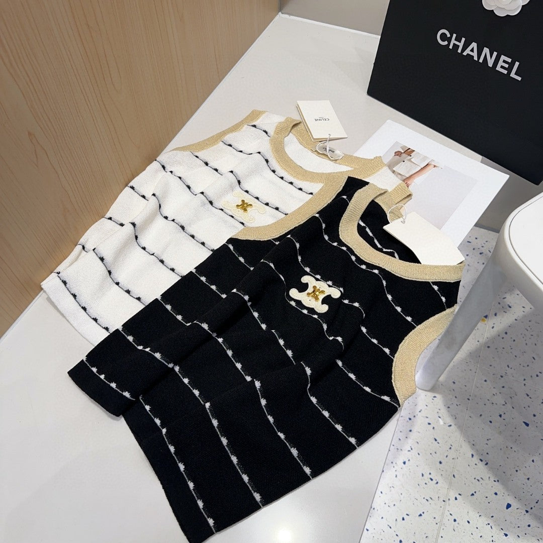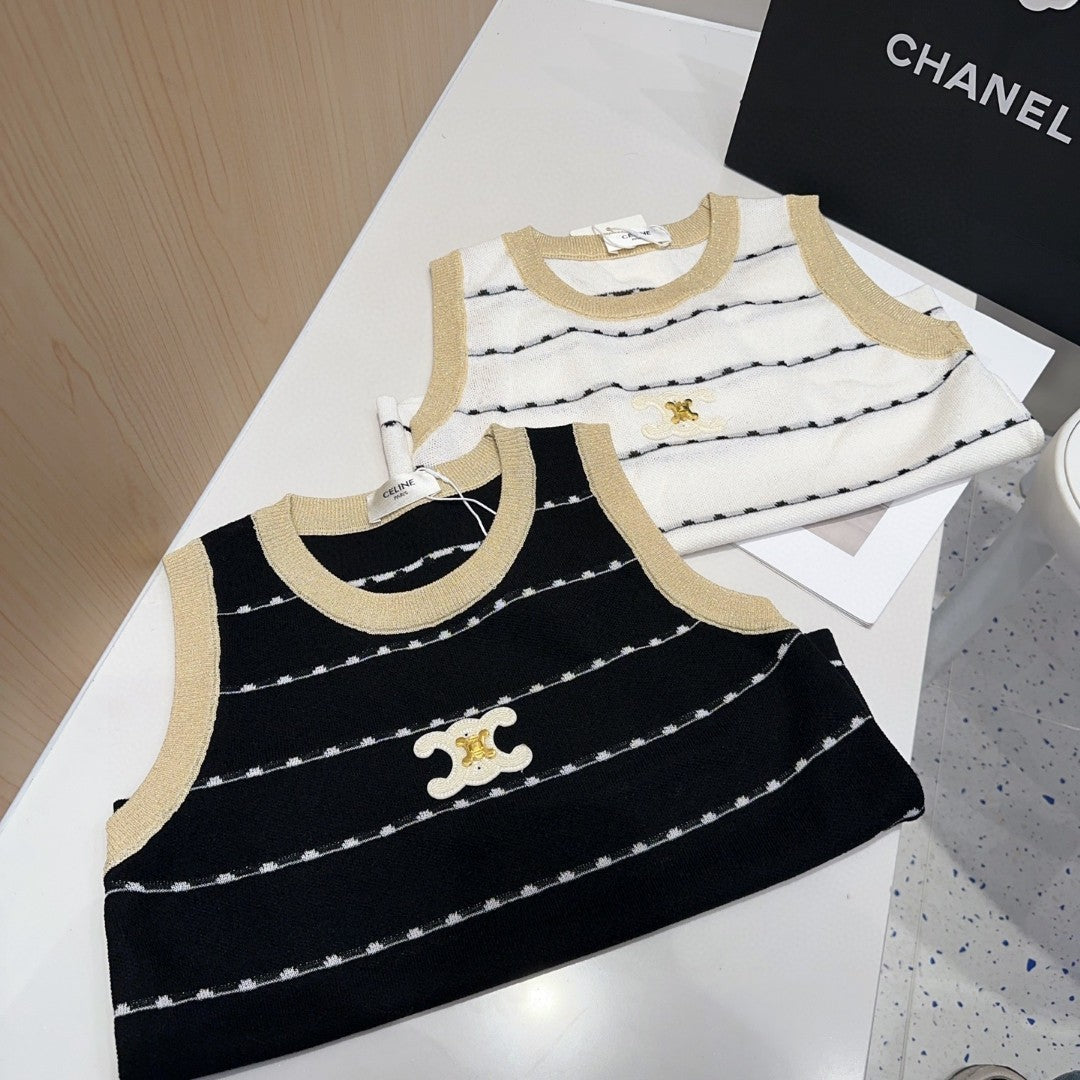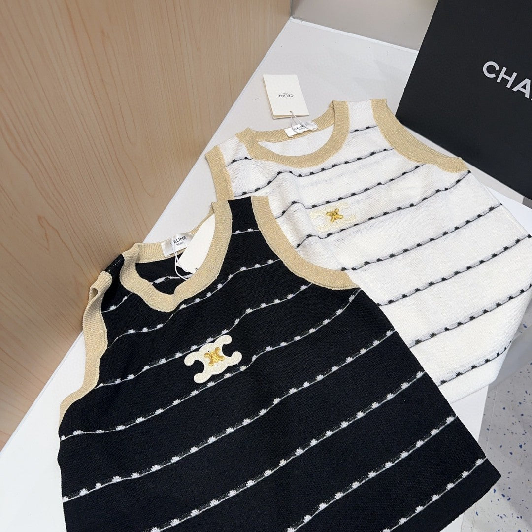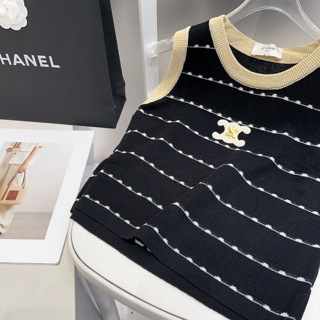 STRIPED TANK TOP 615177 IN BLACK COTTON RIBBED BEIGE TRIM
