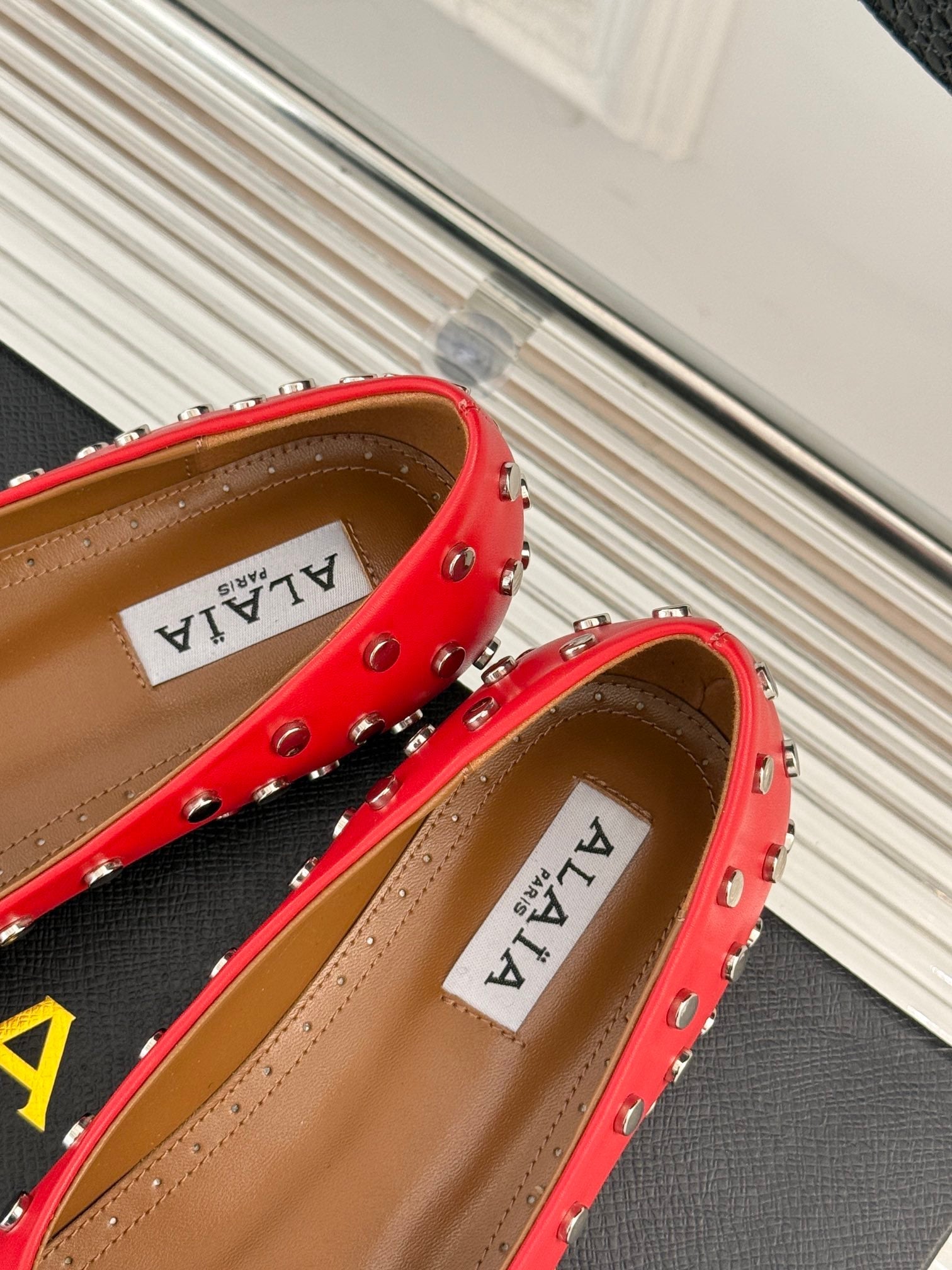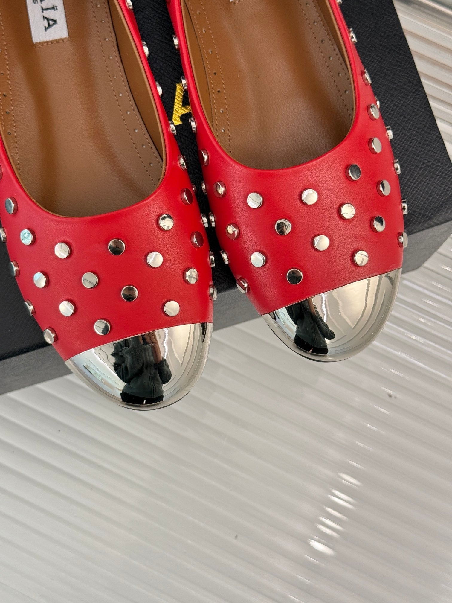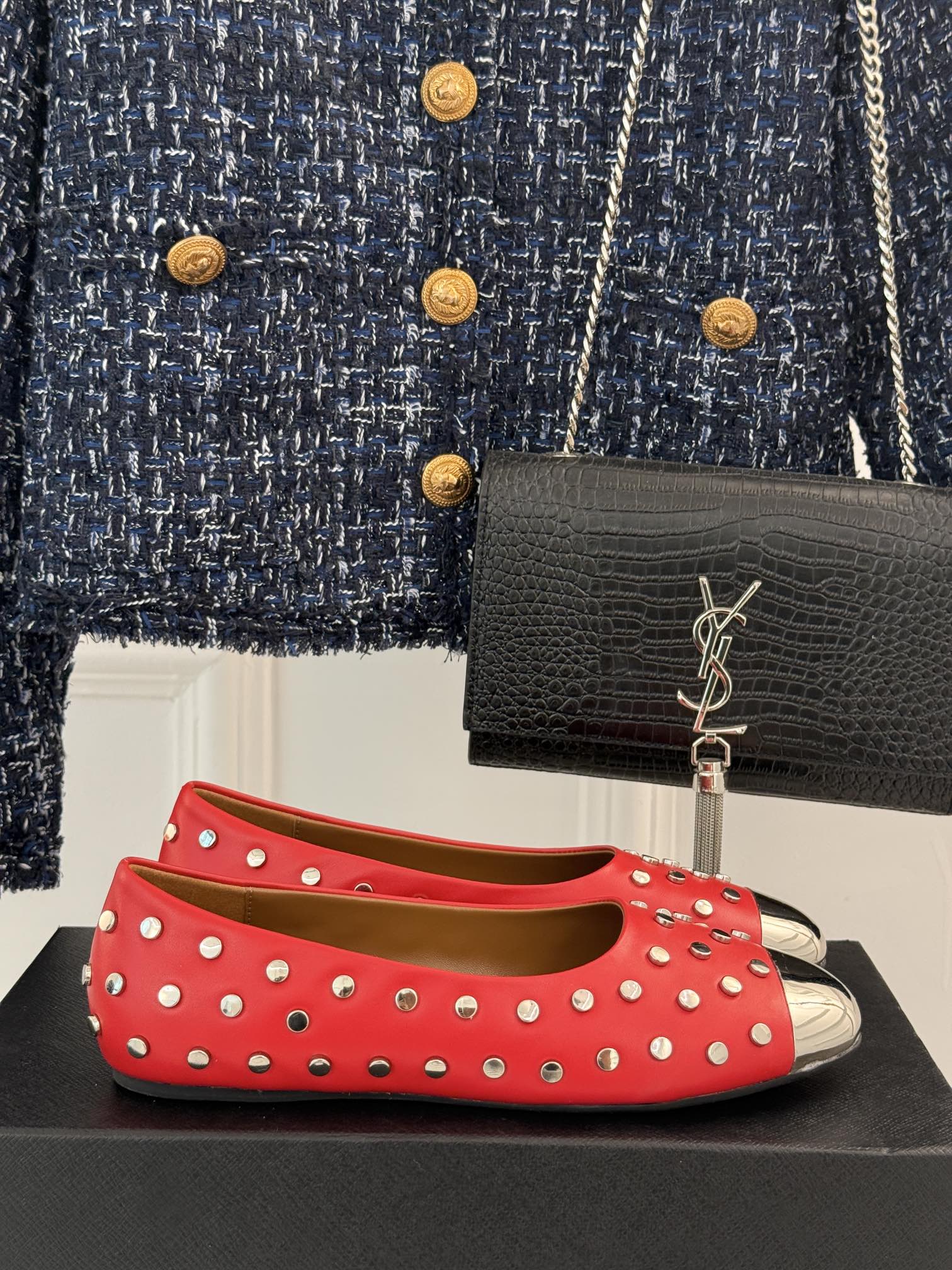 STUD-EMBELLISHED BALLET FLATS IN CHERRY RED CALFSKIN