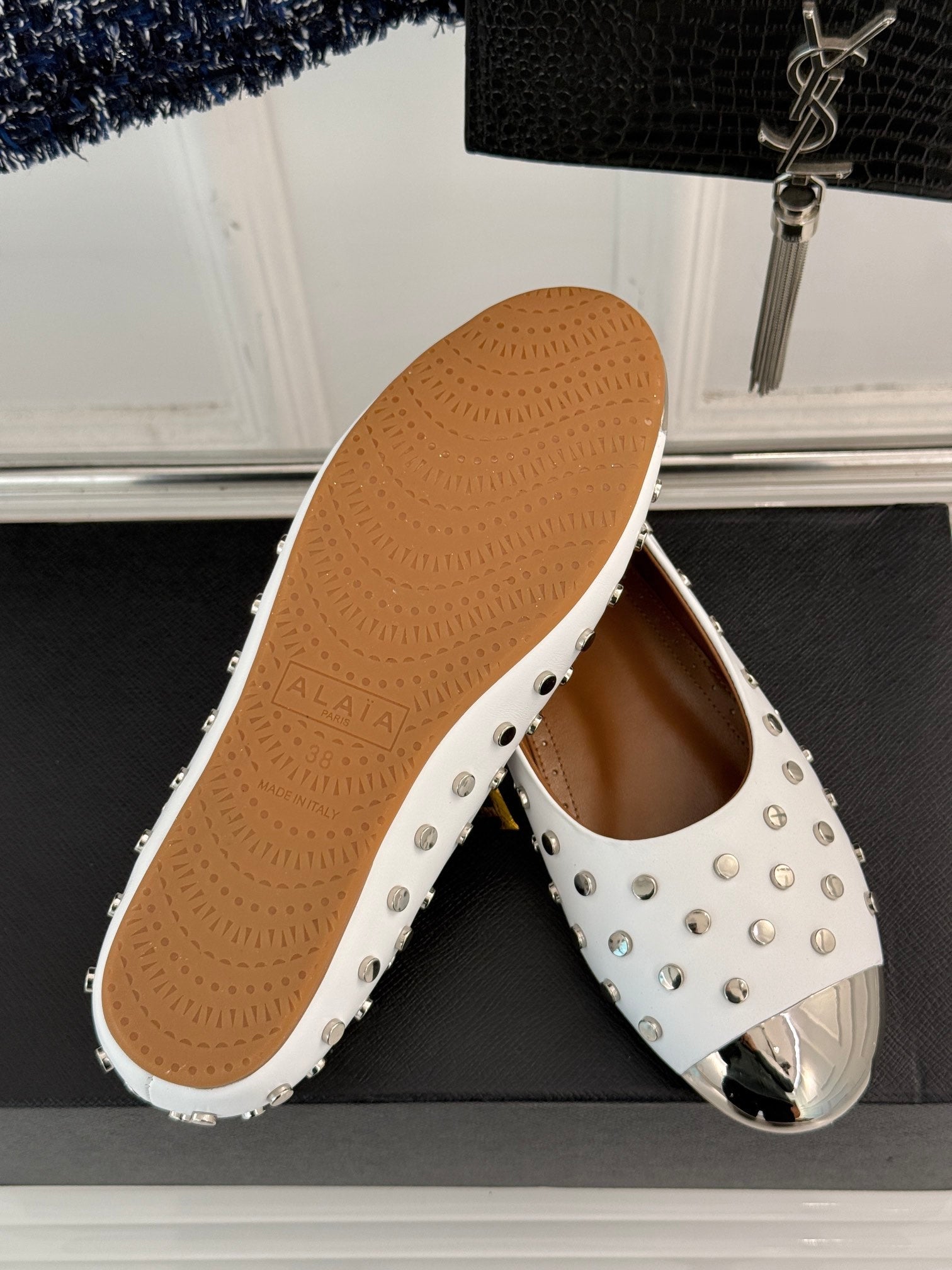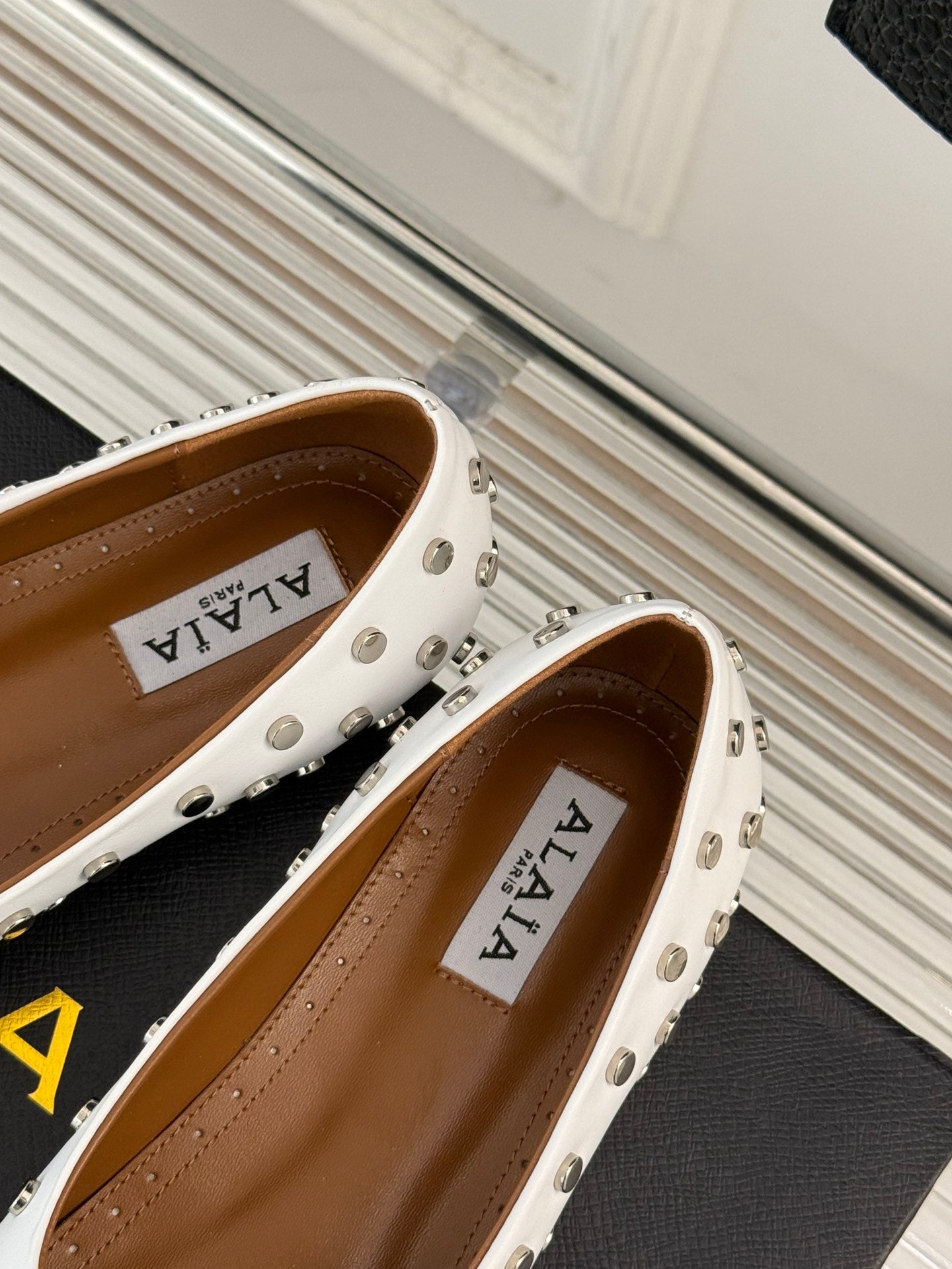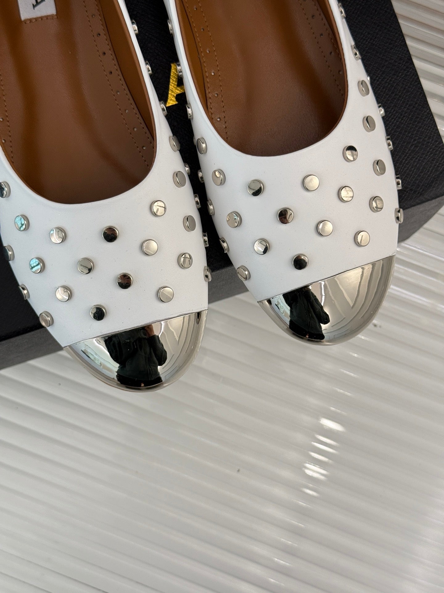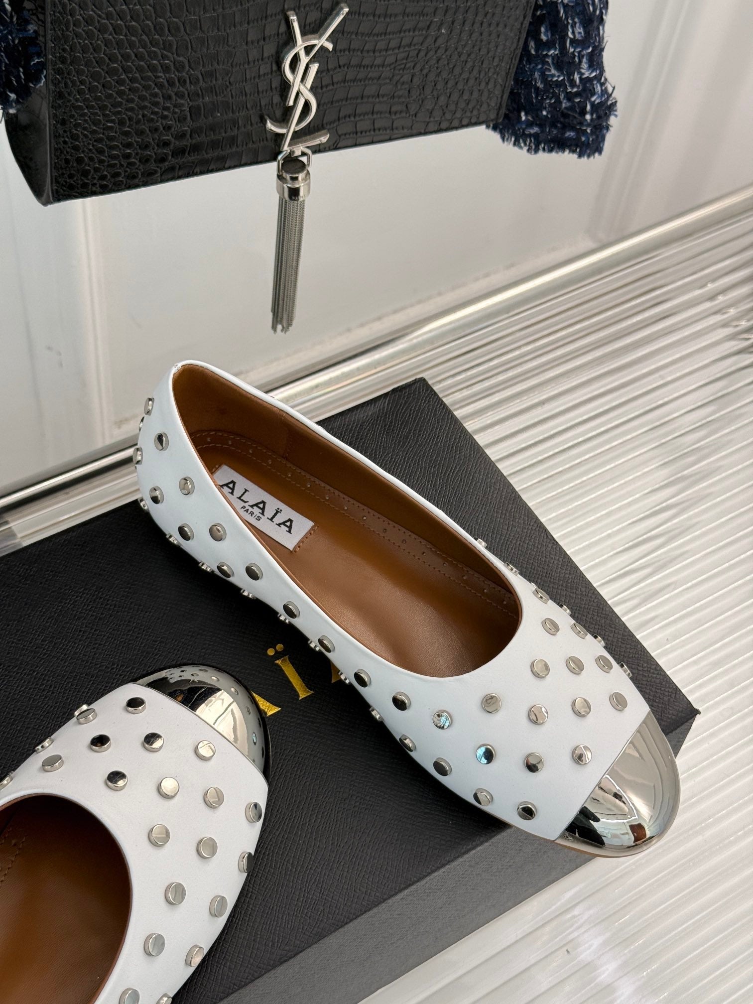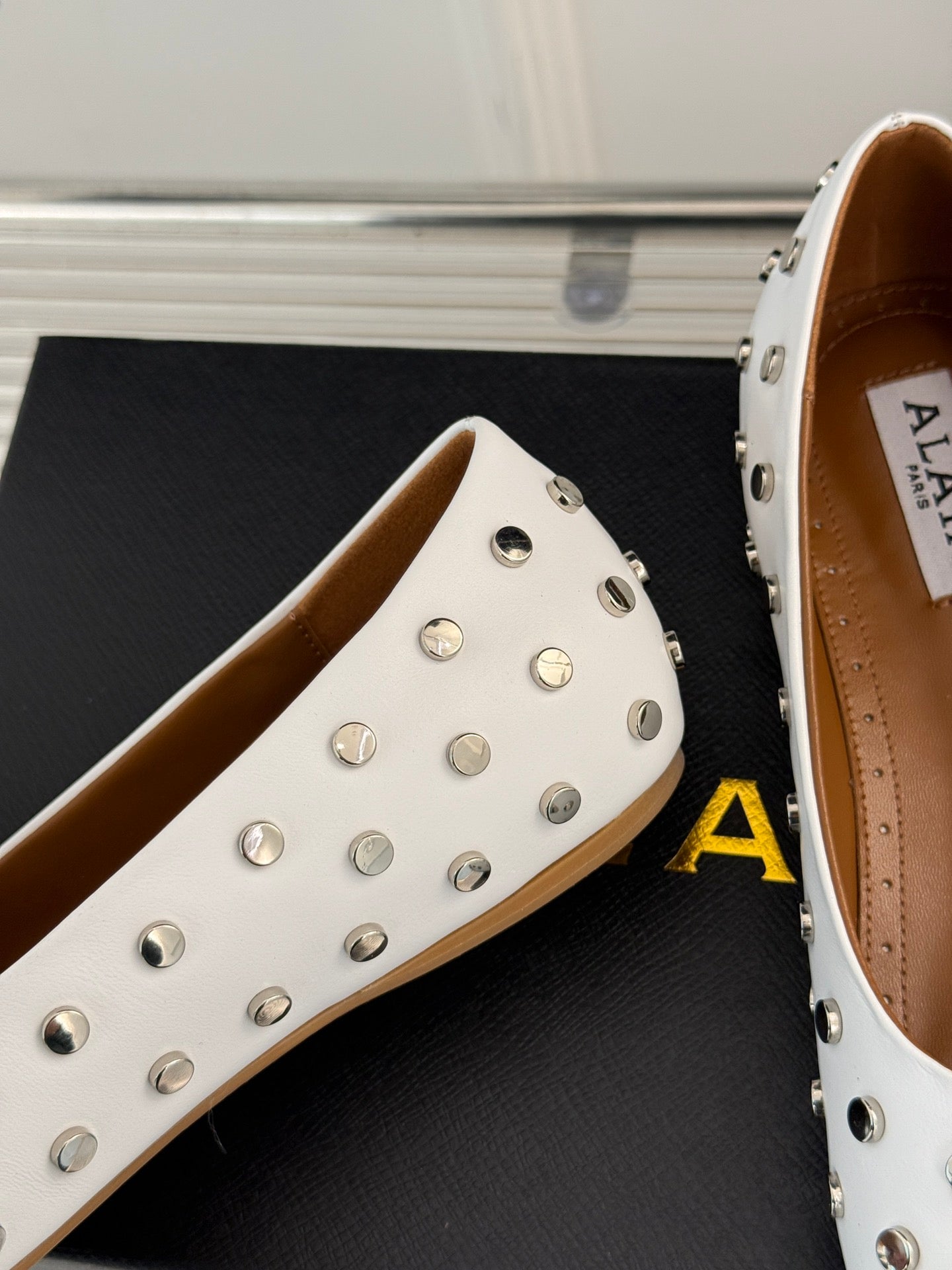 STUD-EMBELLISHED BALLET FLATS IN WHITE CALFSKIN