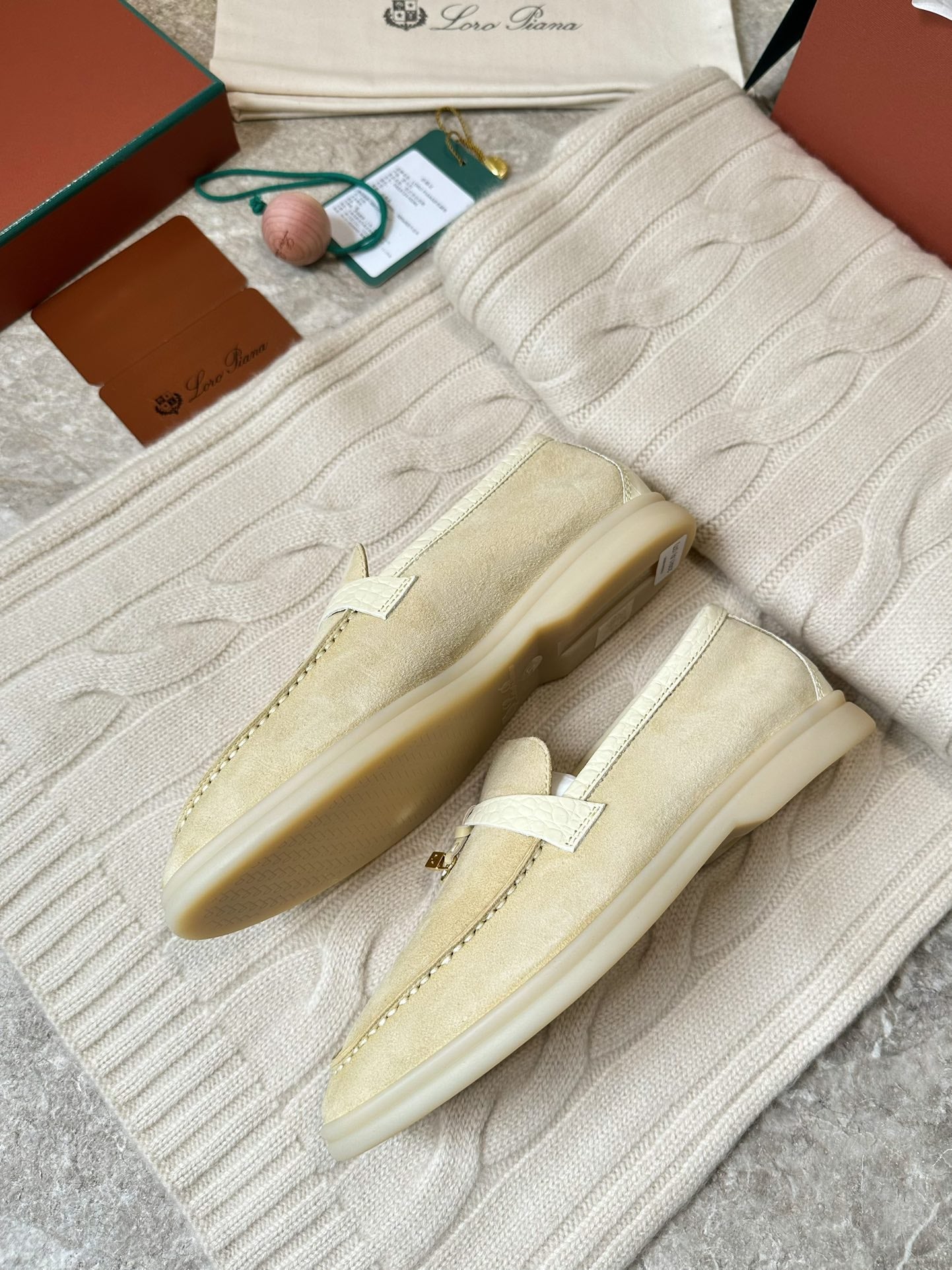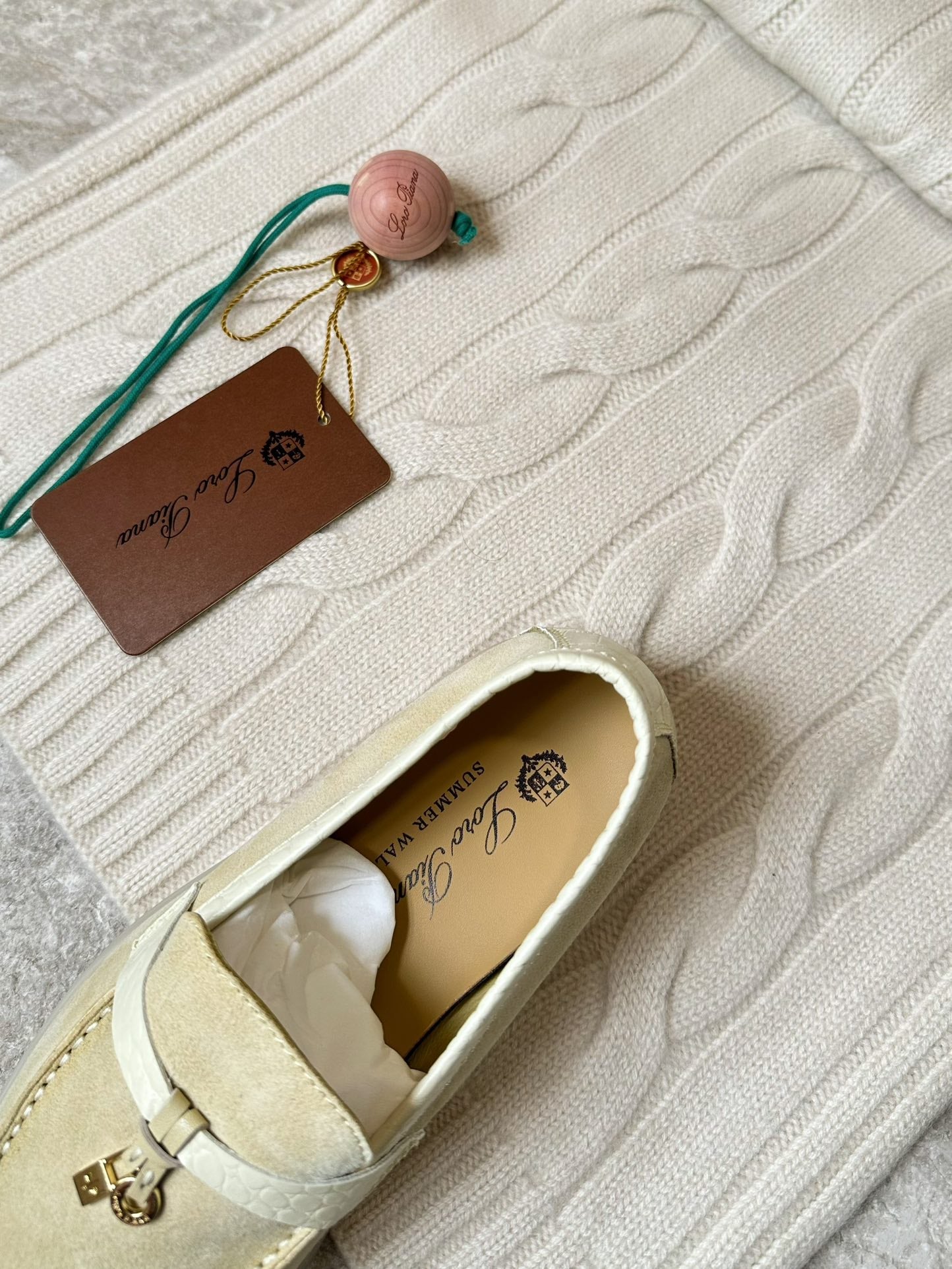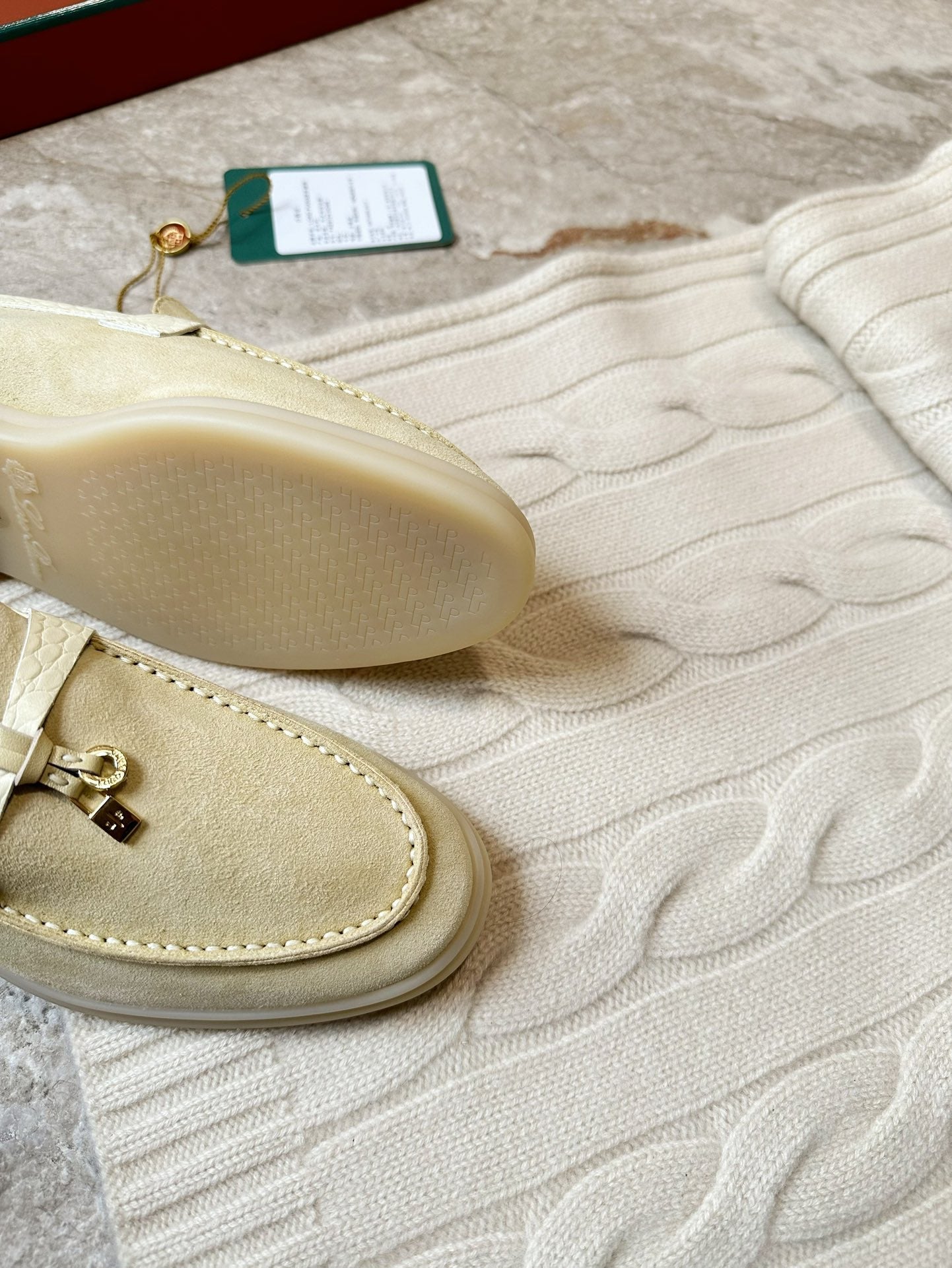SUMMER WALK LOAFERS BEIGE SUEDE GOLD PADLOCK CHARM