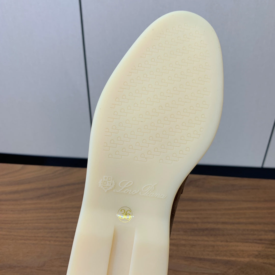 SUMMER WALK LOAFERS BROWN SUEDE SILVER PADLOCK CHARM