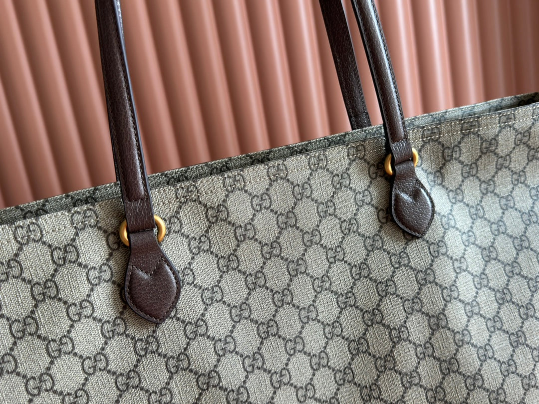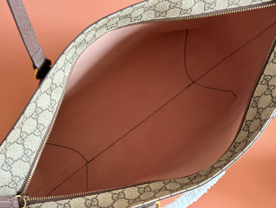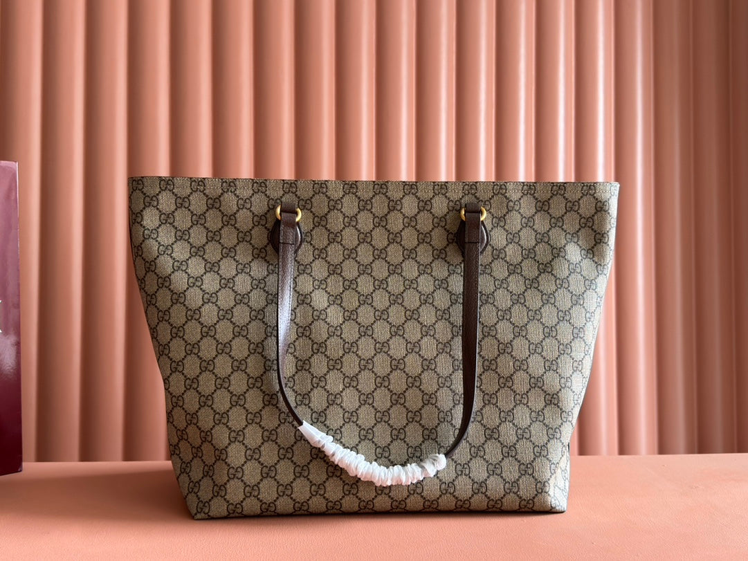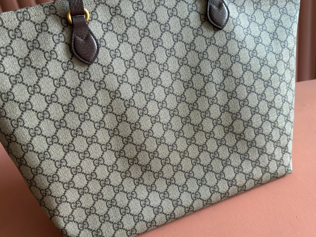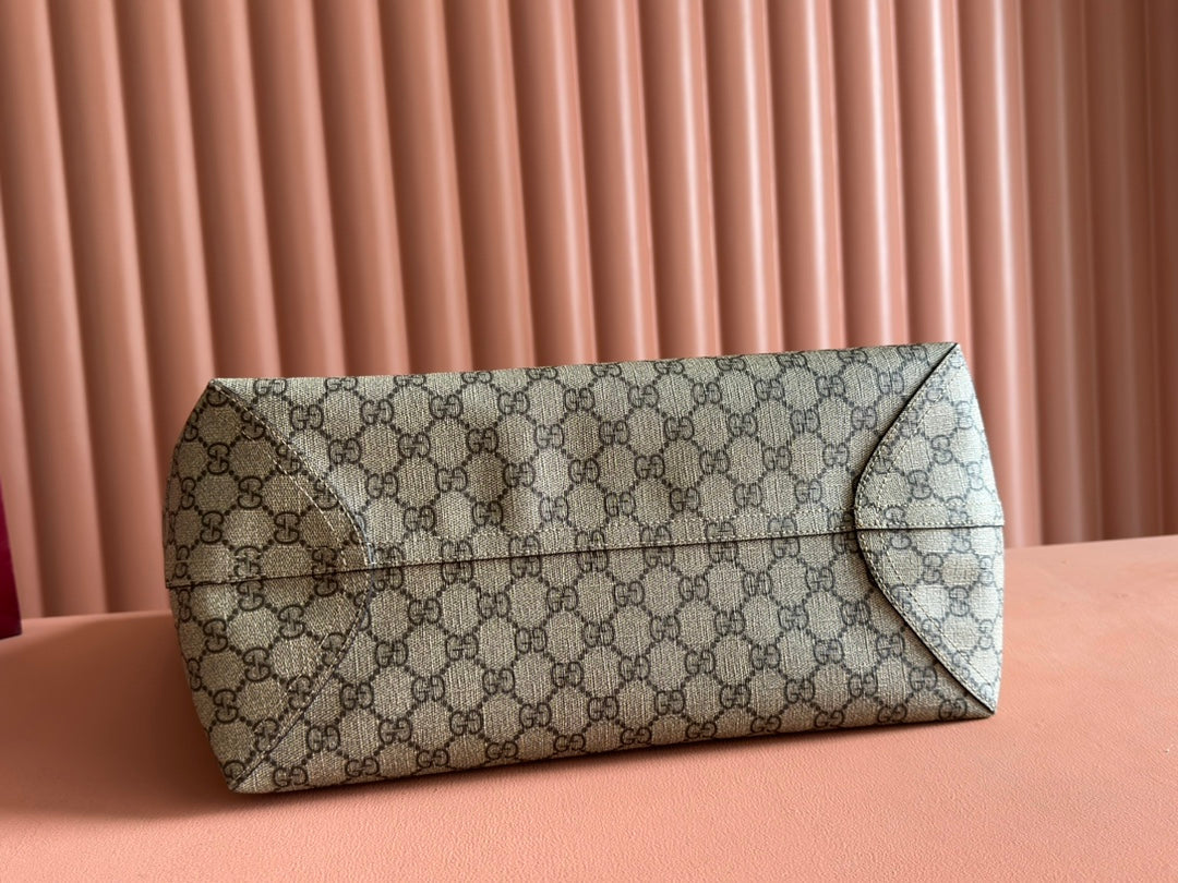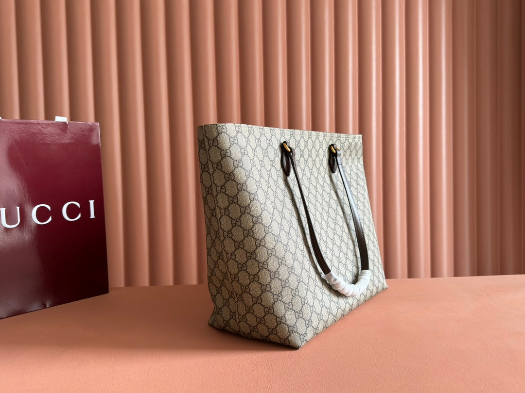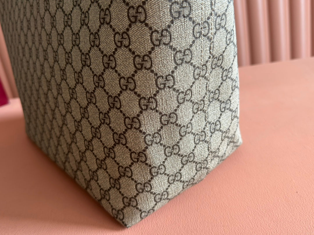 SUPREME MEDIUM TOTE BAG 38 IN BEIGE AND BROWN GG COATED FABRIC BROWN CALFSKIN