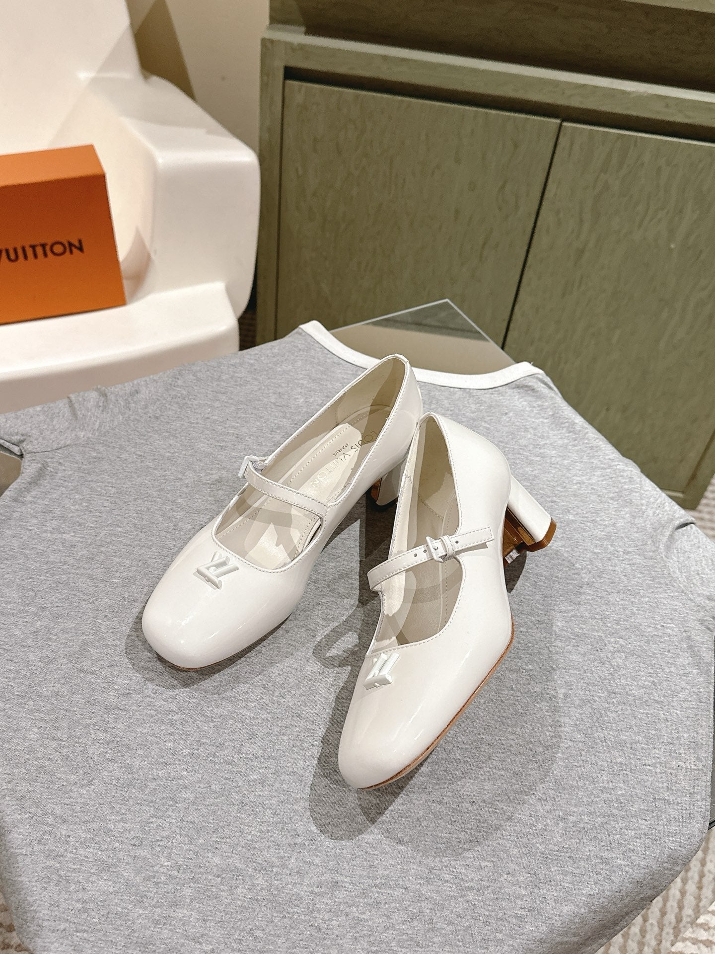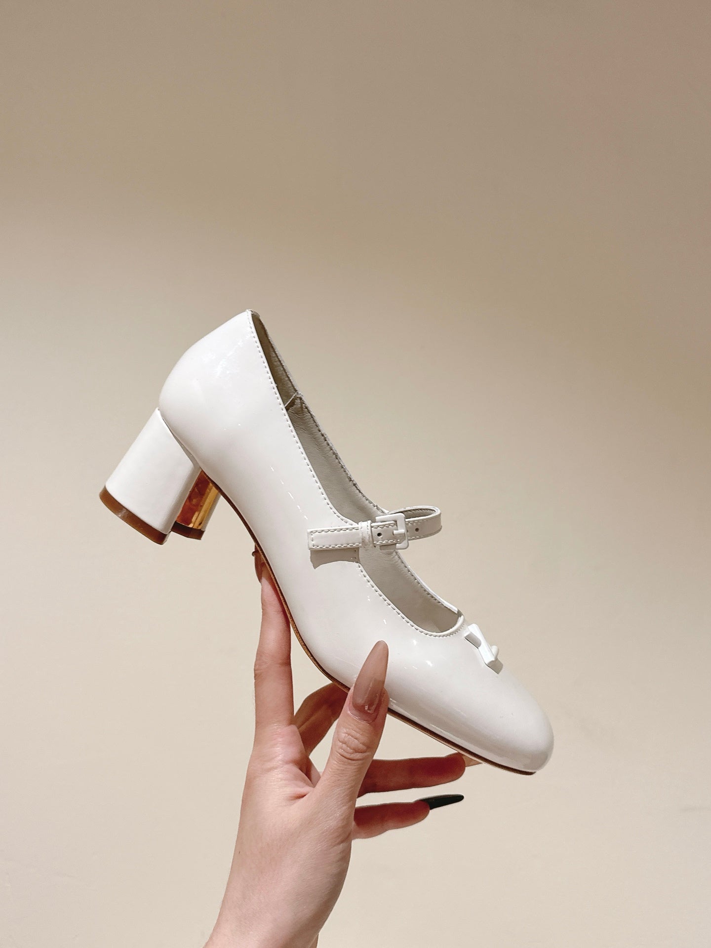 SWING HIGH MARY JANE 55 MM IN WHITE PATENT CALFSKIN