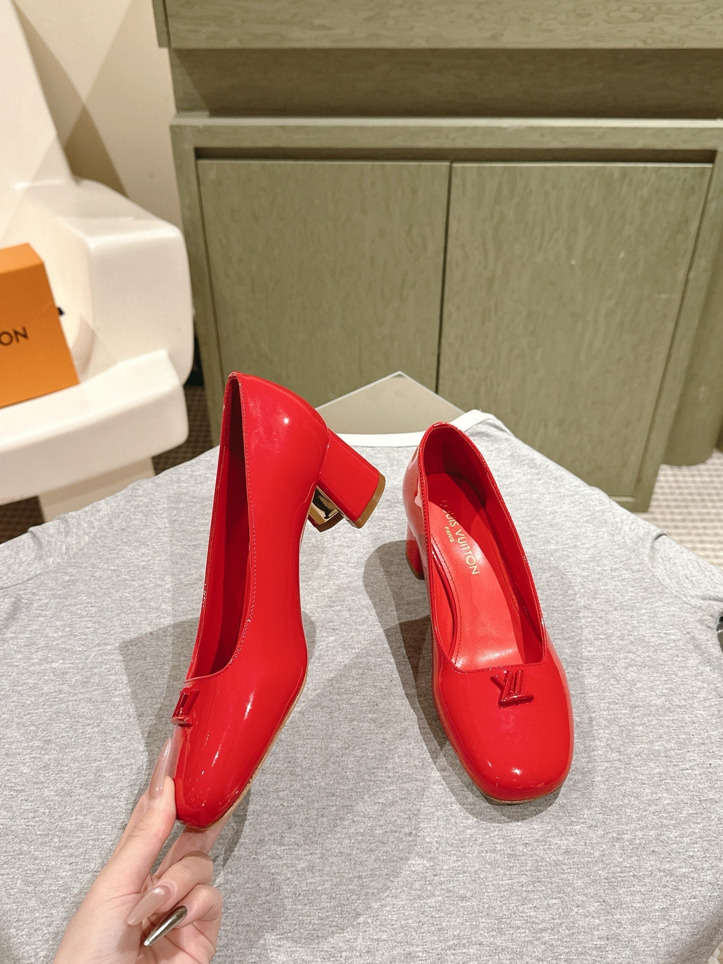 SWING HIGH PUMP 55 MM IN CRIMSON RED PATENT CALFSKIN
