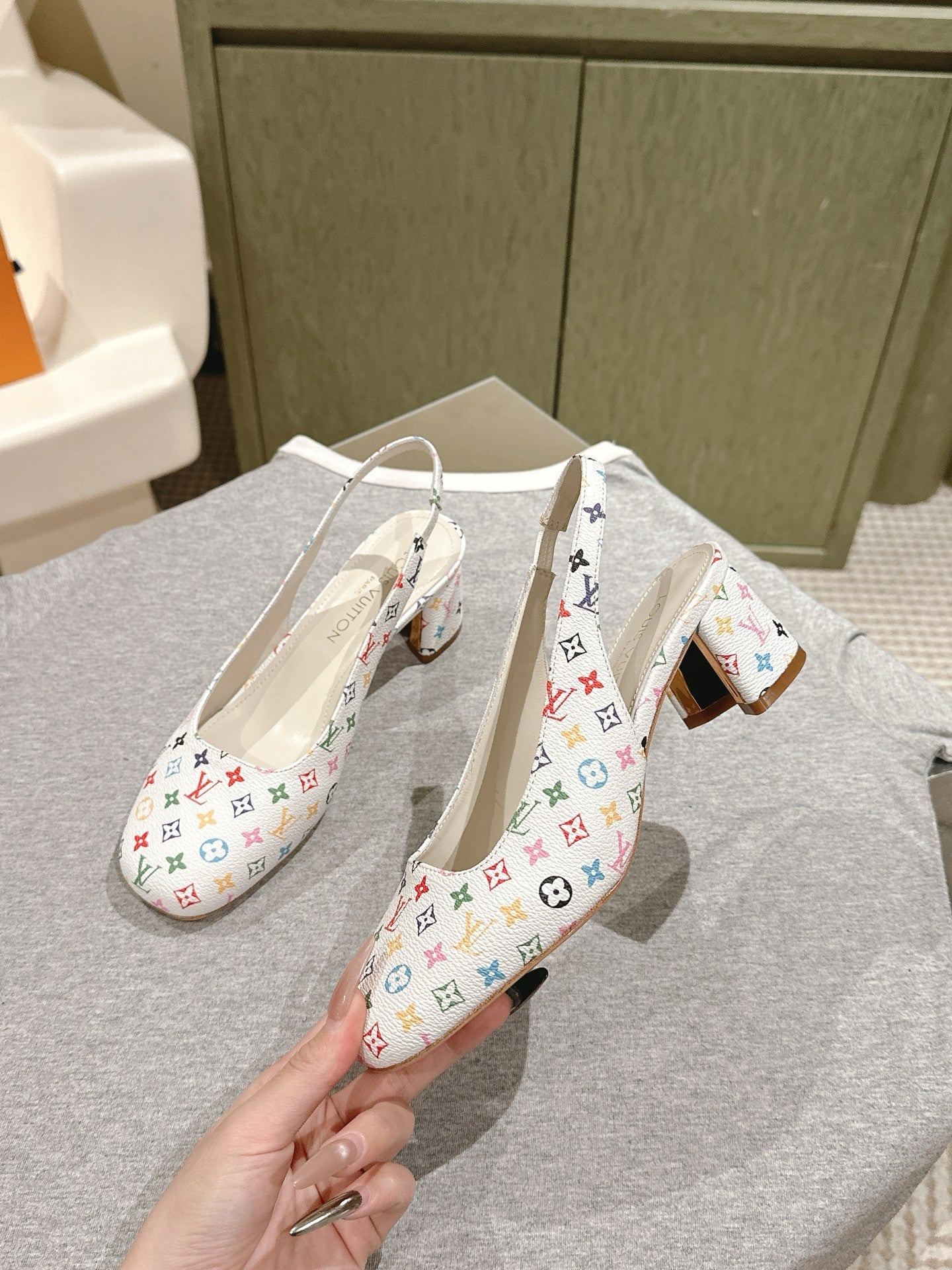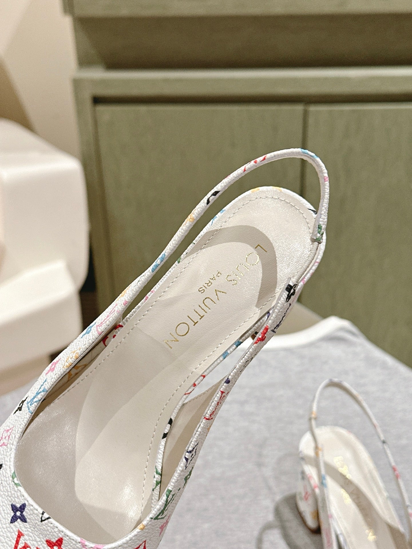 SWING SLINGBACK PUMP 55 MM IN WHITE MONOGRAM CALFSKIN