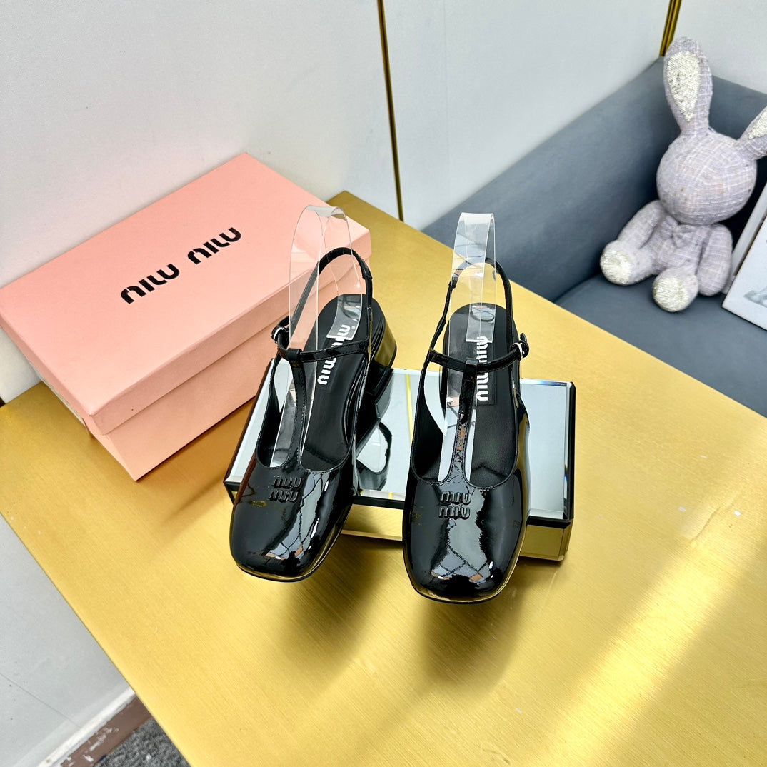 T-STRAPS SLINGBACK PUMPS IN BLACK GLOSSY LAMBSKIN