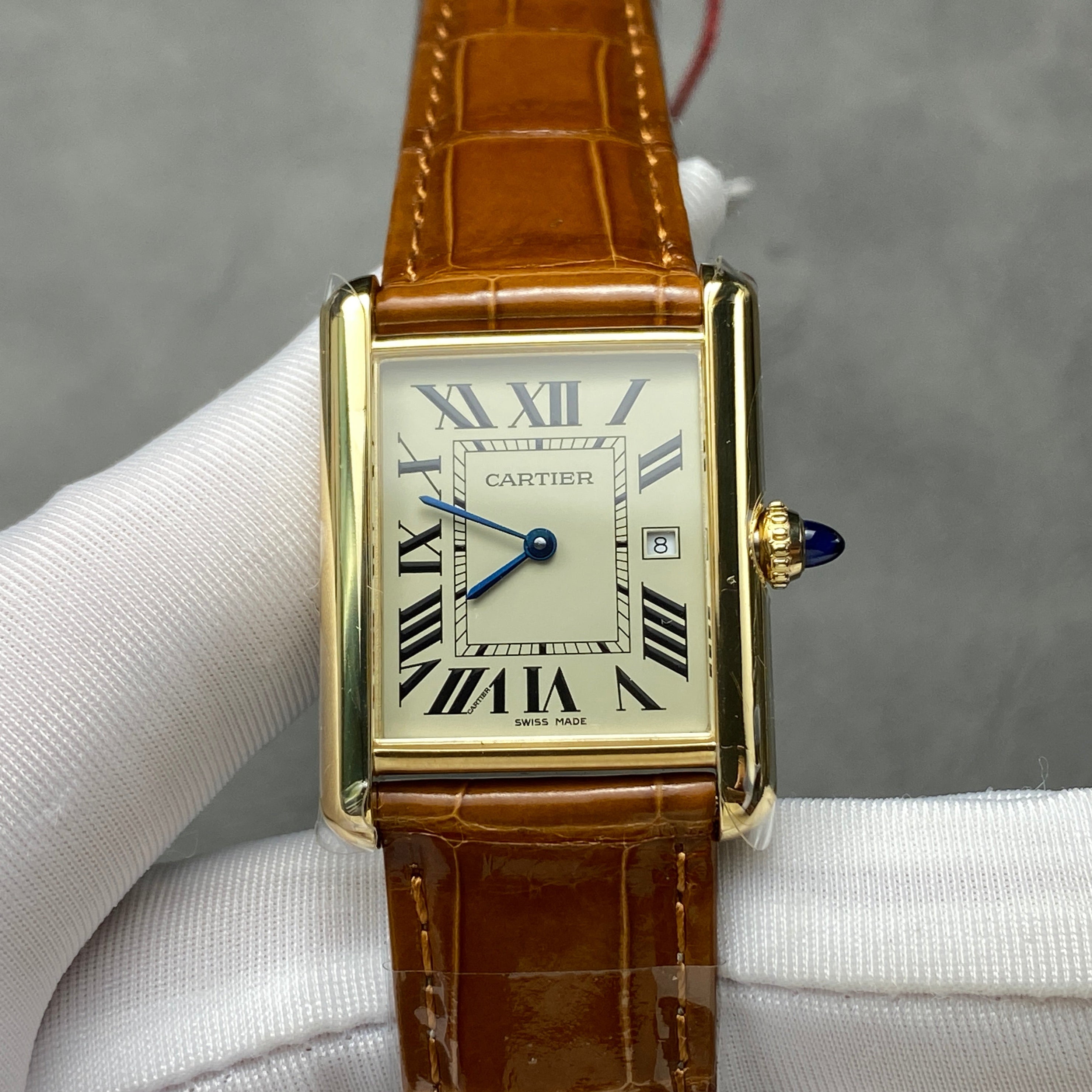 TANK LOUIS CARTIER WATCH GOLD CASE AND LEATHER STRAP