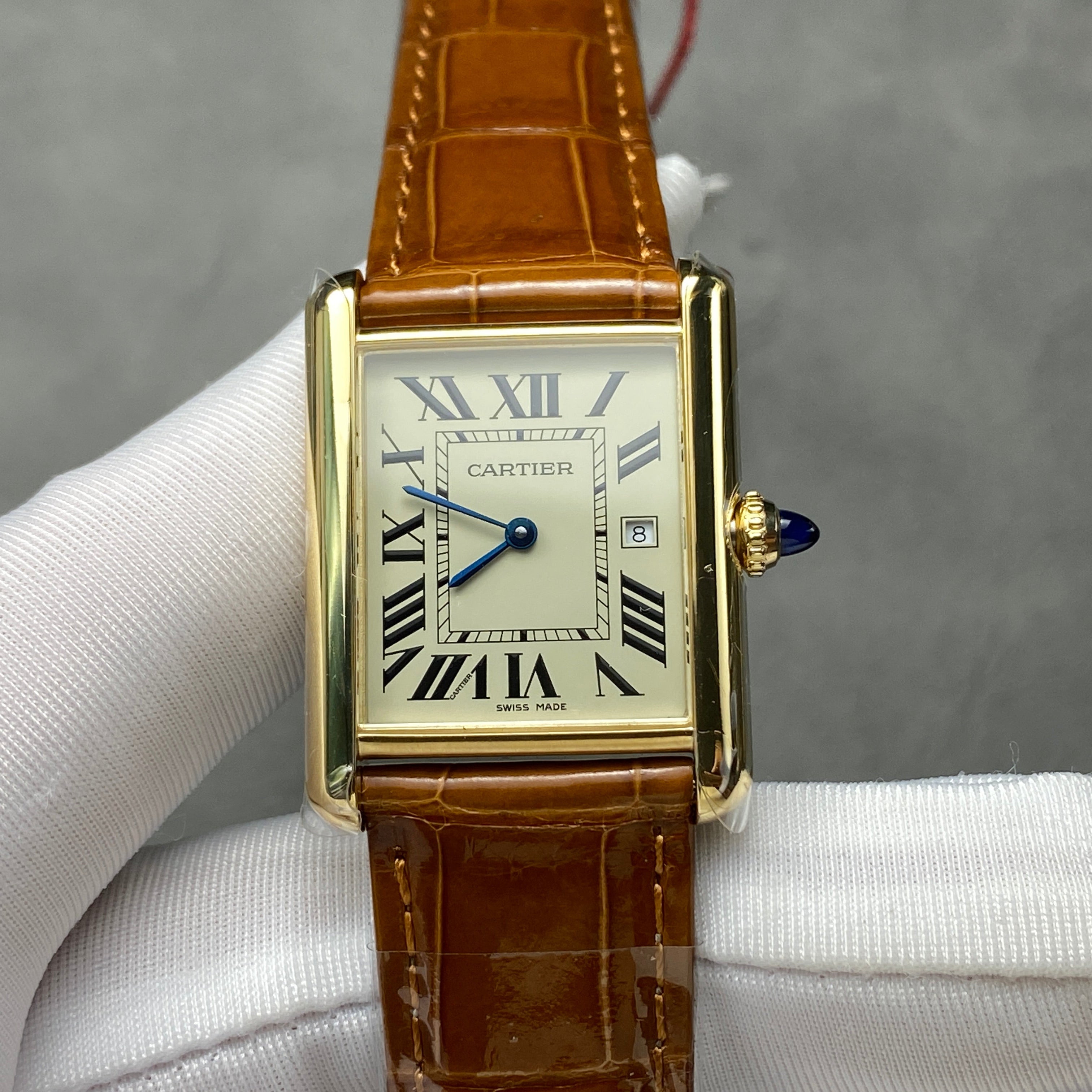 TANK SMALL MODEL LOUIS CARTIER WATCH GOLD CASE WITH CINNAMON BROWN LEATHER STRAP