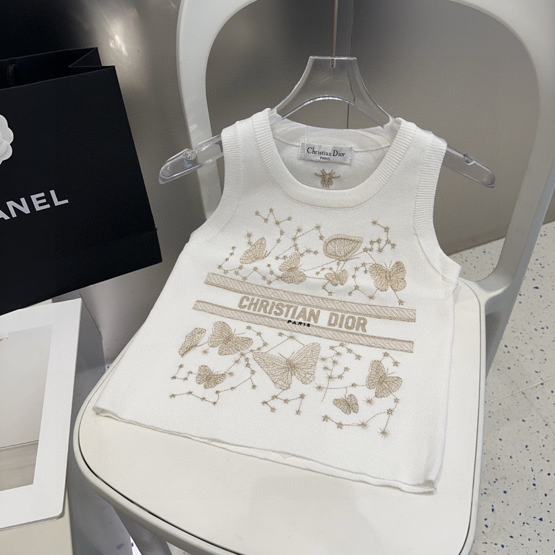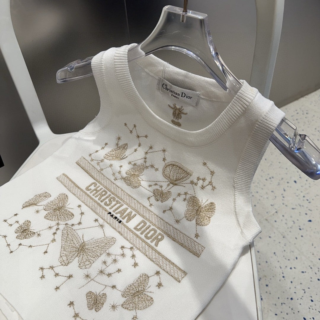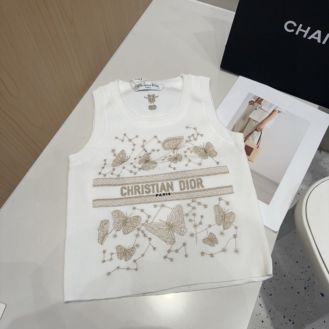 TANK TOP 610350 IN WHITE COTTON RIBBED EMBOSSED BUTTERFLY