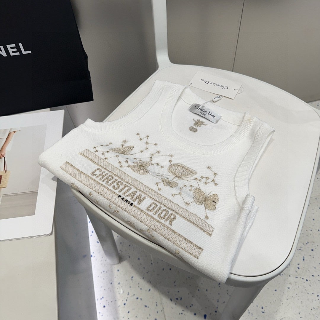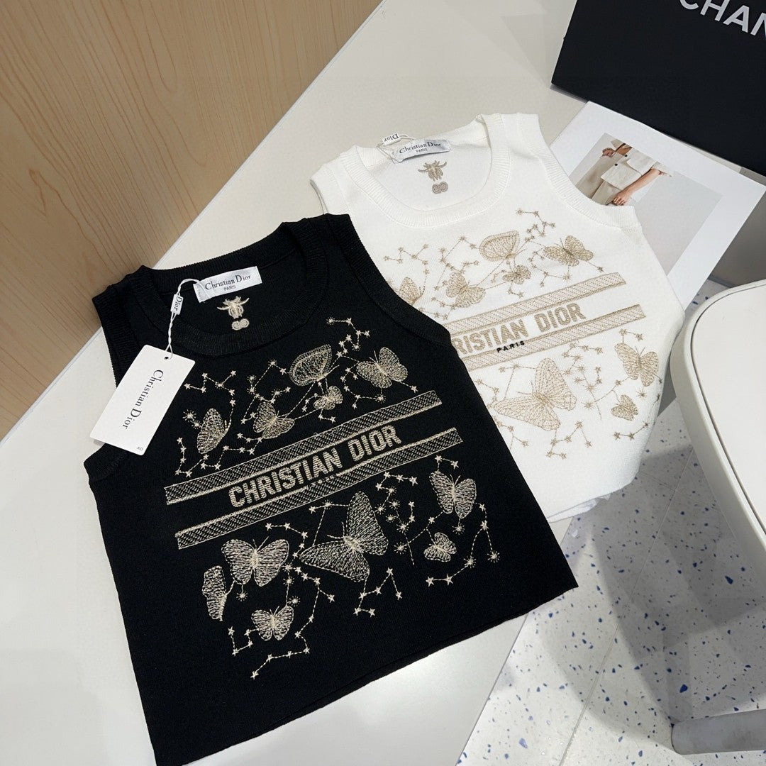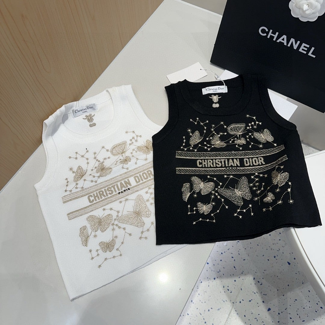TANK TOP 610350 IN WHITE COTTON RIBBED EMBOSSED BUTTERFLY