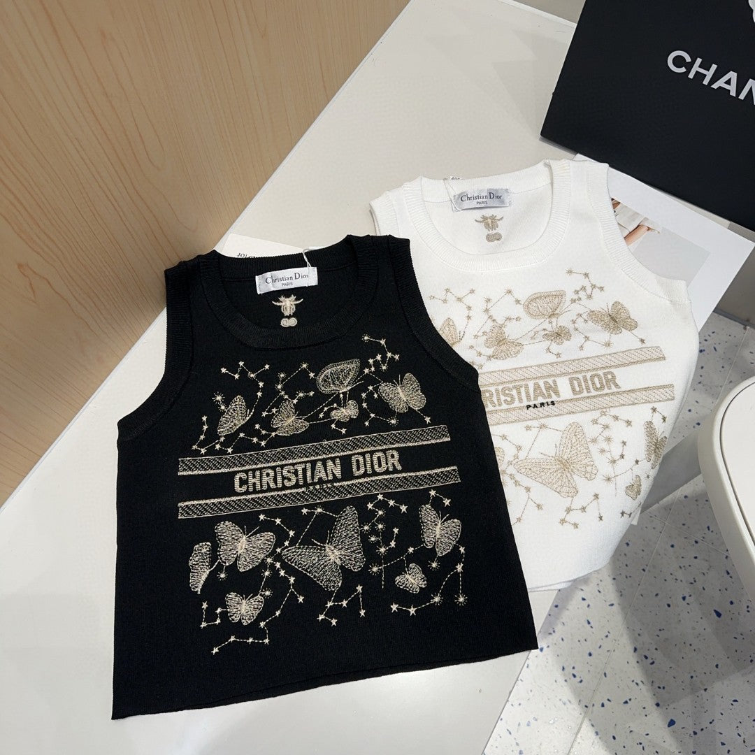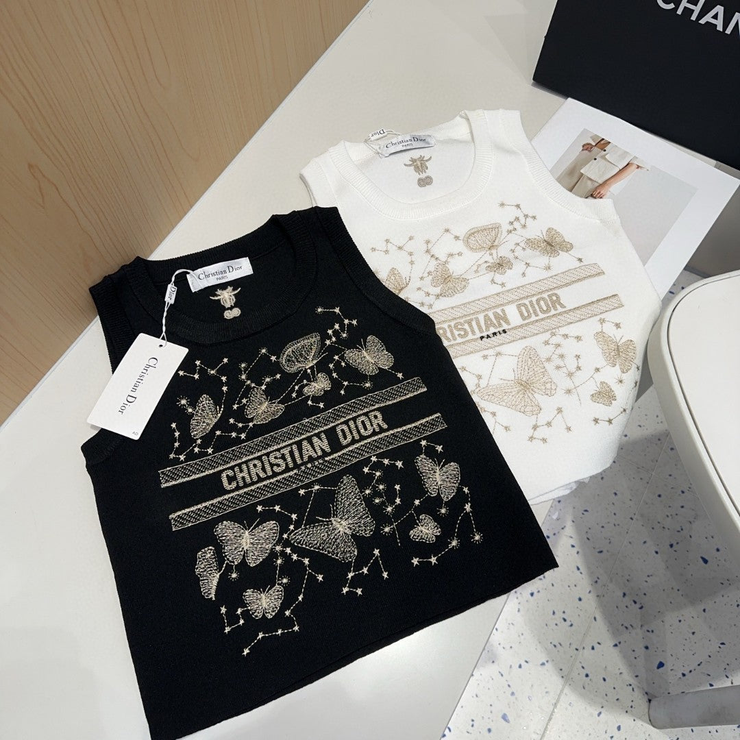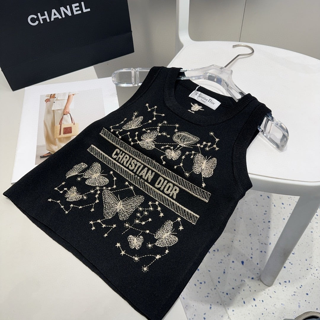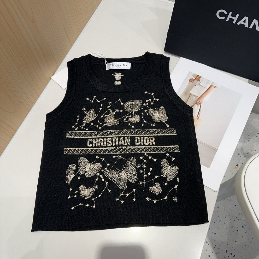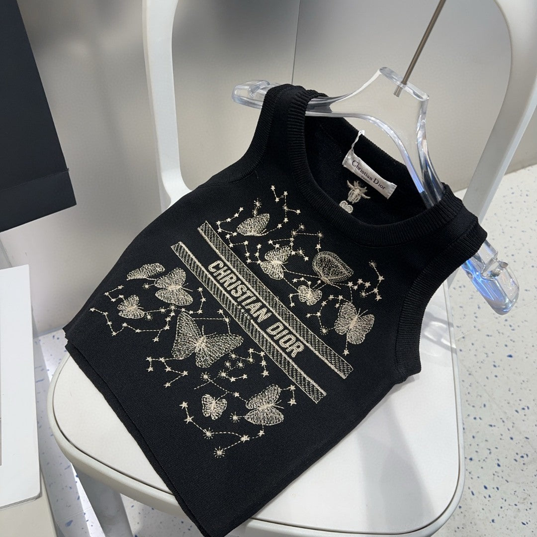 TANK TOP 610351 IN BLACK COTTON RIBBED EMBOSSED BUTTERFLY