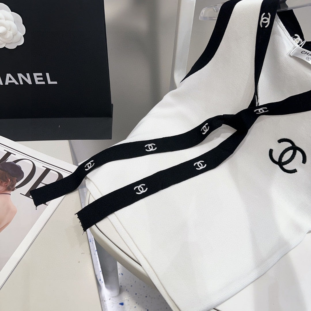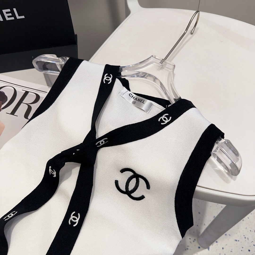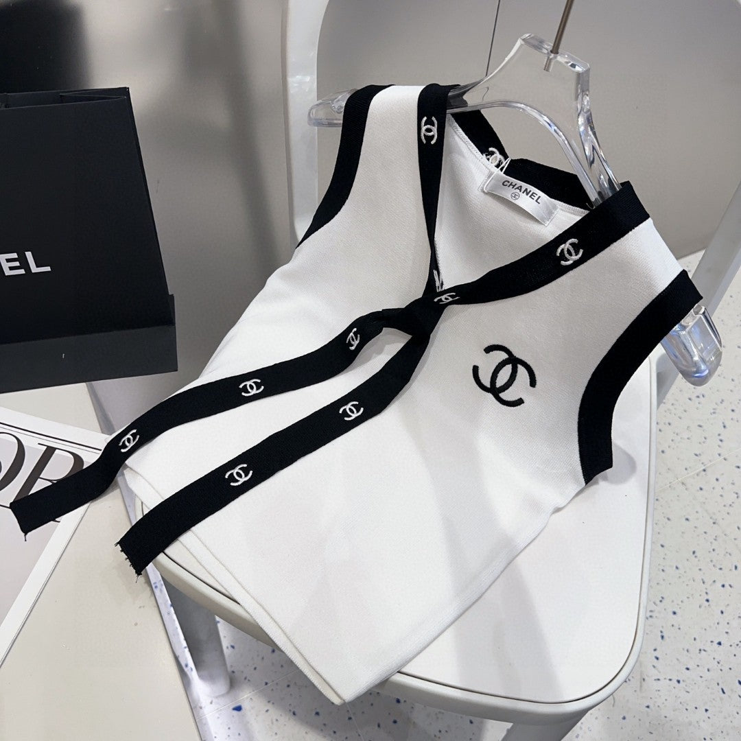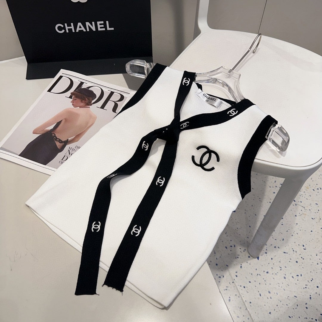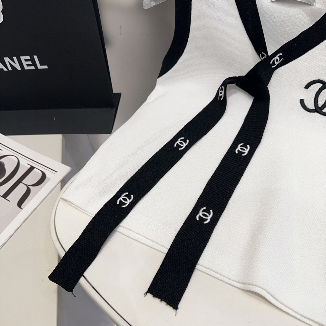 TANK TOP 624514 IN WHITE COTTON RIBBED BLACK TRIM AND BOW
