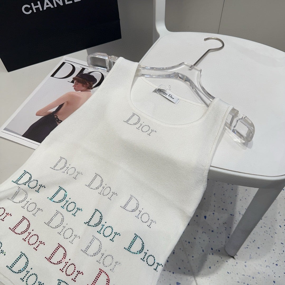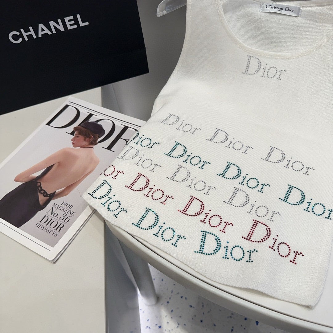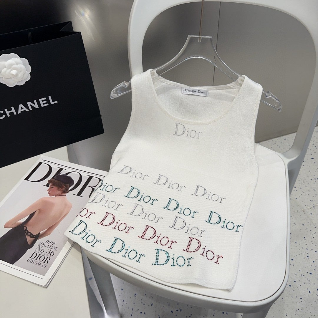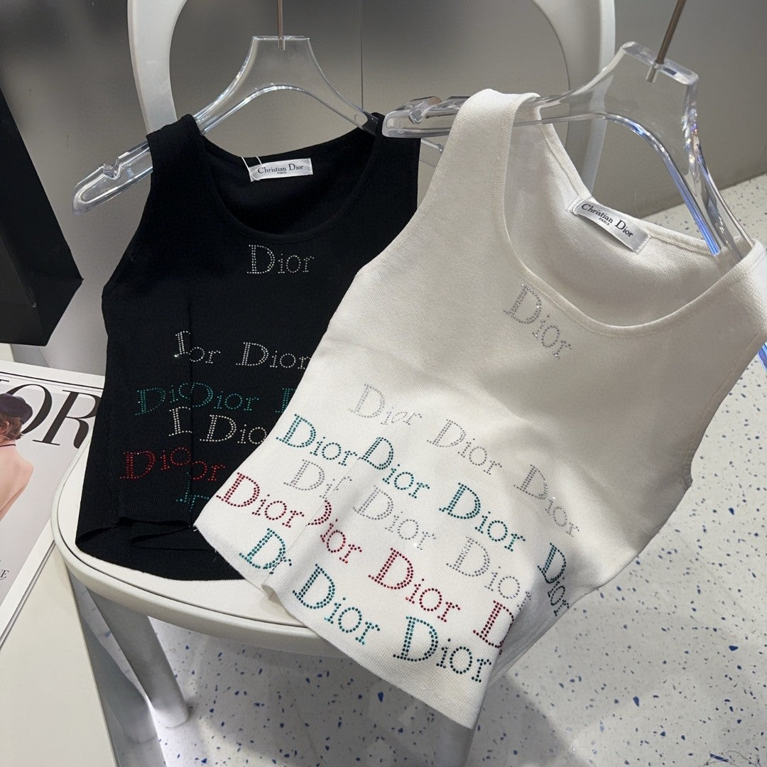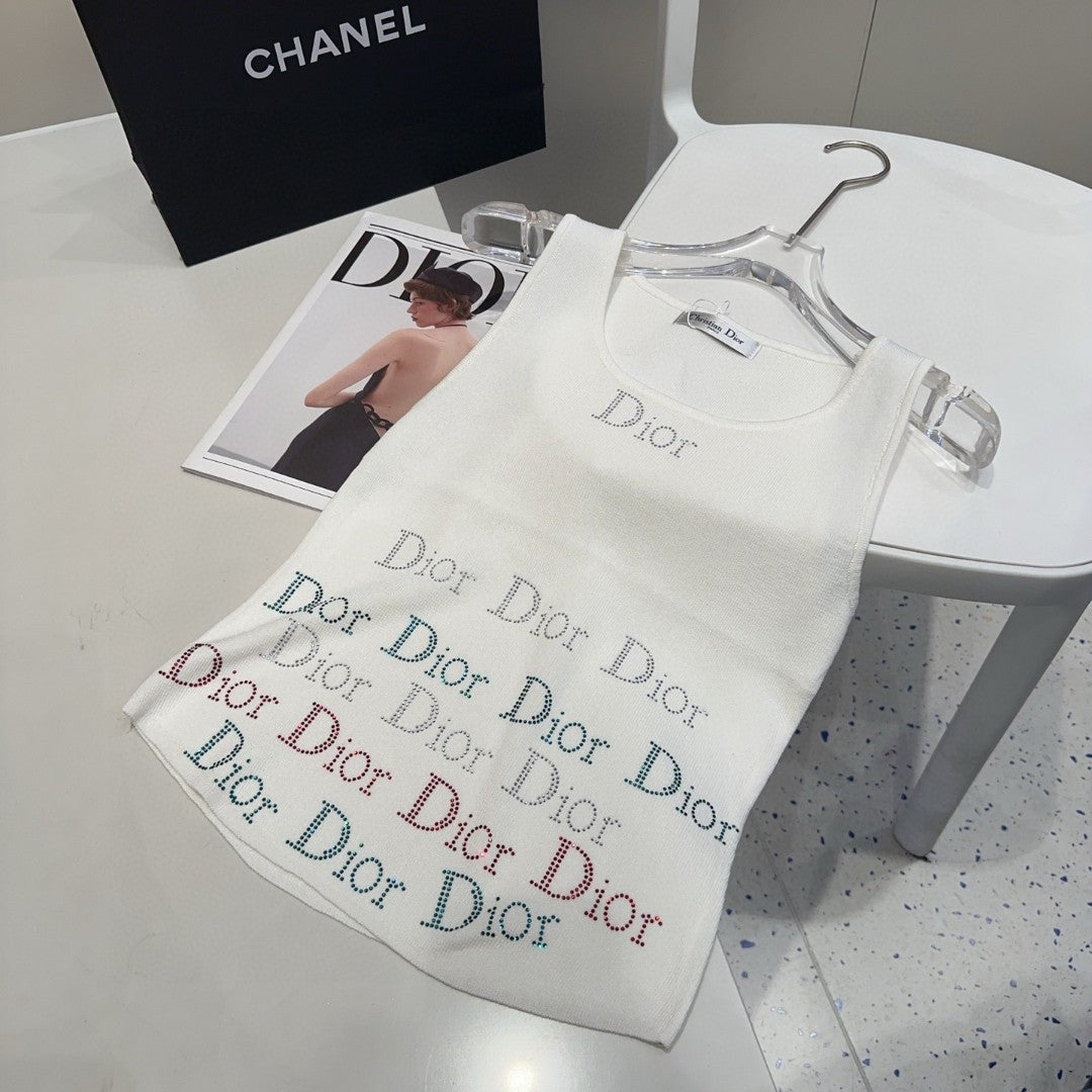 TANK TOP 624519 IN WHITE COTTON RIBBED CRYSTAL LOGO