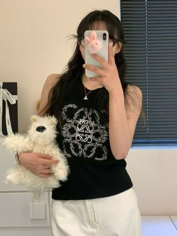 TANK TOP 633202 IN BLACK COTTON RIBBED KNIT
