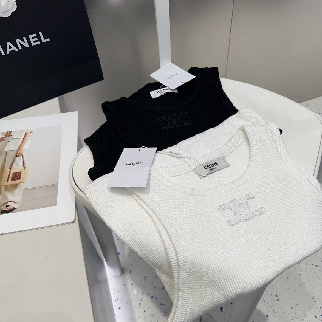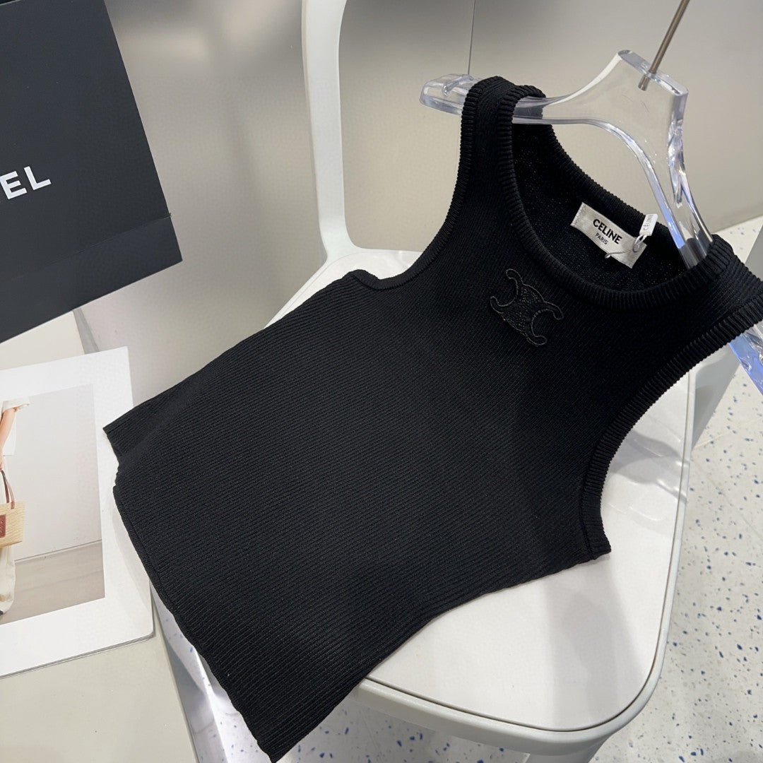 TANK TOP 633207 IN BLACK COTTON RIBBED KNIT EMBOSSED LOGO