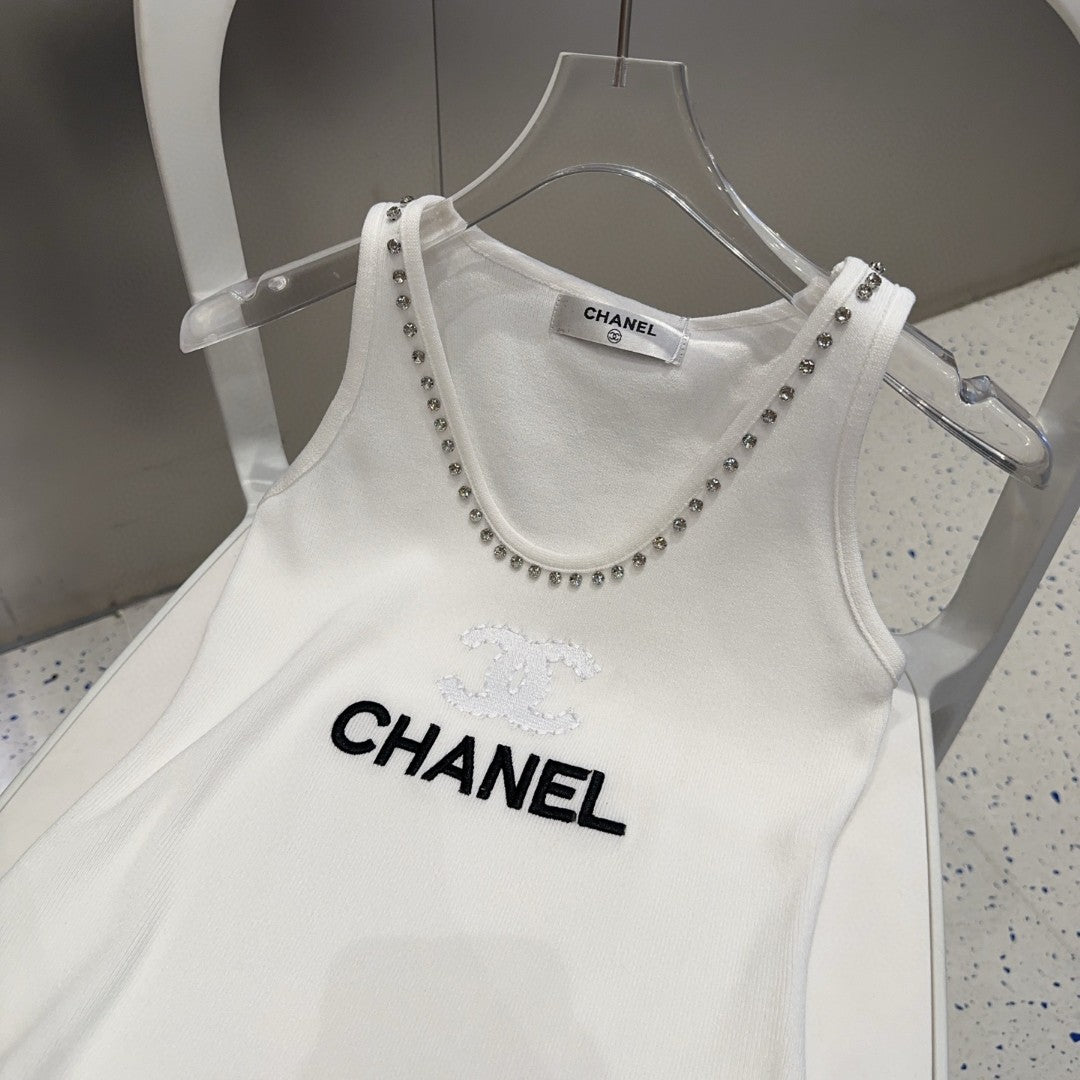 TANK TOP 640622 IN WHITE COTTON CRYSTAL ON TRIM