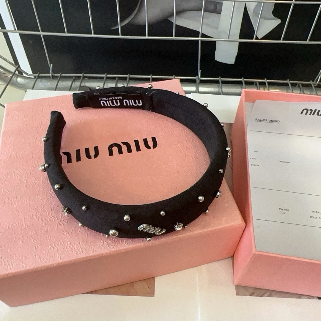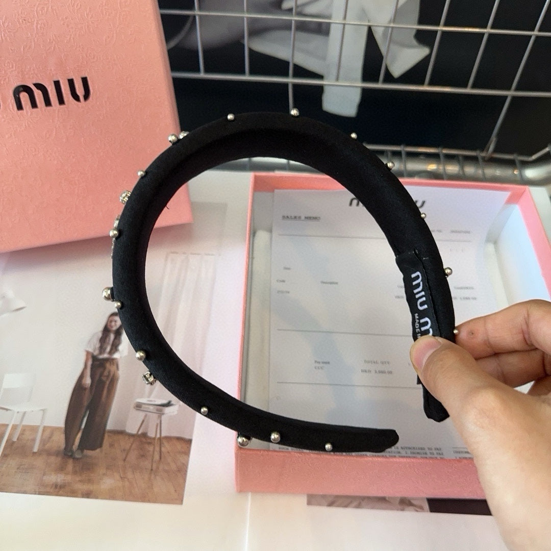 THICK HEADBAND ATTACHED BEADED IN BLACK FABRIC 429361