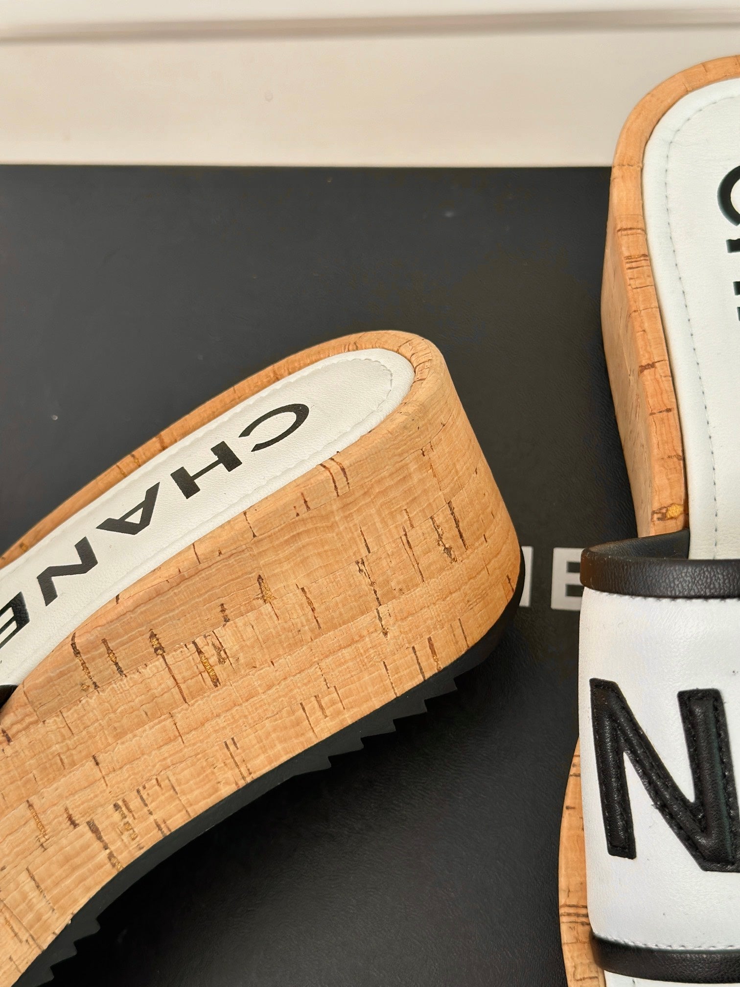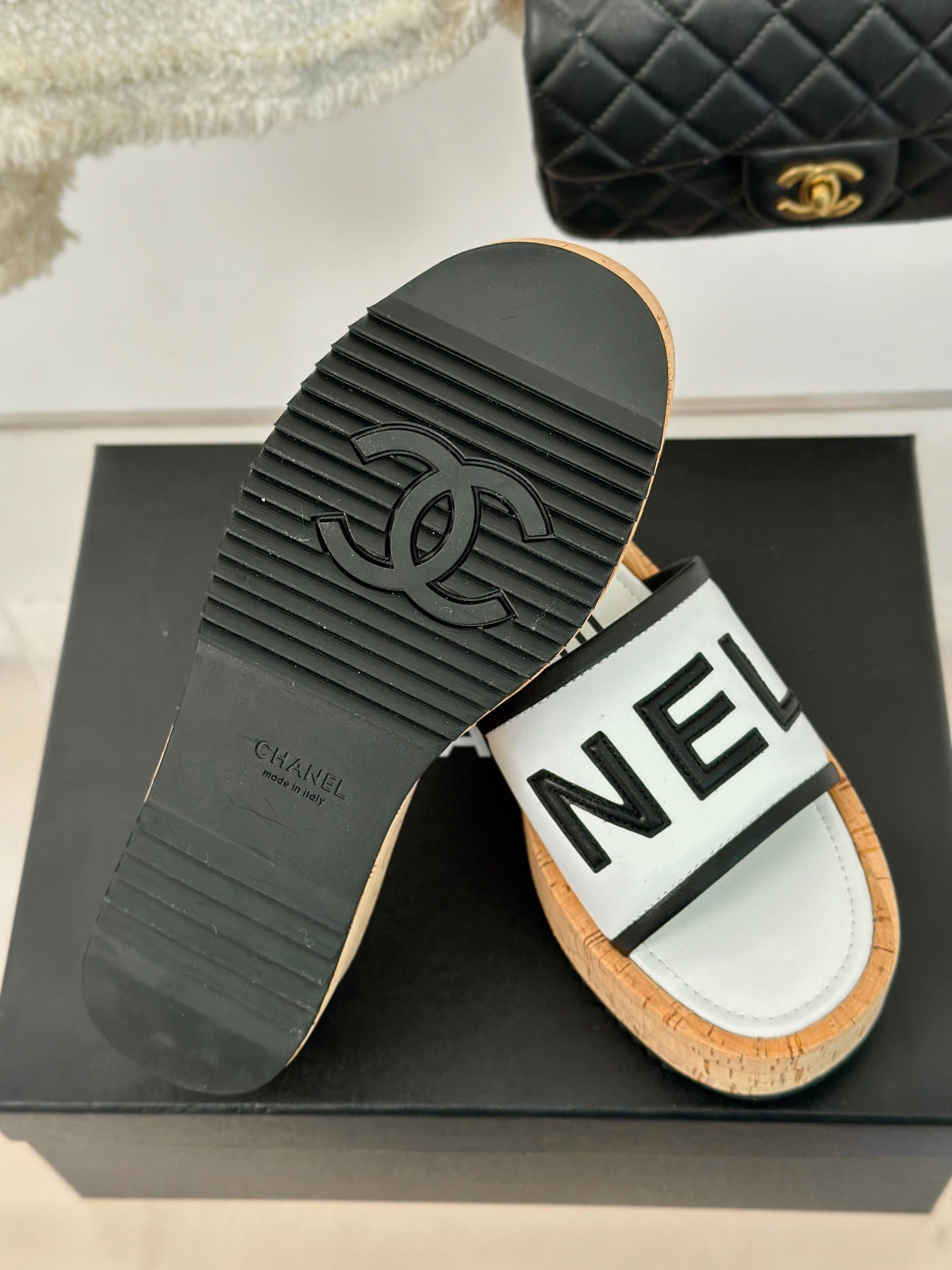 THICK SOLE LETTER SLIPPERS IN WHITE SHEEPSKIN