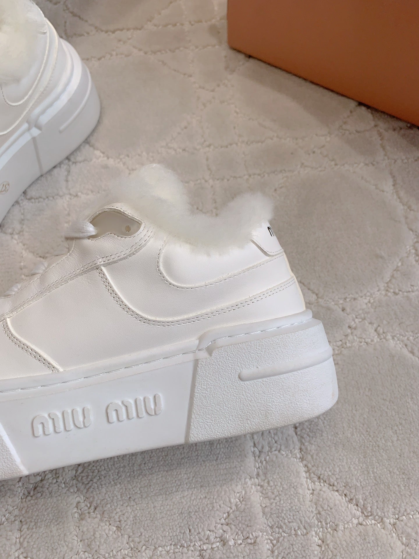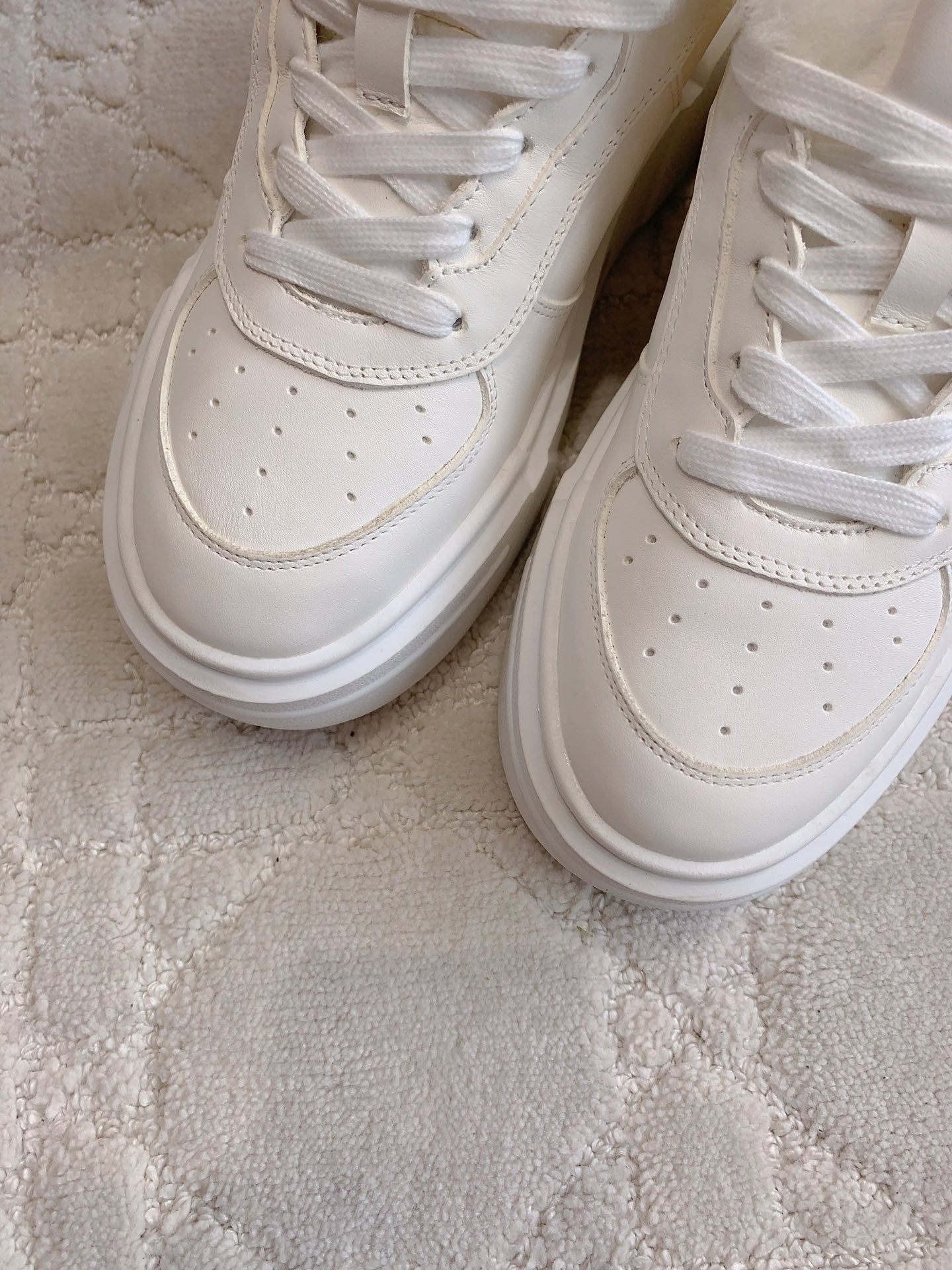 THICK SOLE SNEAKERS IN WHITE LAMBSKIN WITH RABBIT FUR LINING