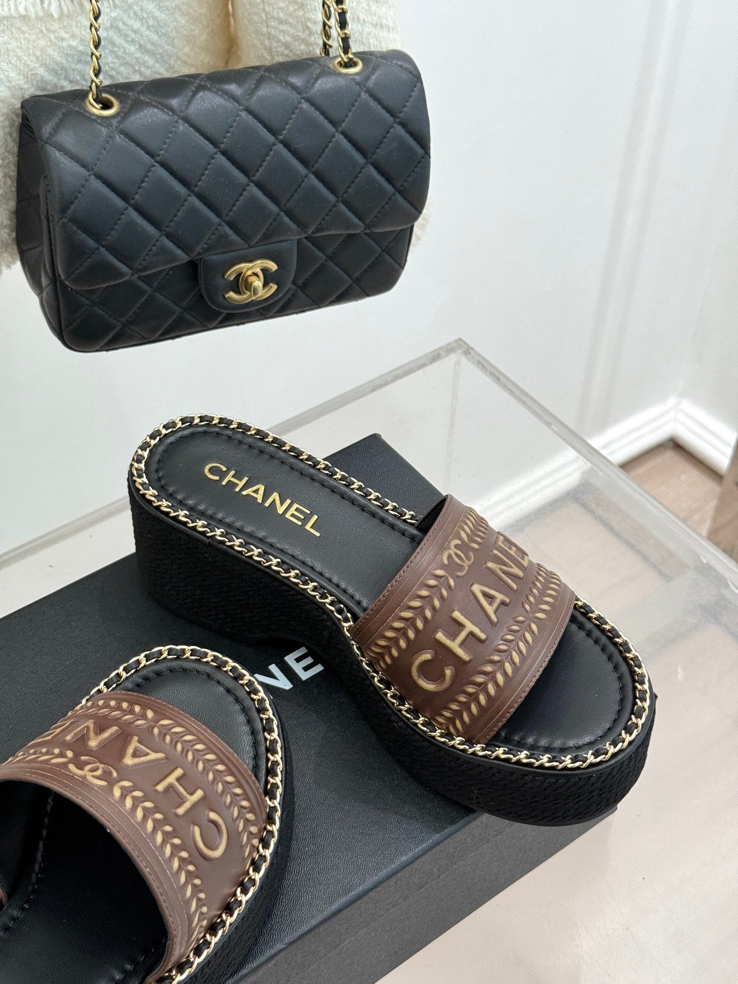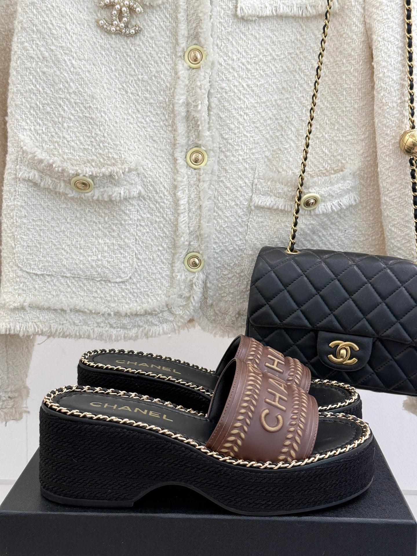 THICK SOLE WEDGE SLIPPERS IN CHOCOLATE BROWN CALFSKIN