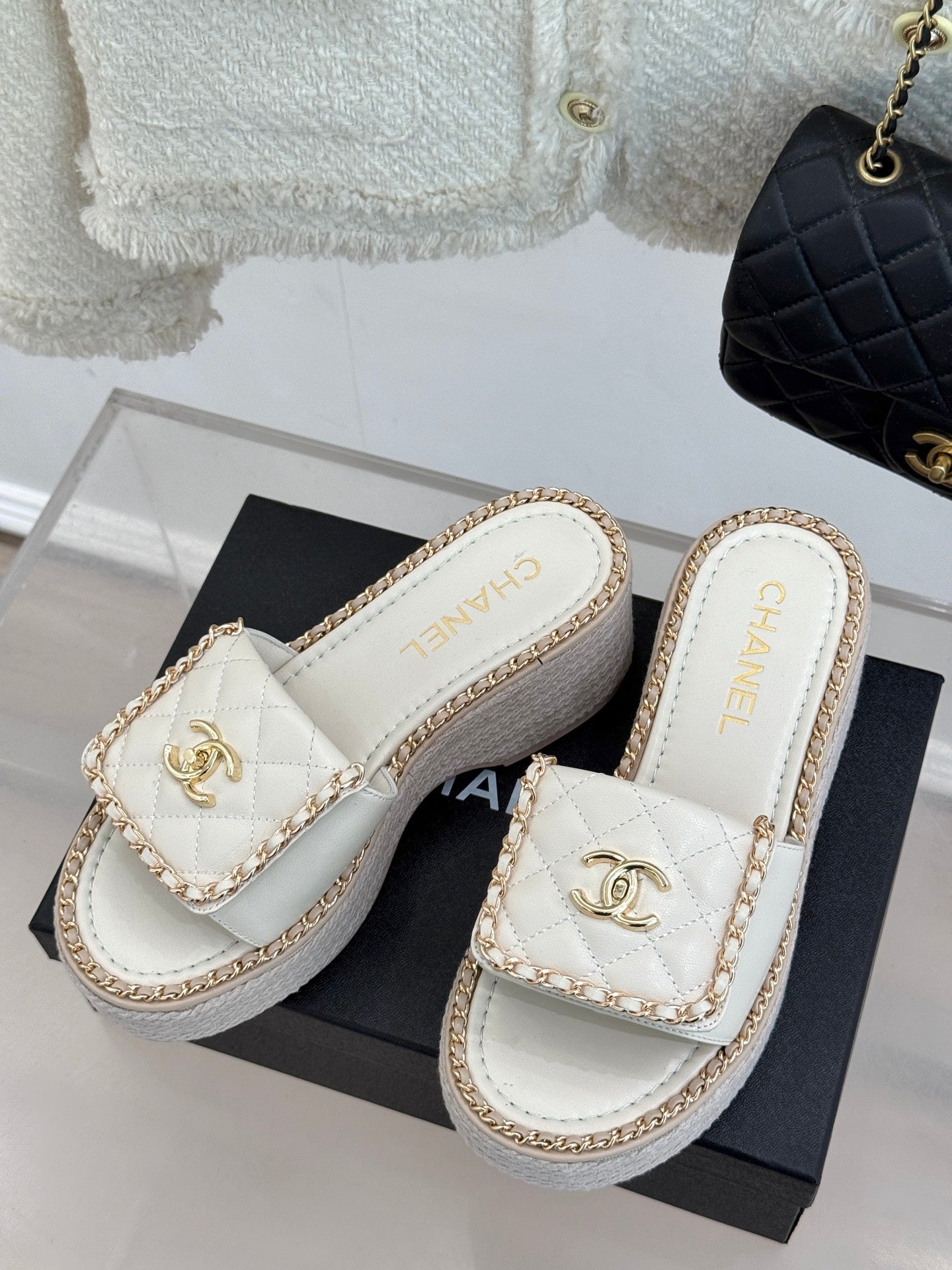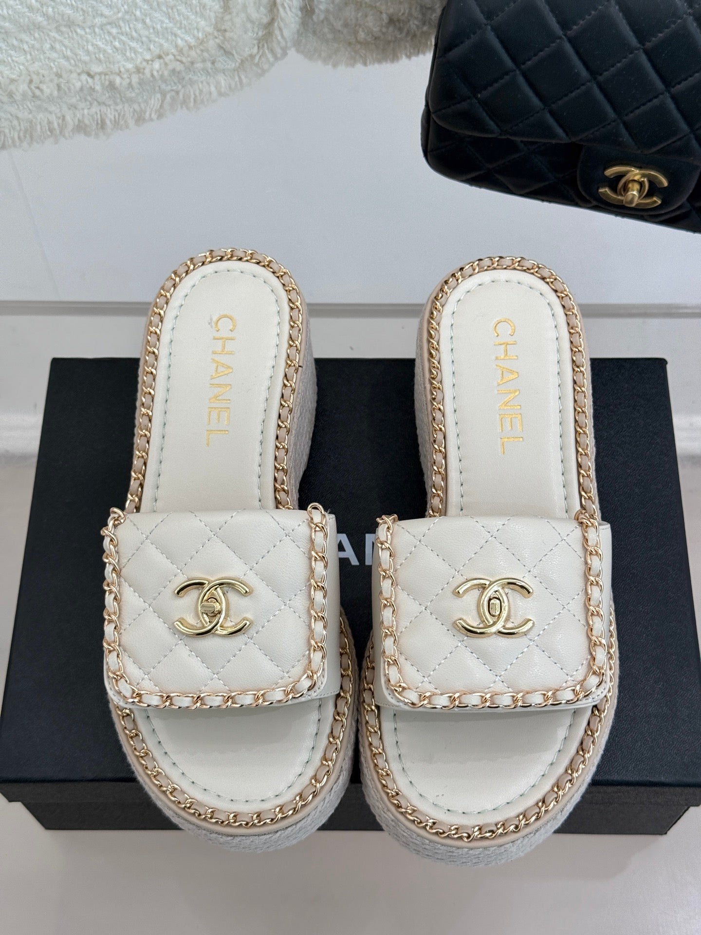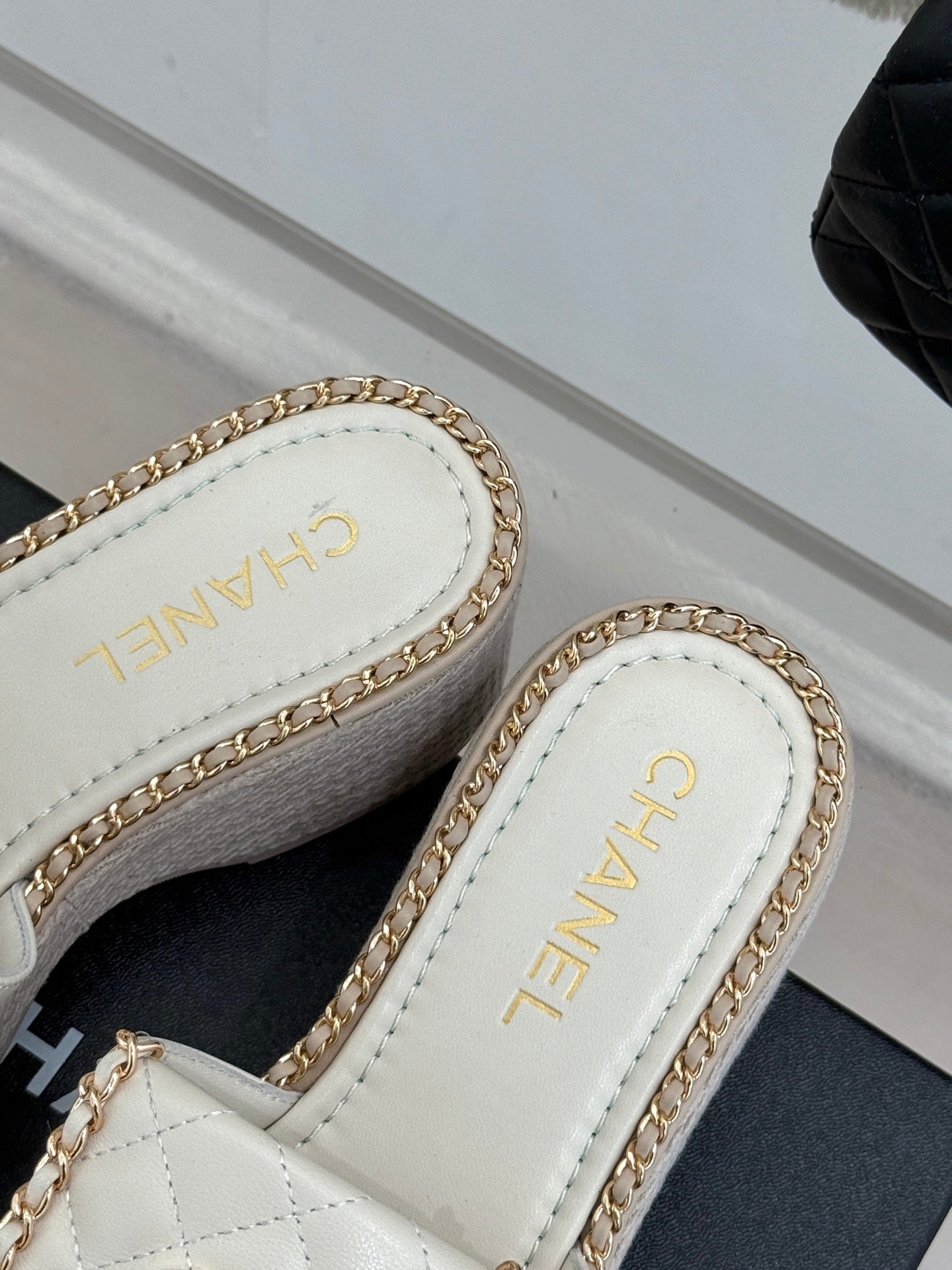 THICK-SOLED CHAIN HEART SLIPPER IN WHITE LAMBSKIN