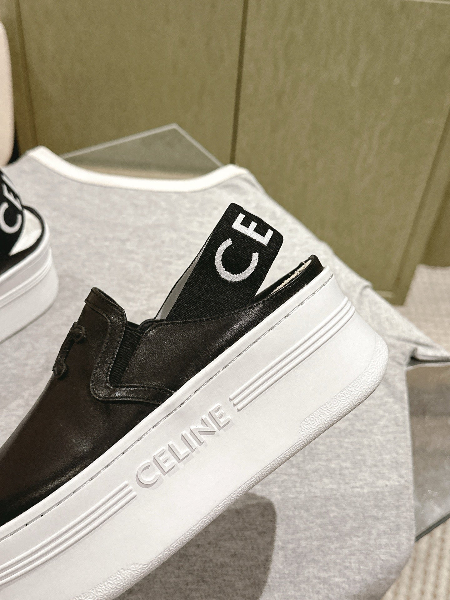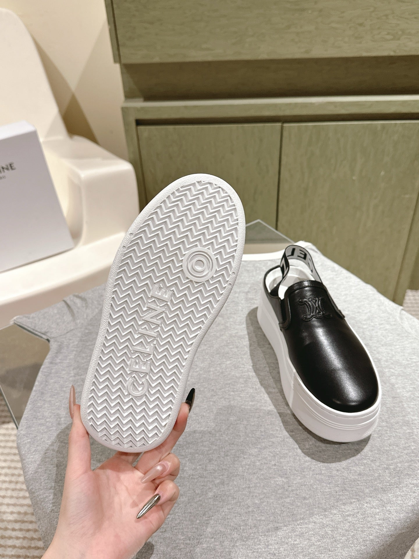 THICK-SOLED ELASTIC BACKLESS SHOES BLACK SHINY CALFSKIN
