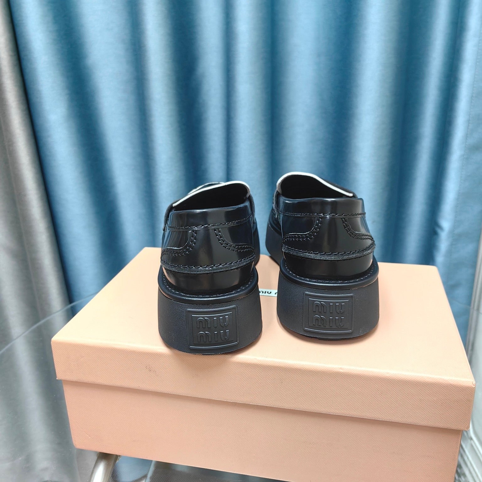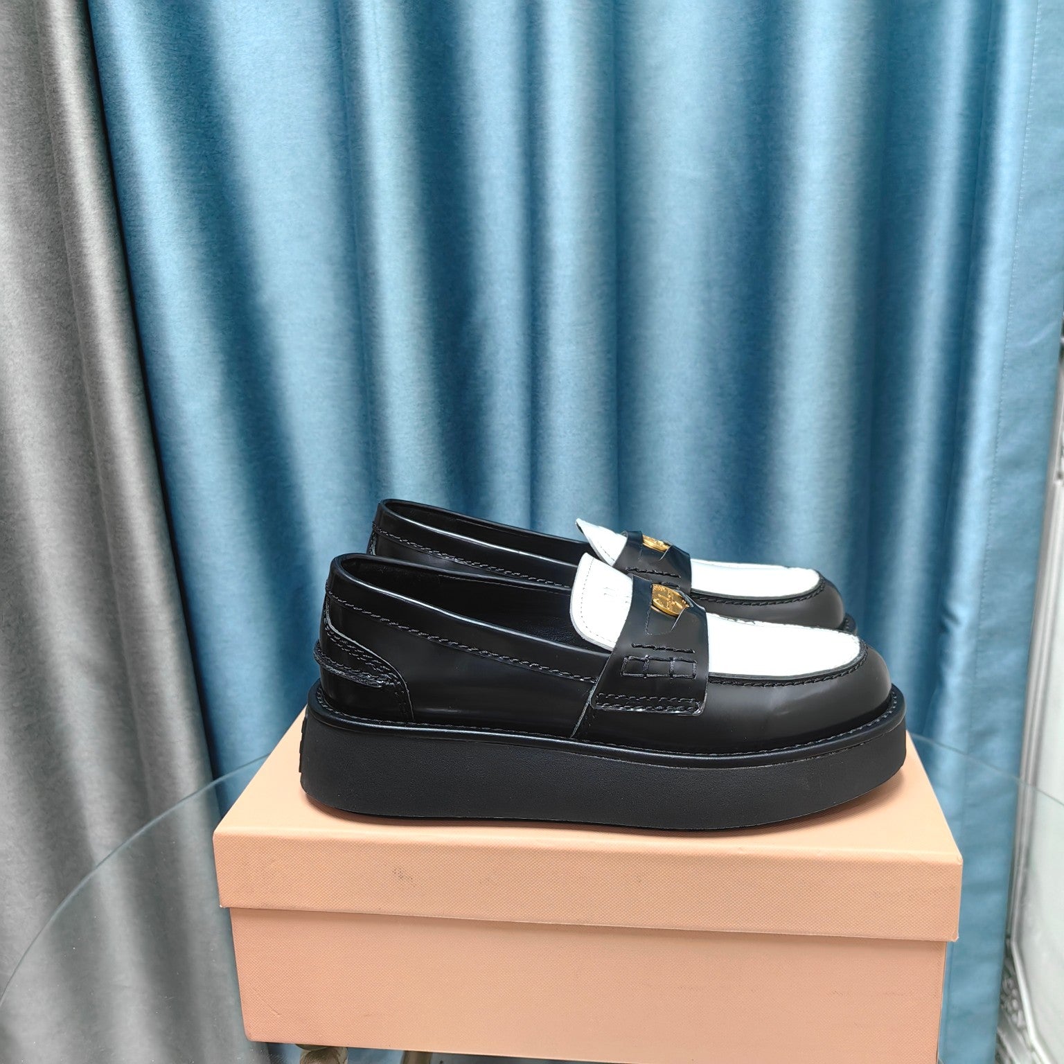 THICK-SOLED LOAFERS SHOES BLACK MIX WHITE COWHIDE