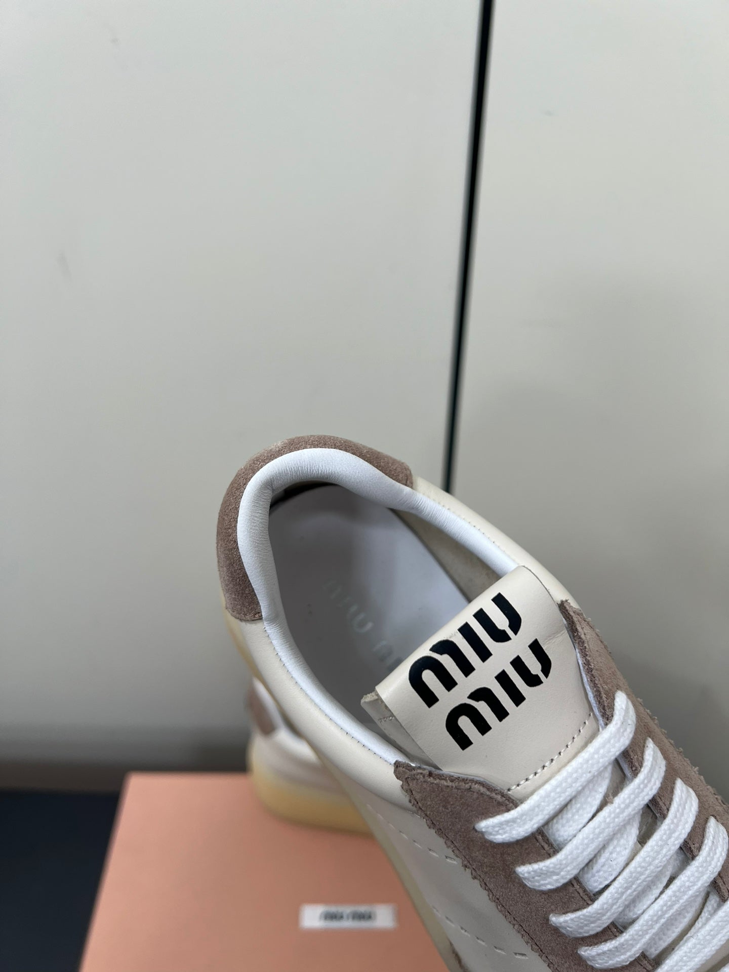 THICK-SOLED RETRO SNEAKERS IN CREAM LAMBSKIN AND PLASTER SUEDE