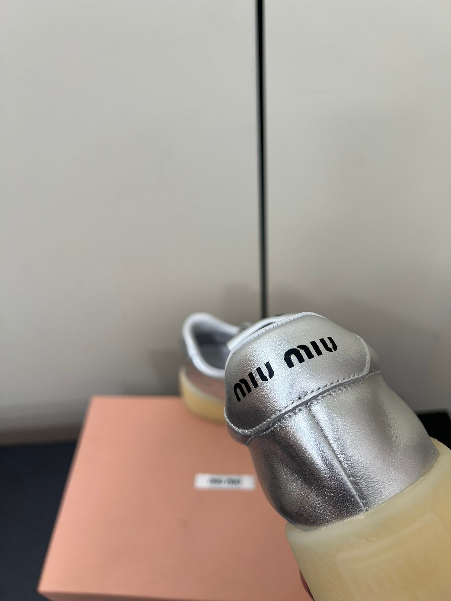 THICK-SOLED RETRO SNEAKERS IN SILVER METALLIC SMOOTH LAMBSKIN
