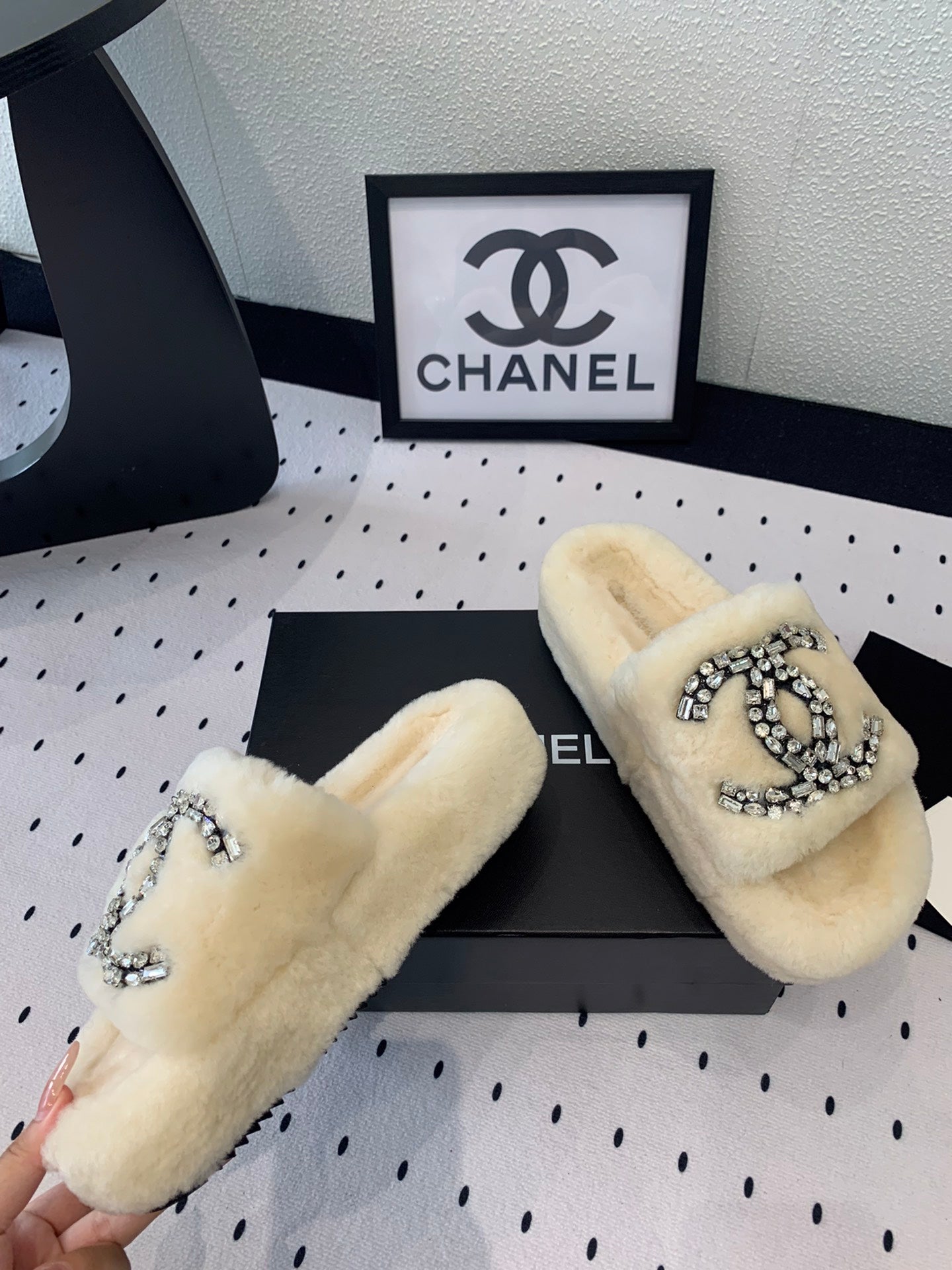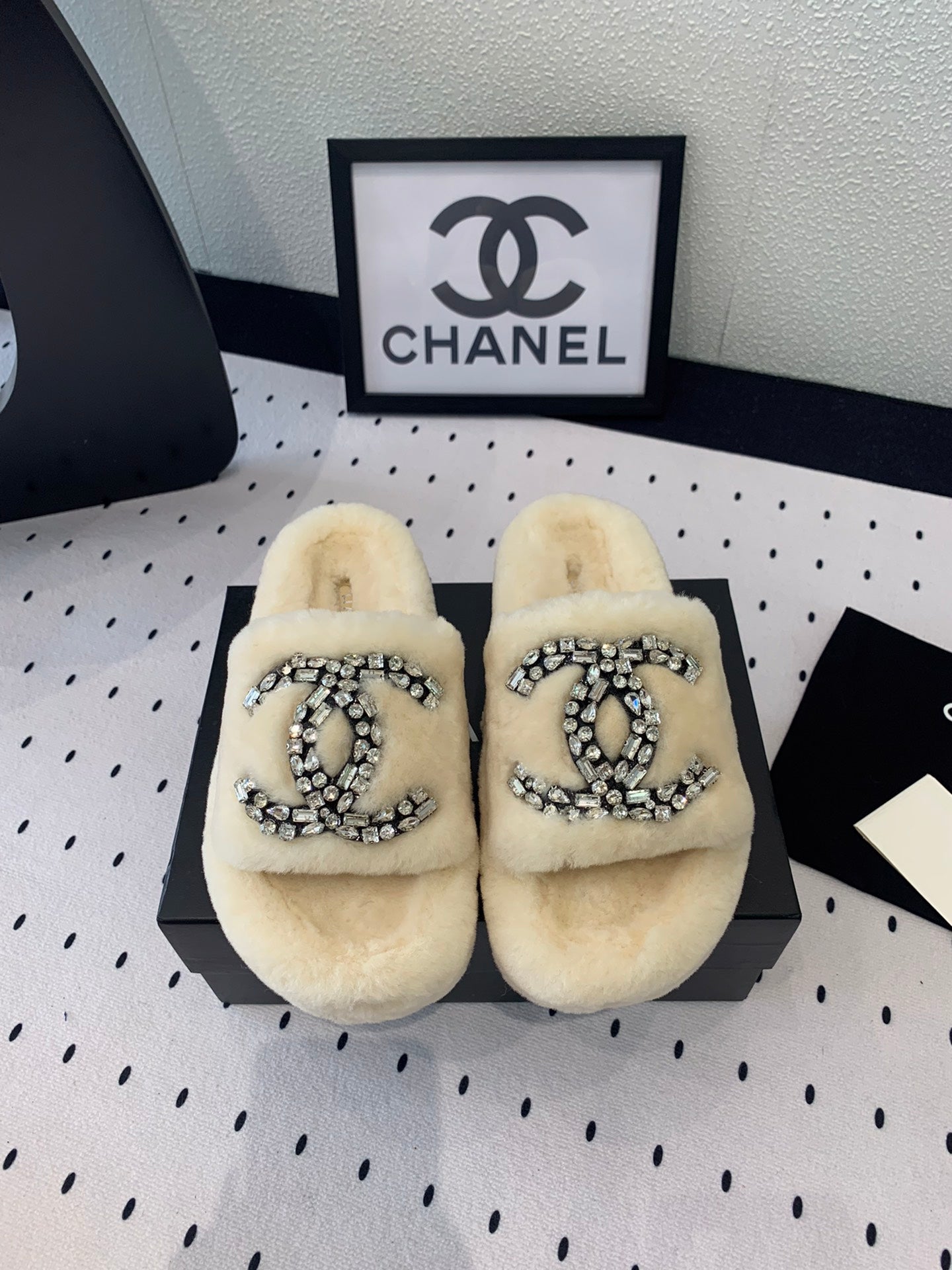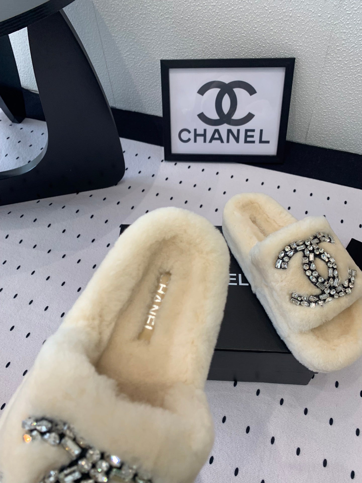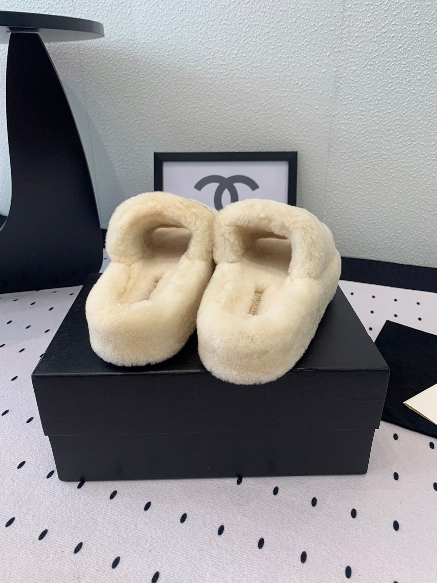 THICK-SOLED SLIPPERS IN WHITE SHEEP WOOL