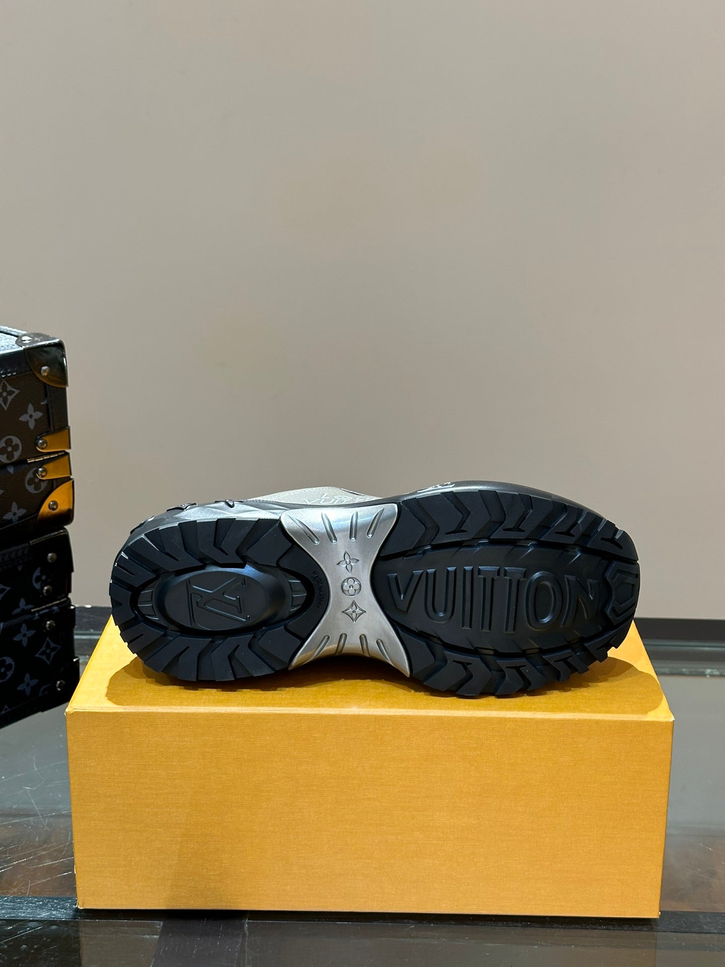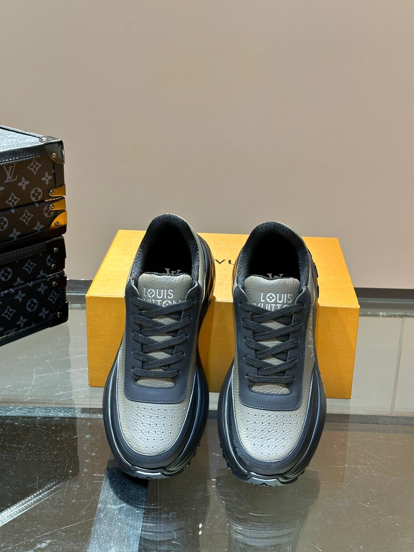THICK-SOLED SNEAKER GREY AND BLACK CALFSKIN