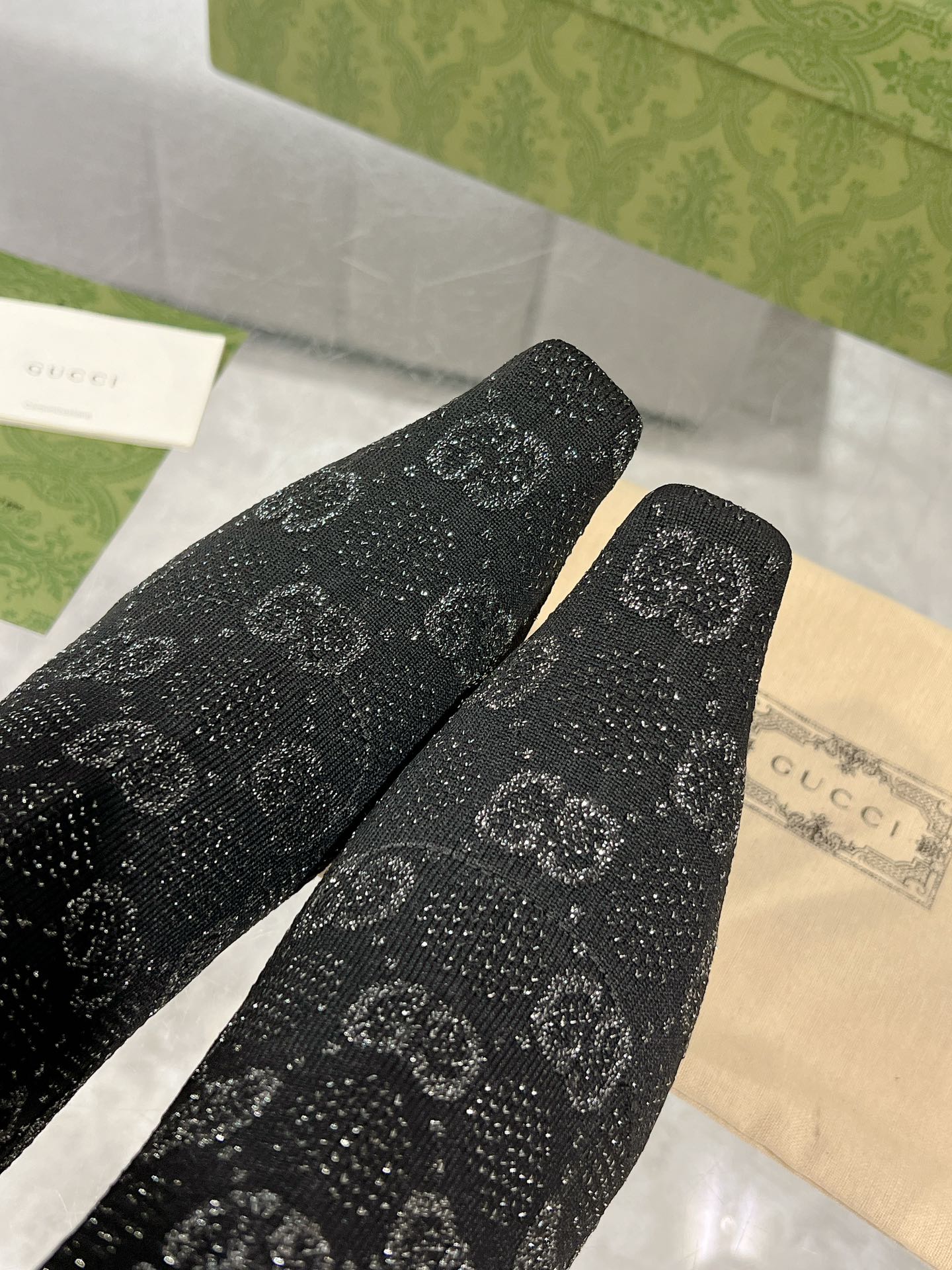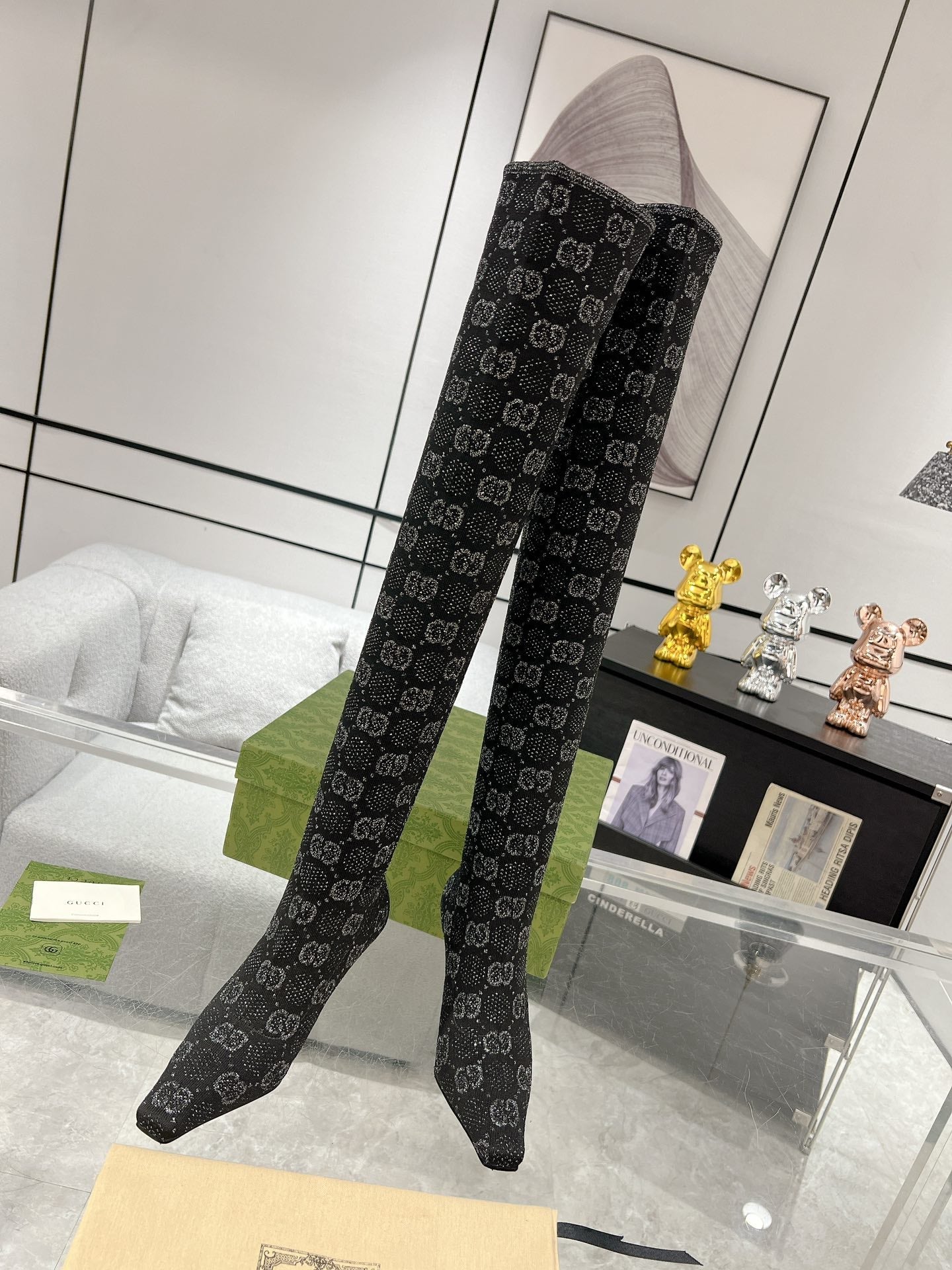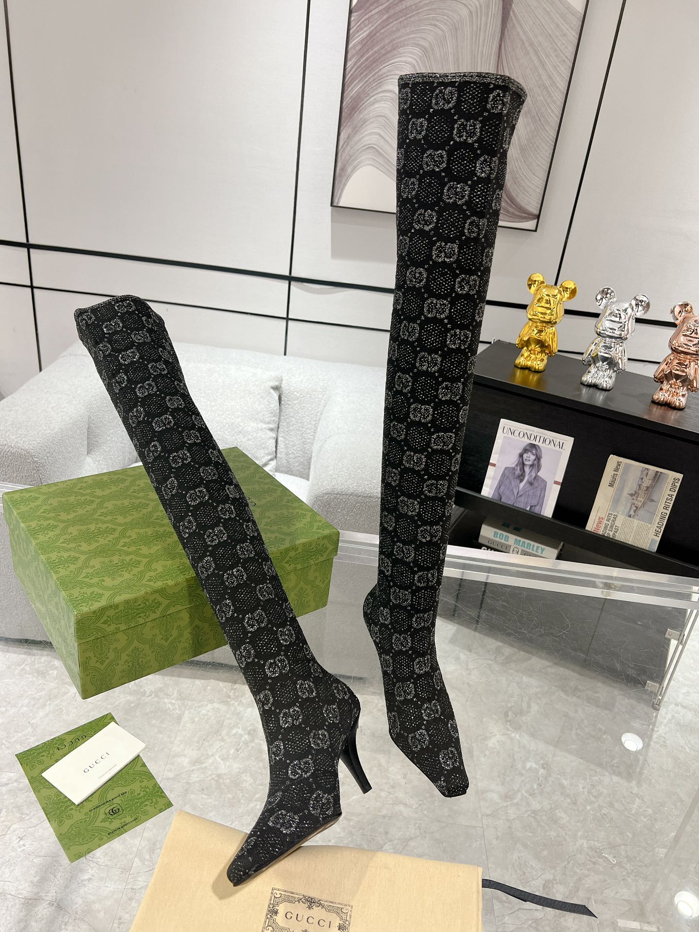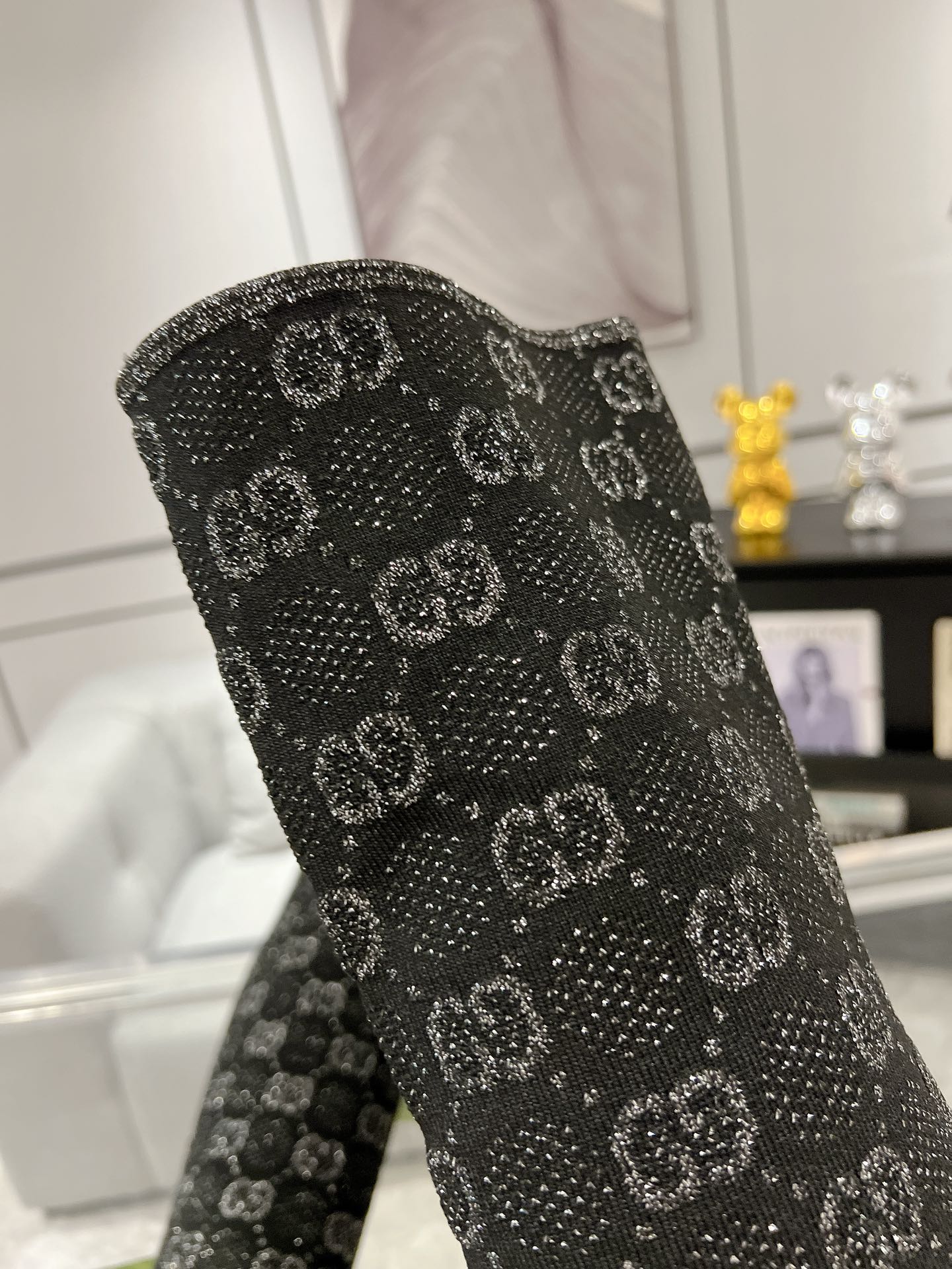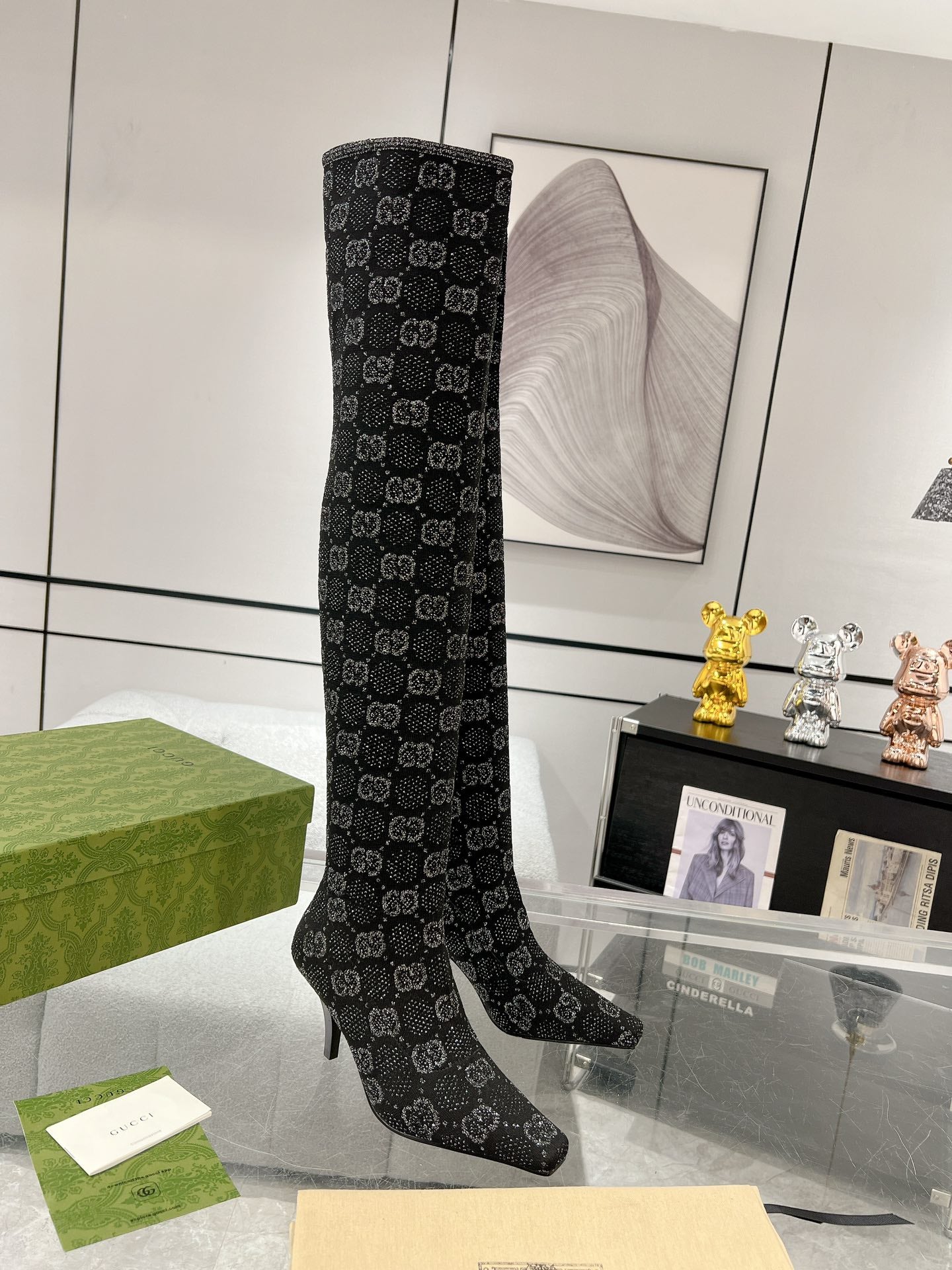 THIGH HIGH BOOTS IN BLACK KNITTED FABRIC