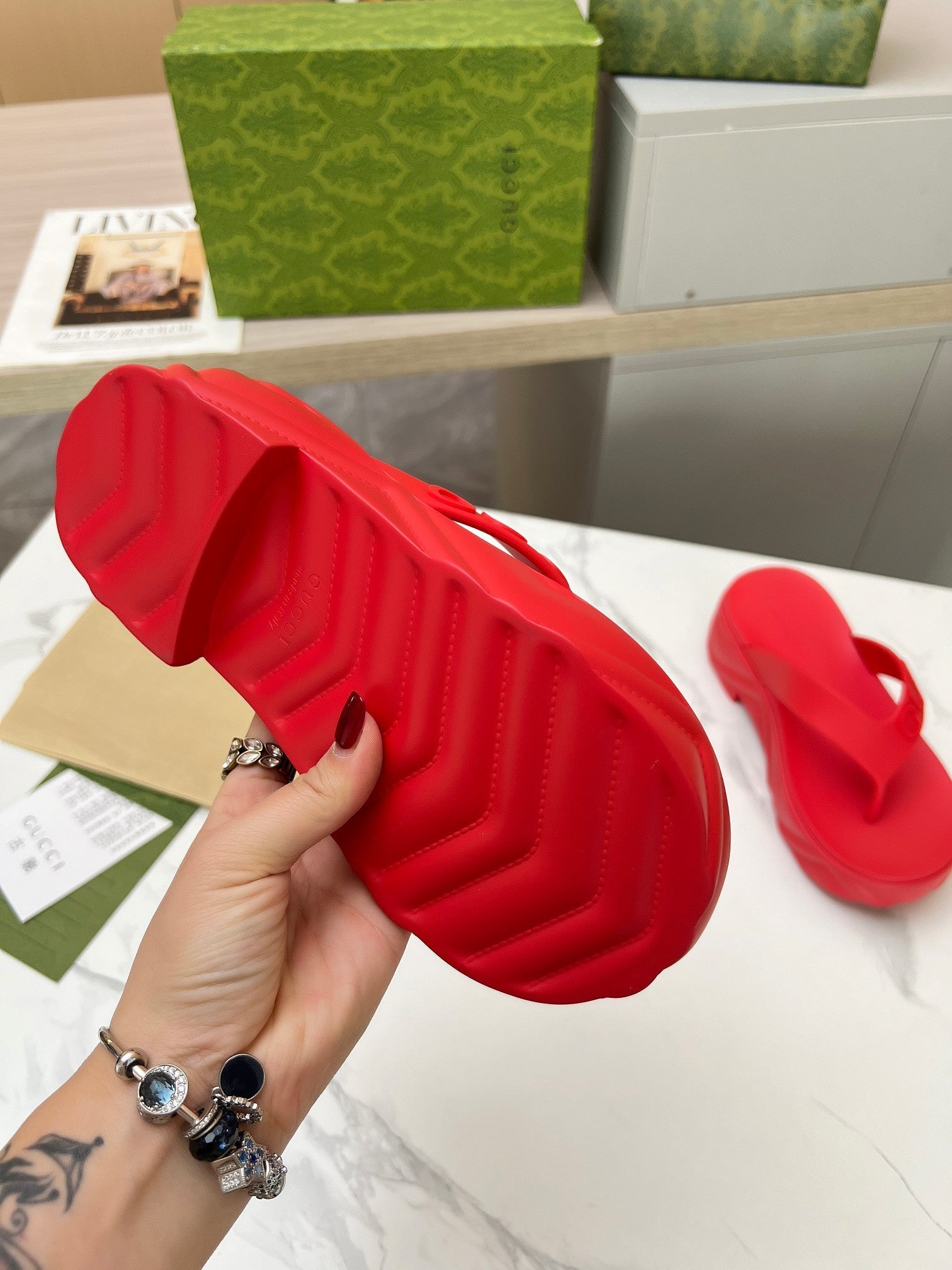 THONG PLATFORM IN RUBY RED IMPORTED TPU