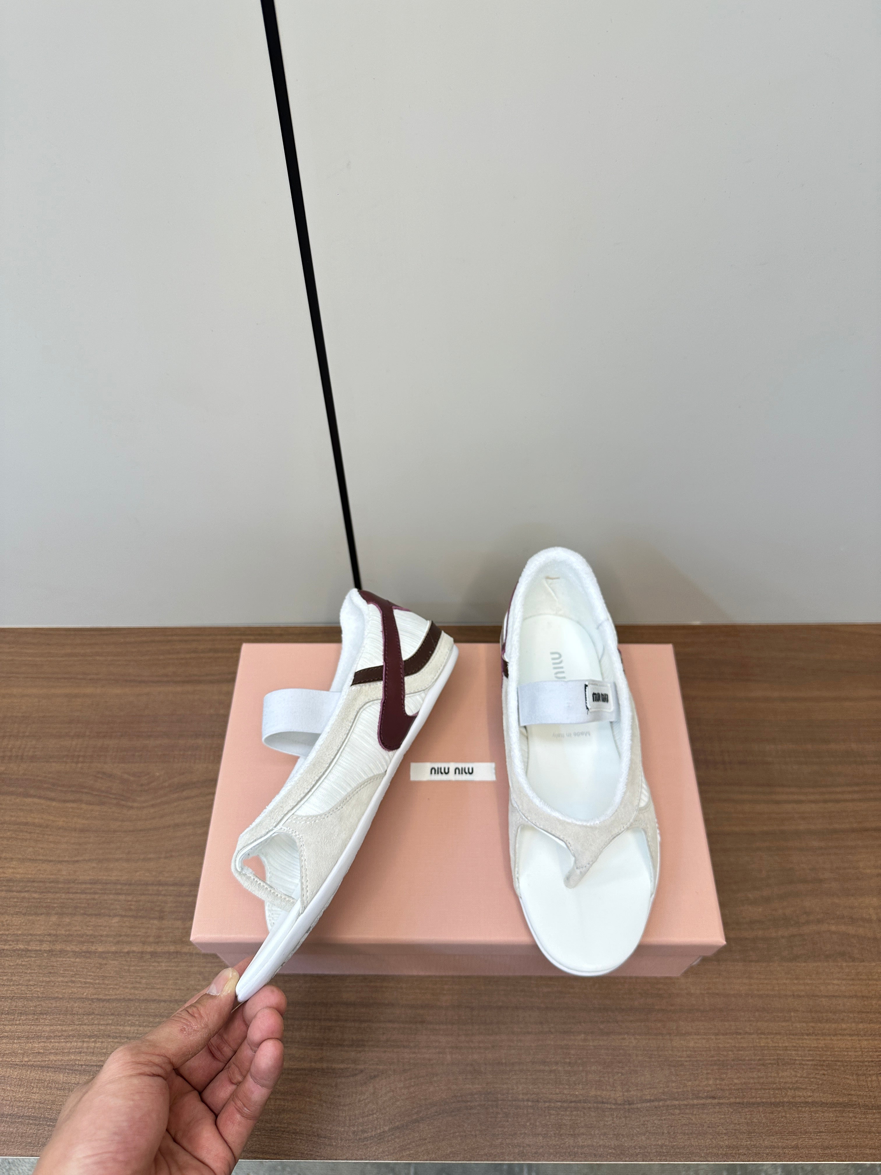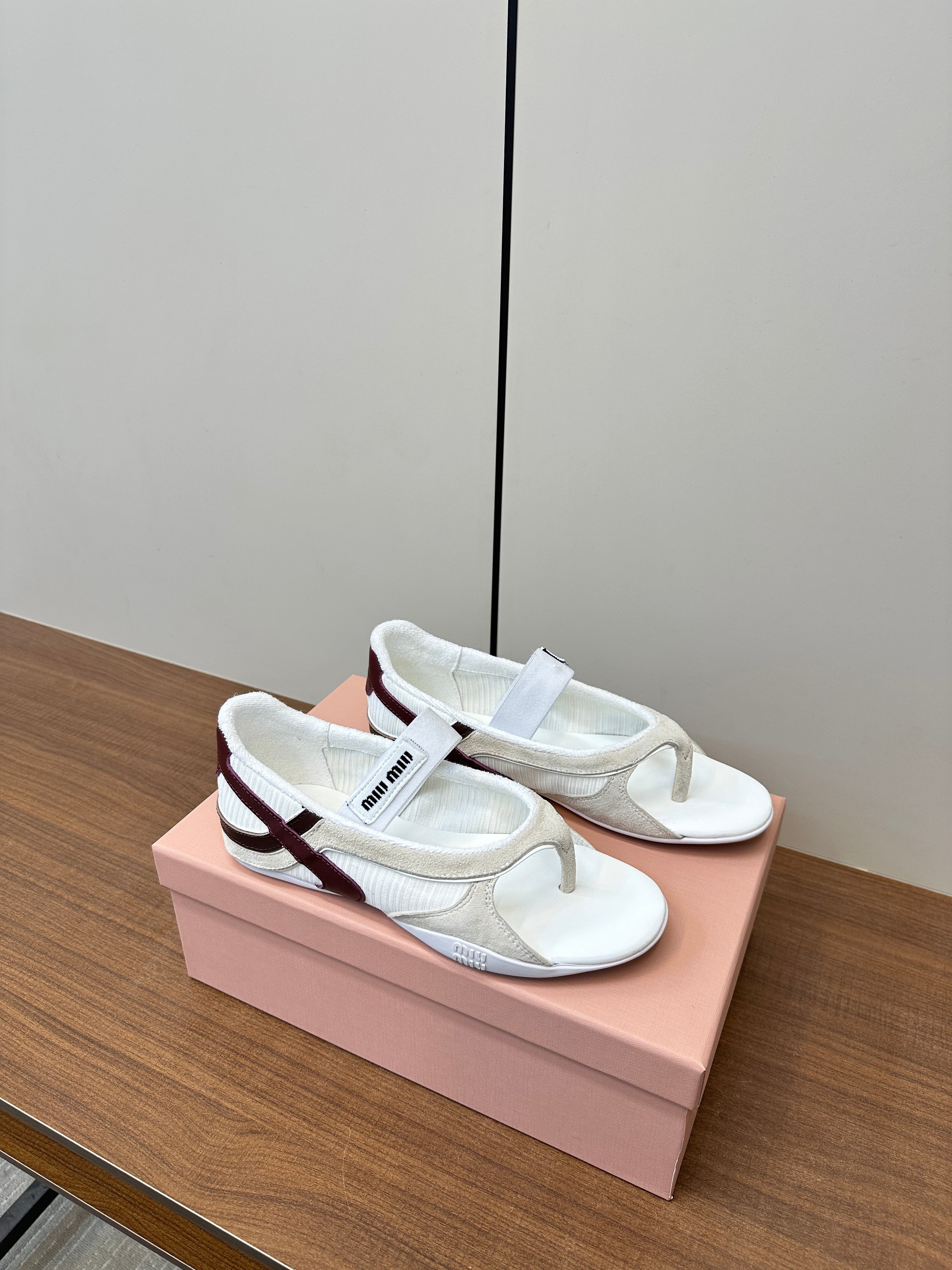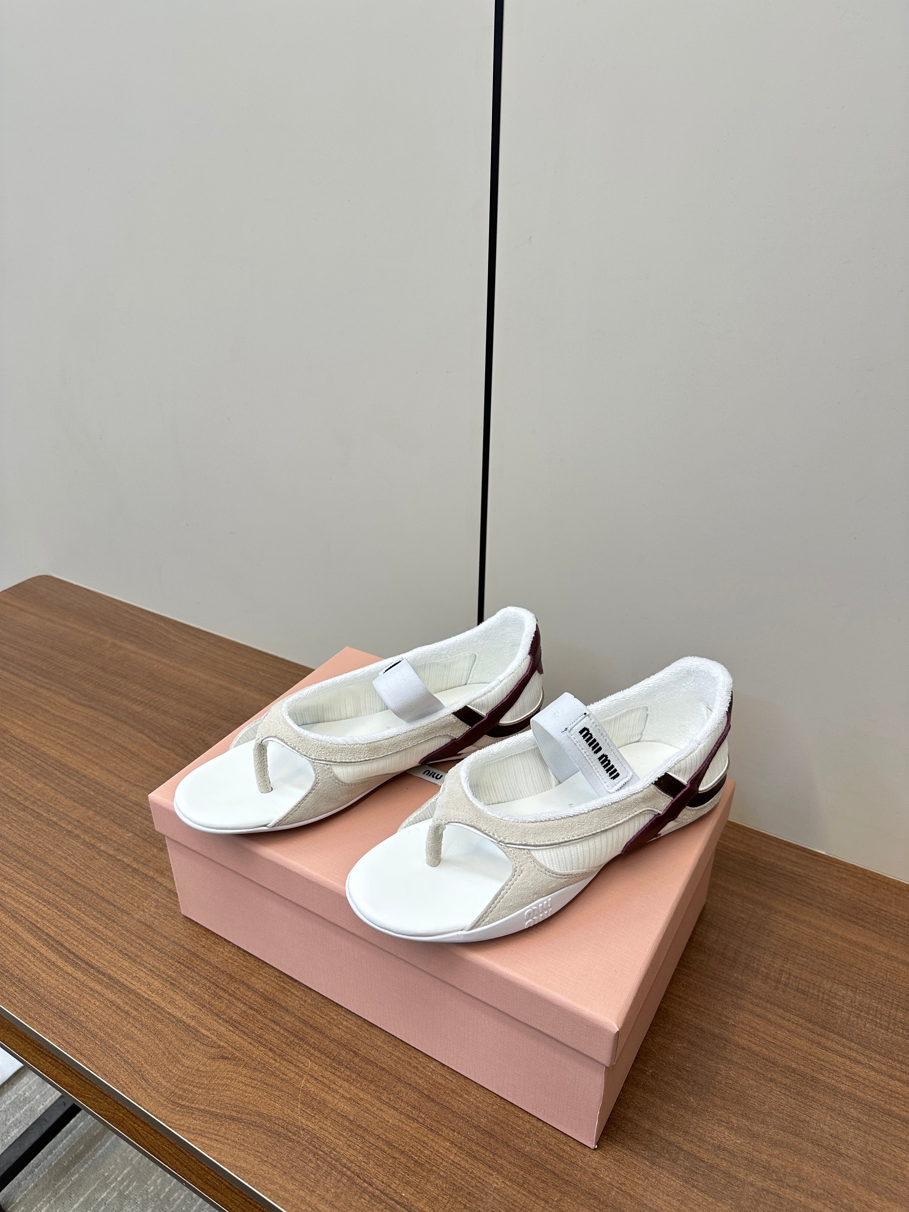 THONG SANDALS IN BEIGE SUEDE MIX WHITE TECH FABRIC