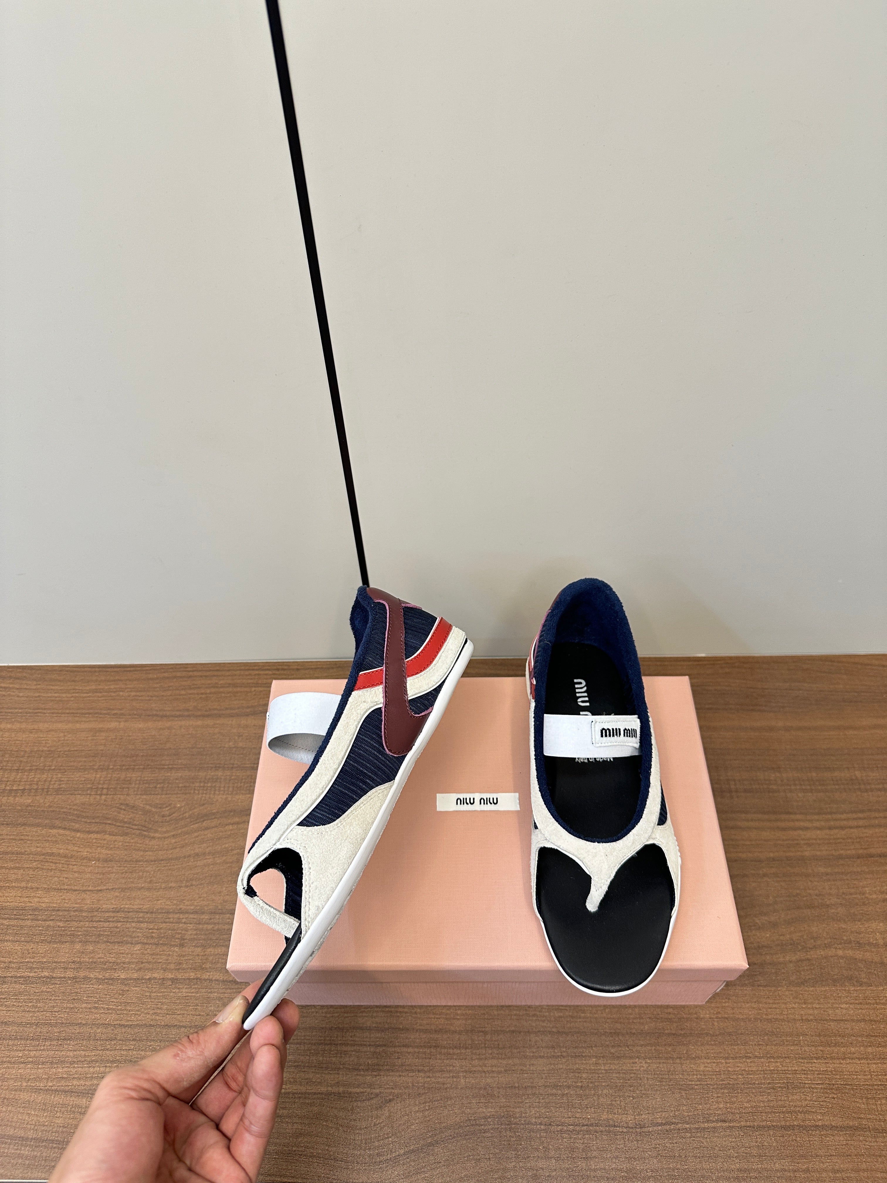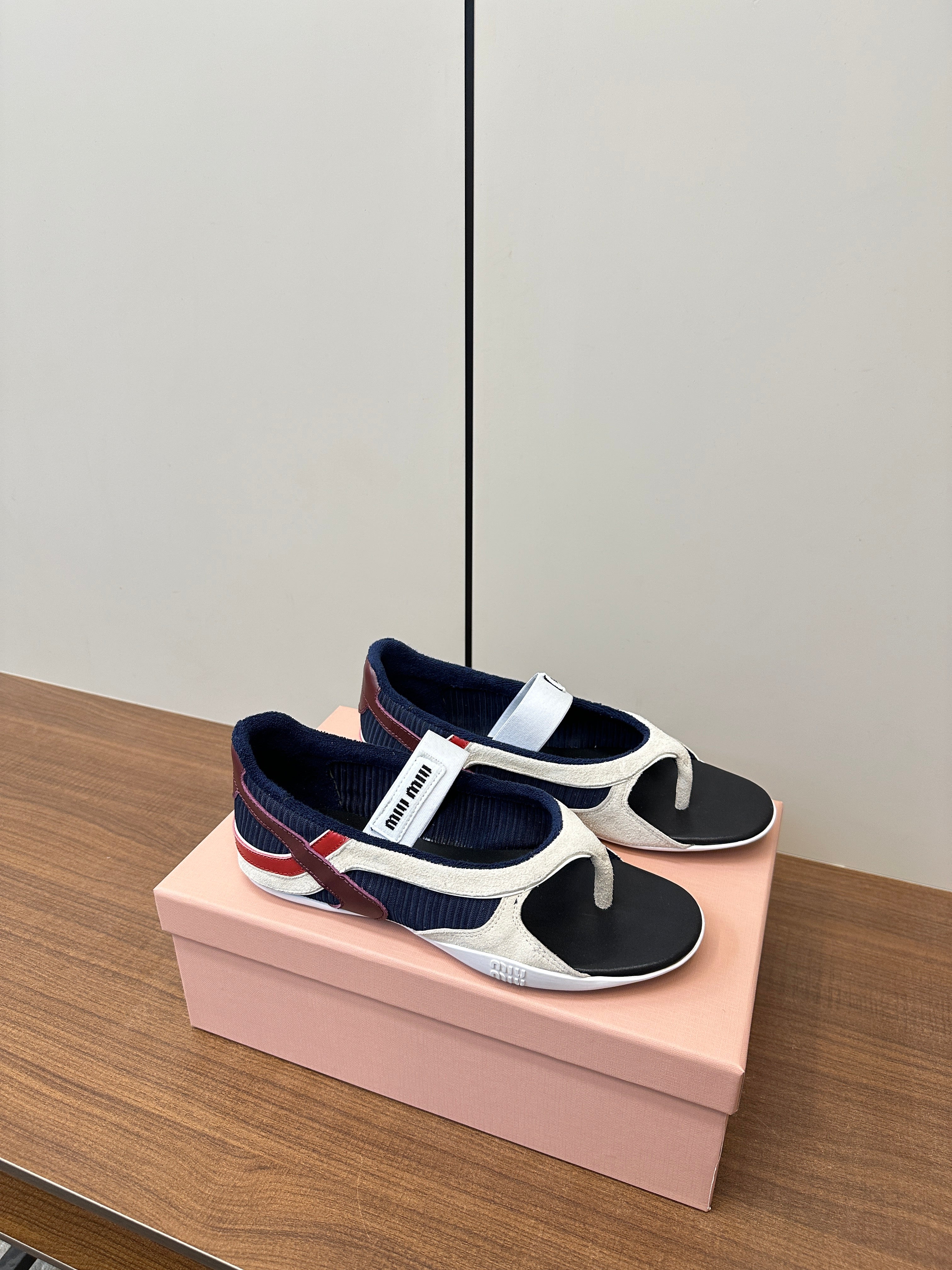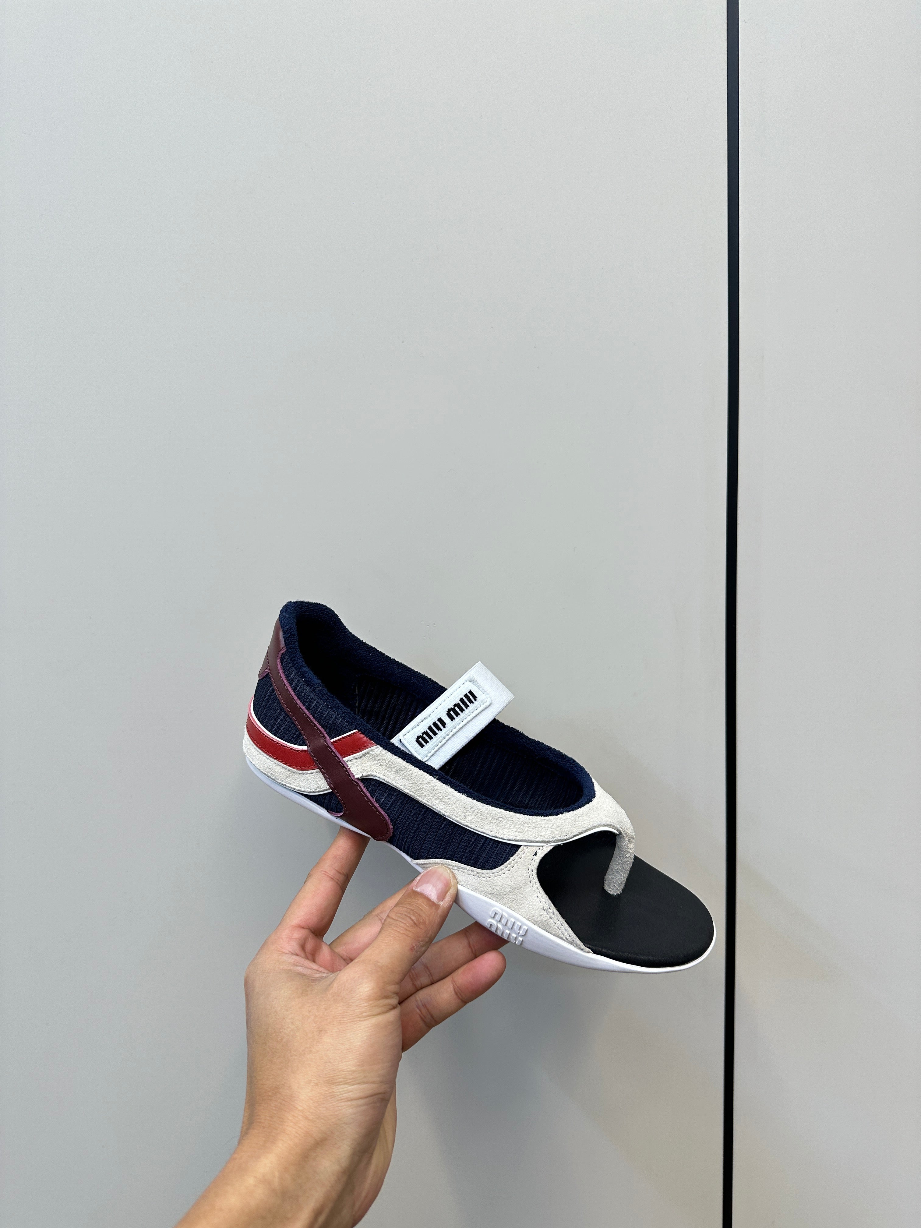 THONG SANDALS IN WHITE SUEDE MIX NAVY TECH FABRIC