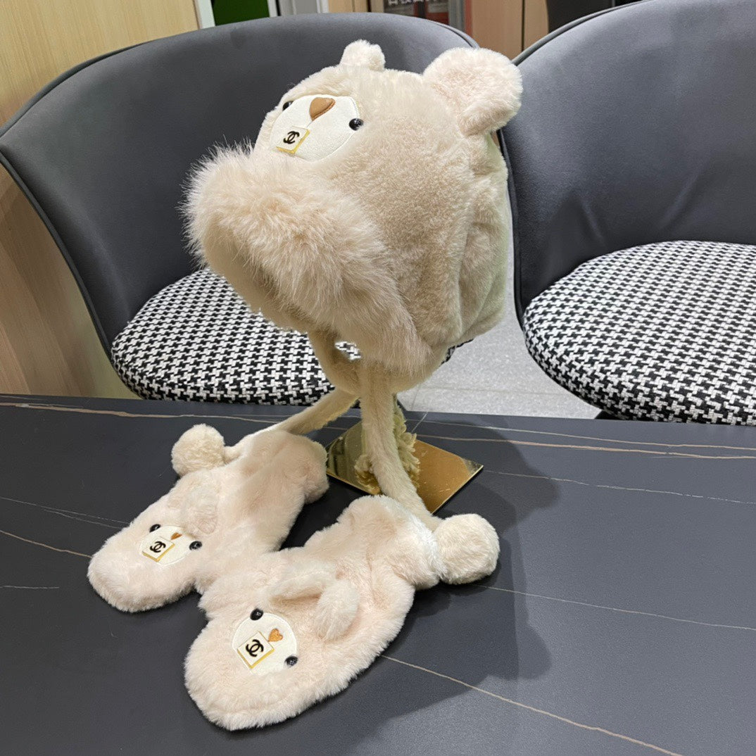 THREE-PIECE SET IN BEIGE FLEECE AND WOOL 433196