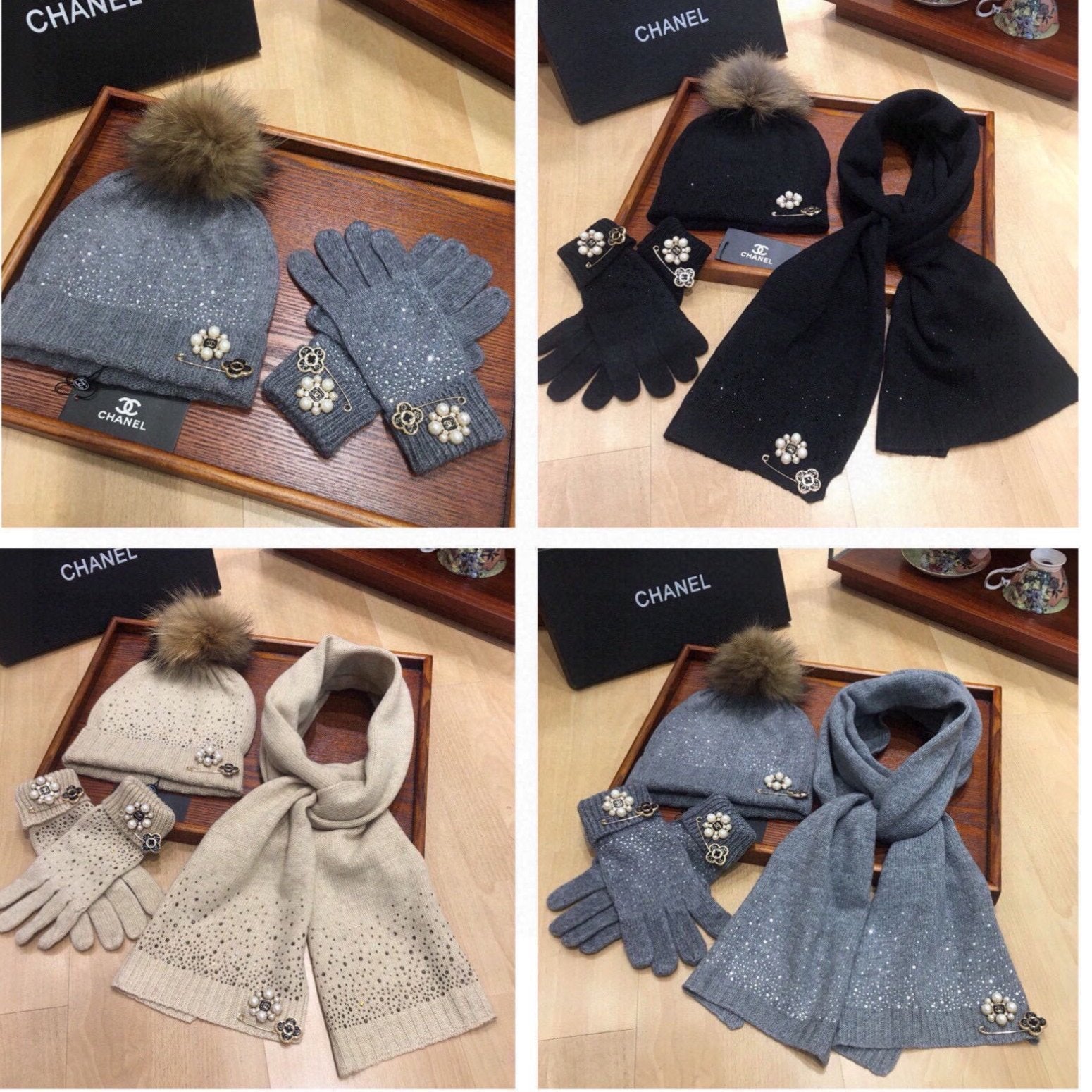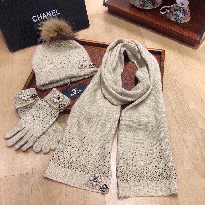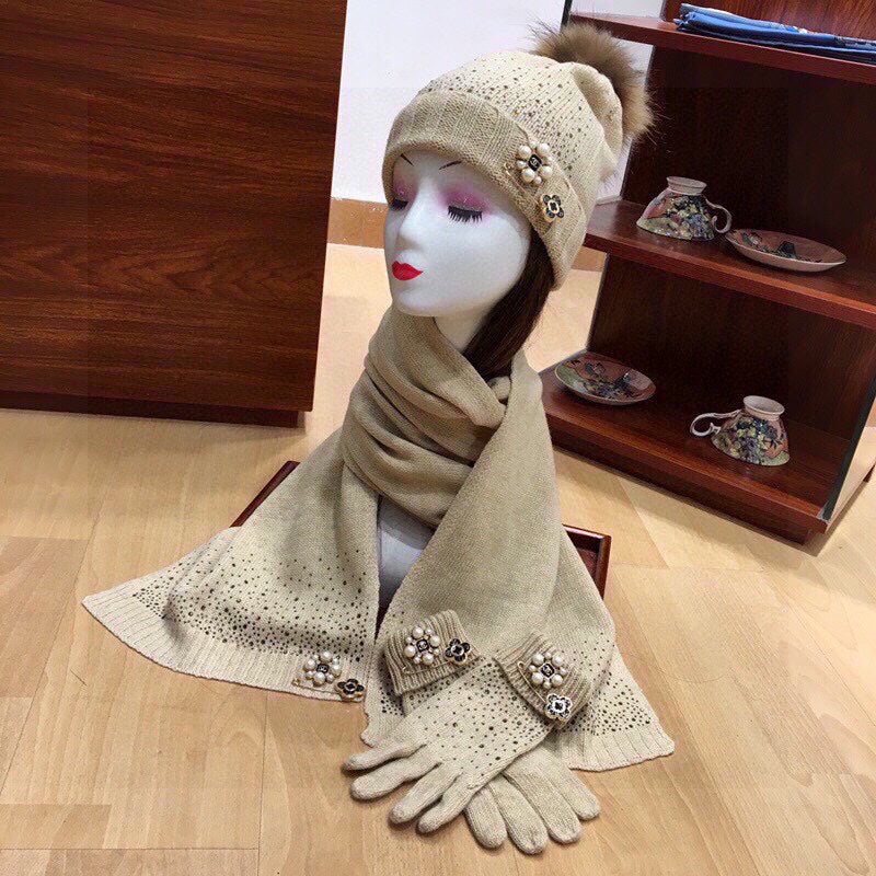 THREE-PIECE SET IN KHAKI BROWN CASHMERE 424003