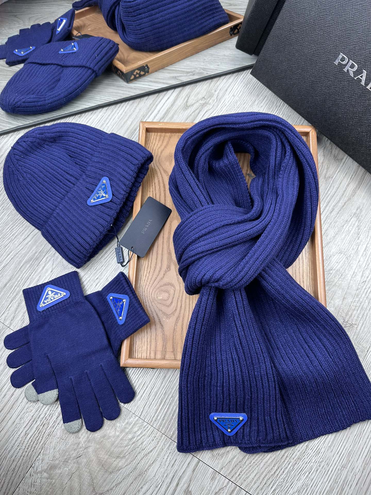 THREE-PIECES SET IN NAVY BLUE WOOL AND ACRYLIC 406557