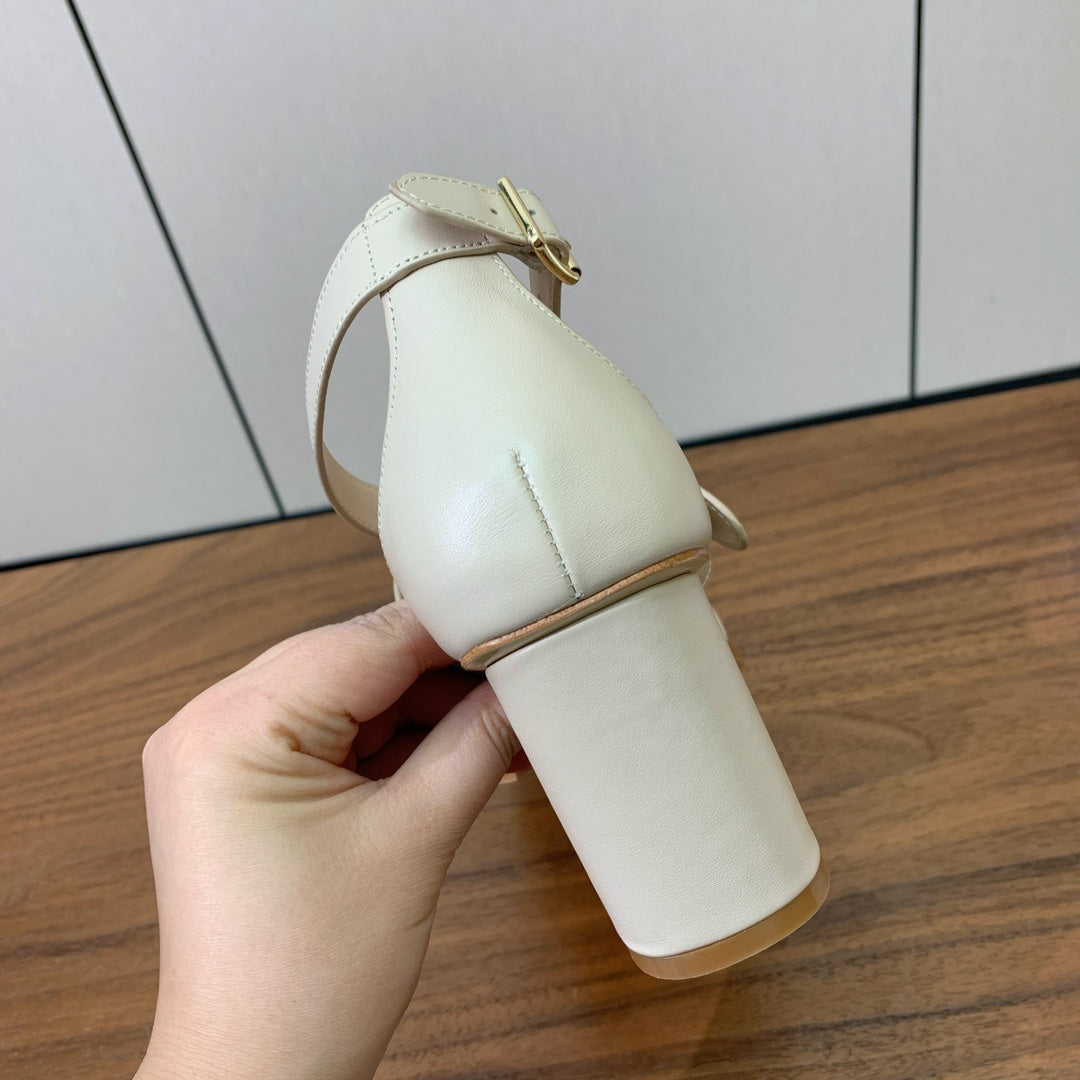 THREE-STRAP HIGH-HEELED EMBROIDERED SANDALS NUDE BEIGE