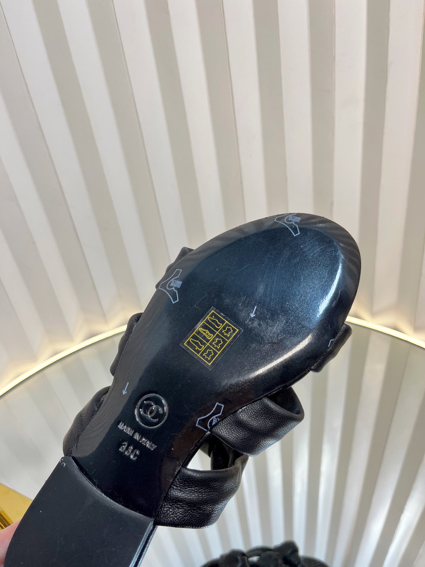 THREE STRAPS MULE IN BLACK CALFSKIN