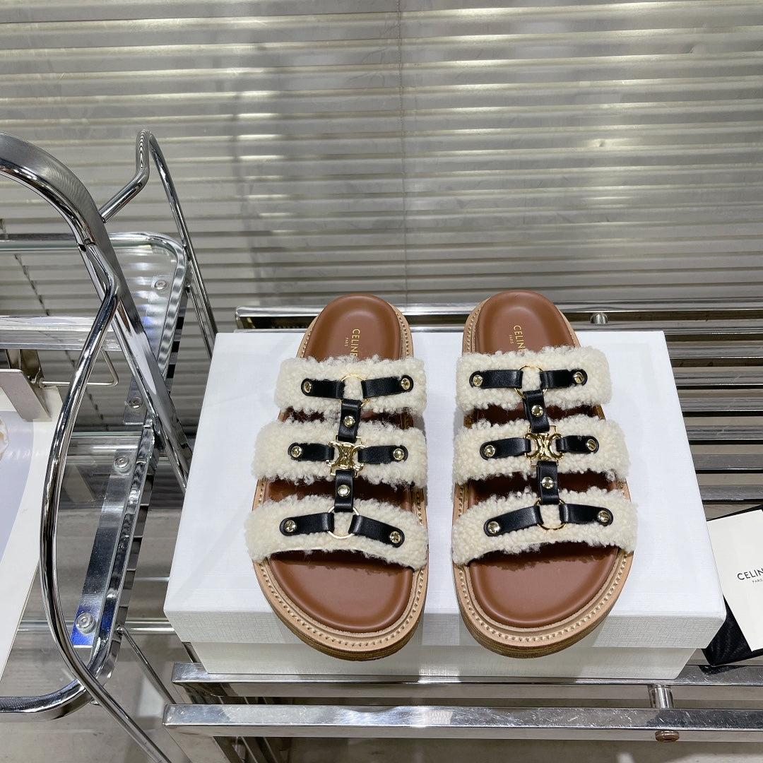 TIPPI SLIDE IN SHEARLING AND CALFSKIN BLACK/NATURAL