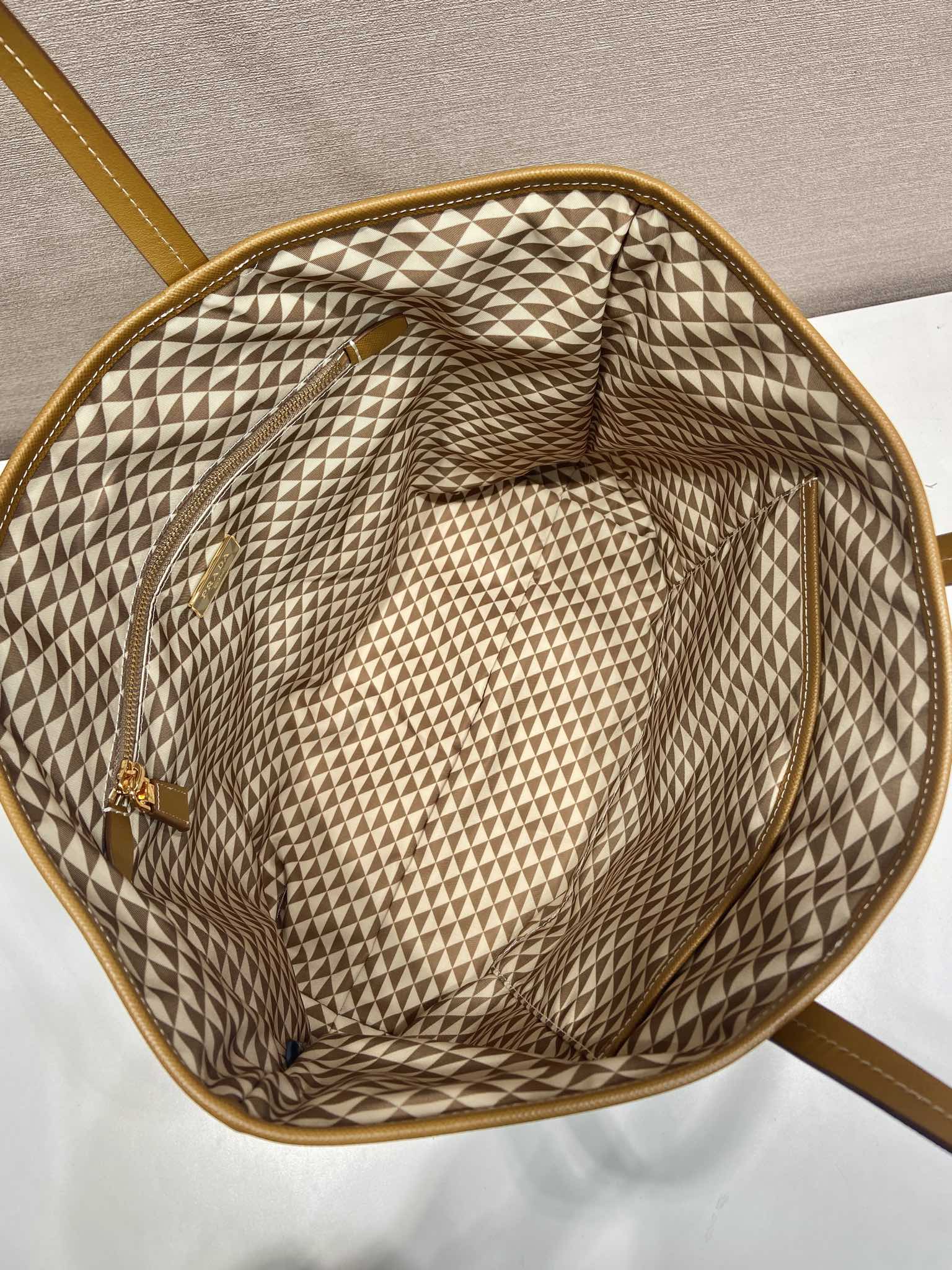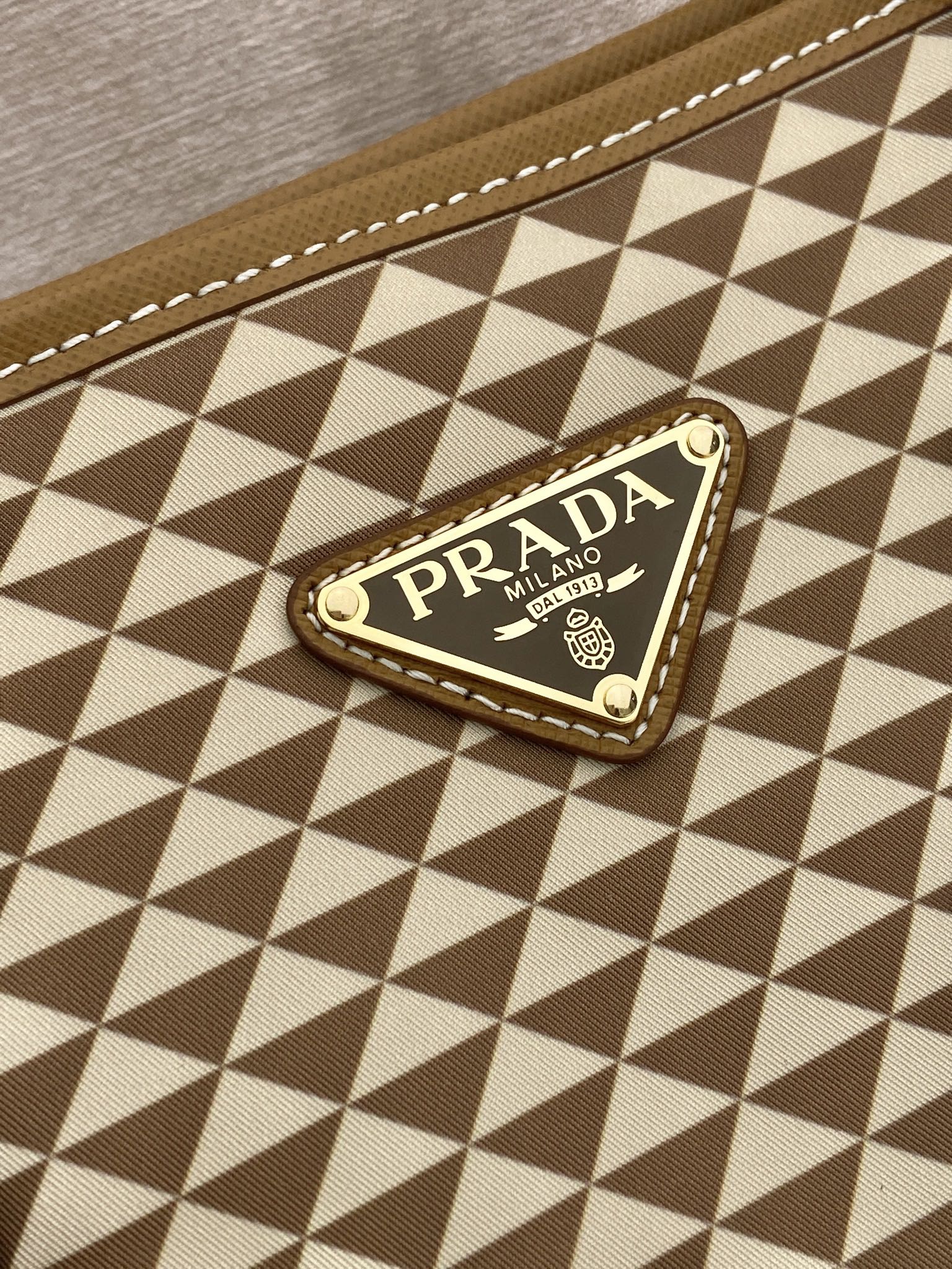 TOTE BAG 33 IN BROWN MIX CREAM TRIANGLE PATTERN EMBROIDERED FABRIC