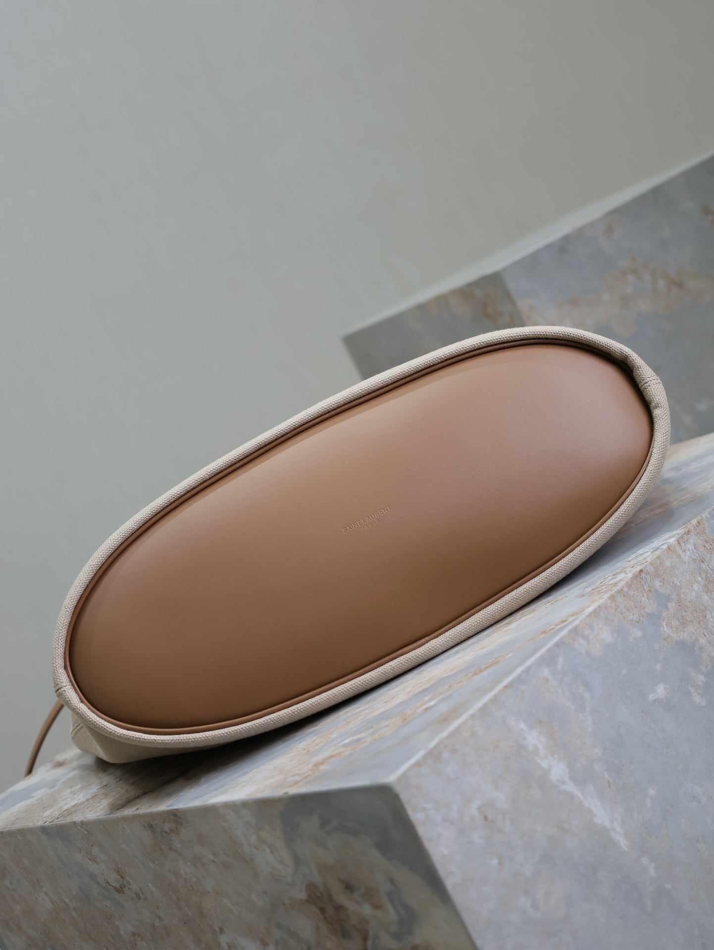 TOTE BAG 38 IN WHITE CANVAS AND BROWN LEATHER TRIM GOLD HARDWARE