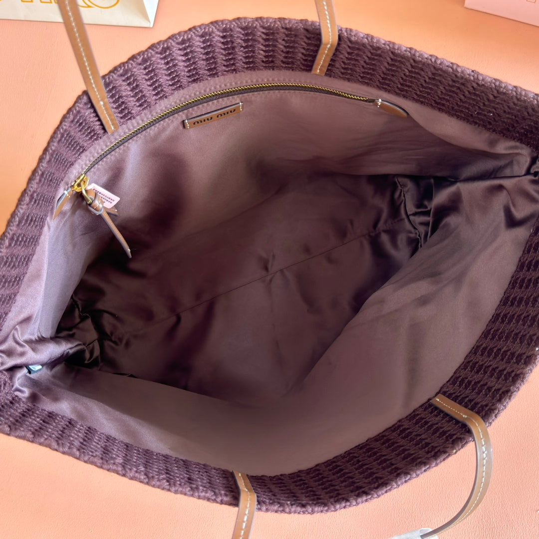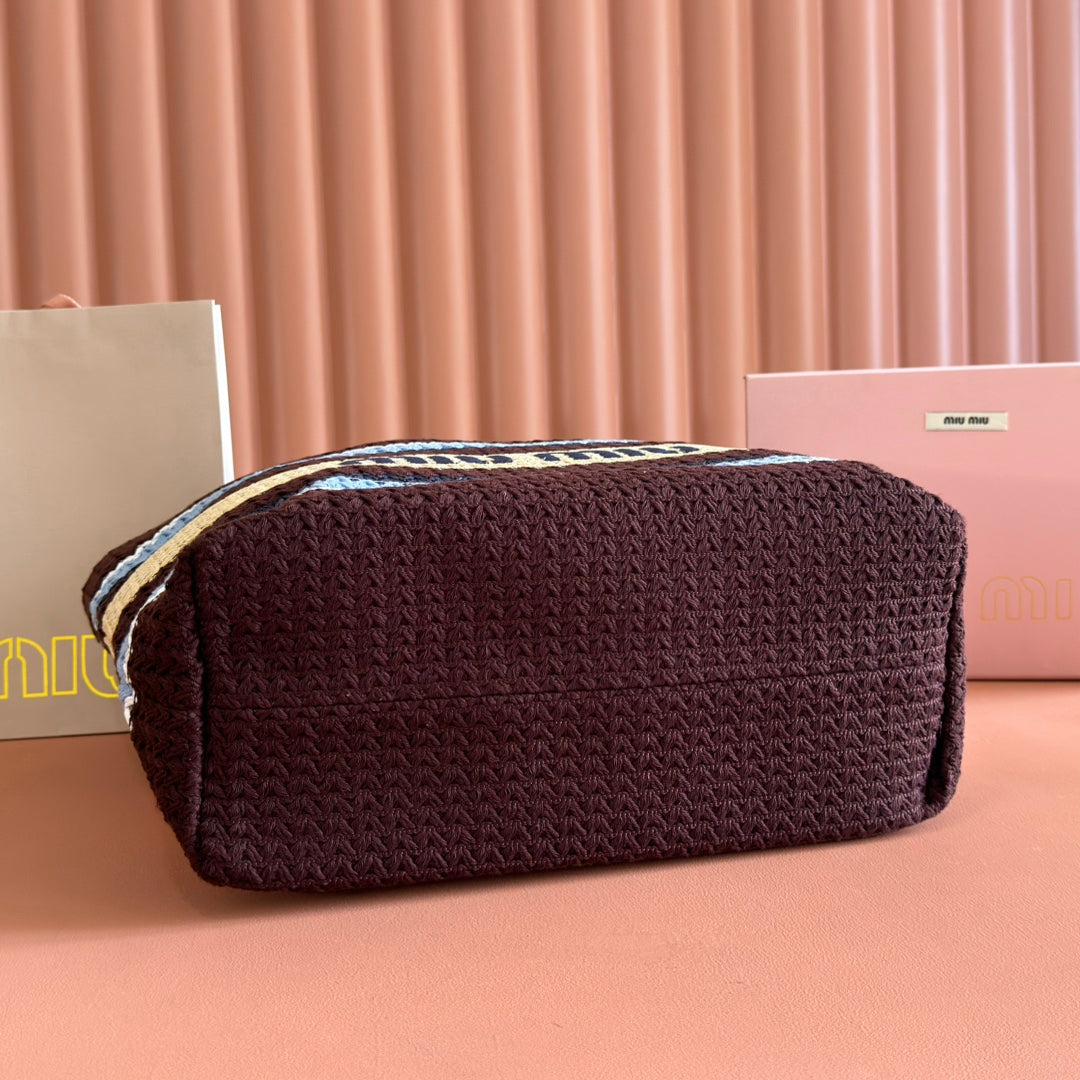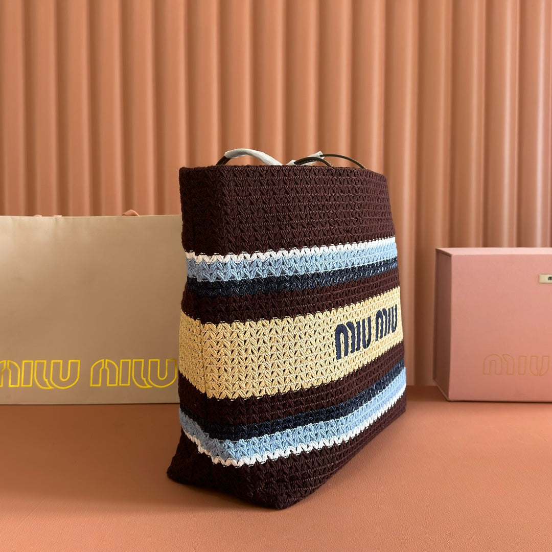 TOTE BAG 40 IN STRIPED PATTERN OF BROWN BLUE AND YELLOW WOVEN RAFFIA