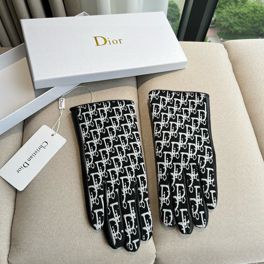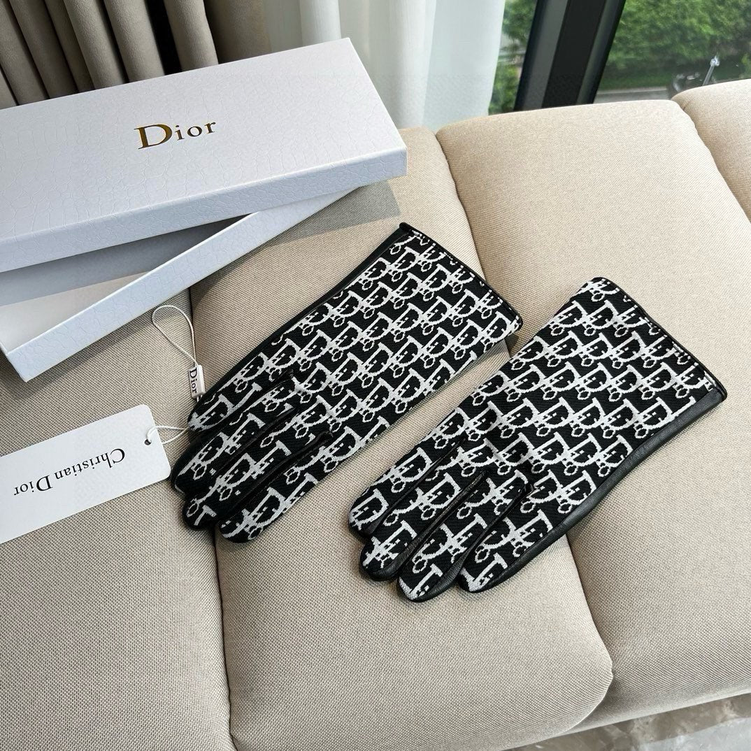 TOUCHSCREEN GLOVES IN BLACK MIX WHITE LAMBSKIN AND MONOGRAM JACQUARD FABRIC 465792