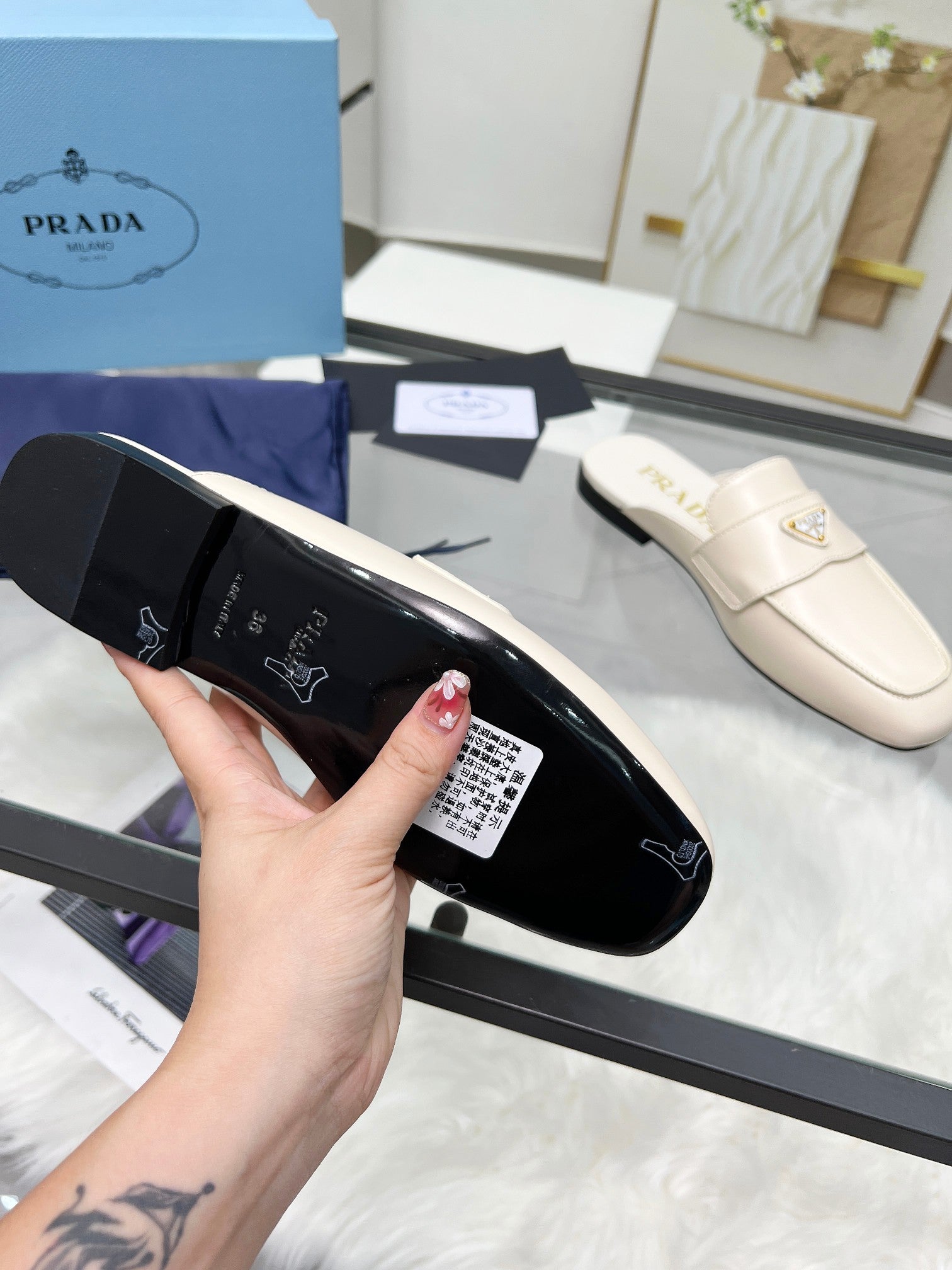 TRIANGLE LOGO MULES IN WHITE CALFSKIN
