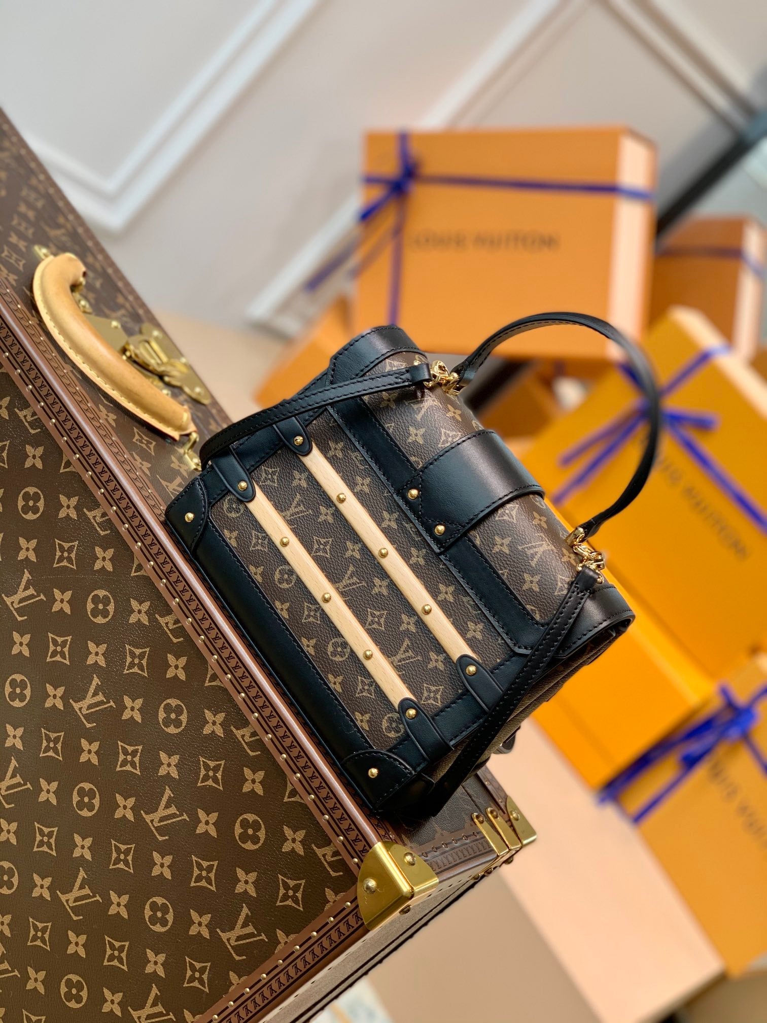 TRIANON PM 21 IN BROWN MONOGRAM COATED CANVAS AND BLACK CALFSKIN SIGNATURE S-LOCK