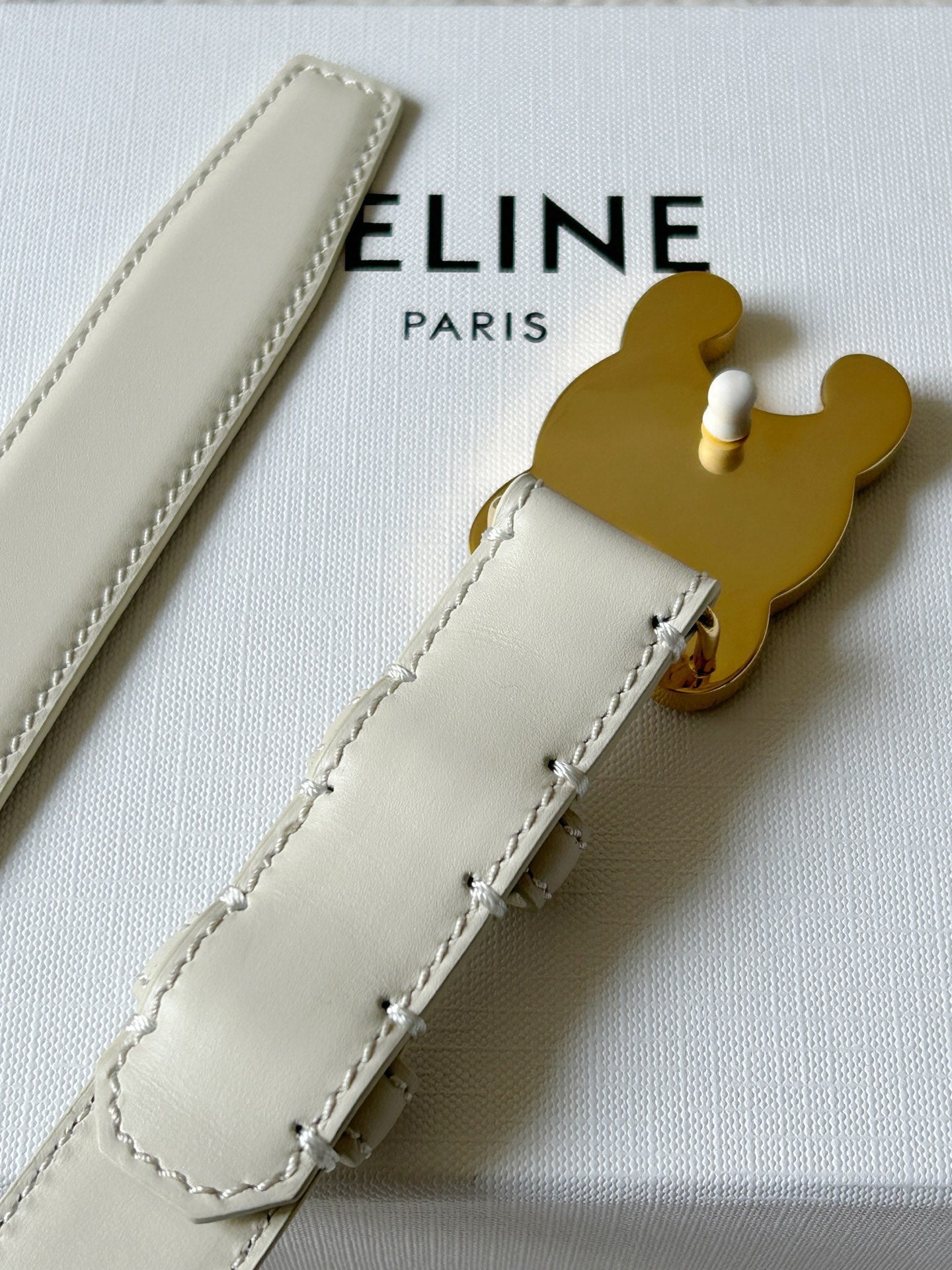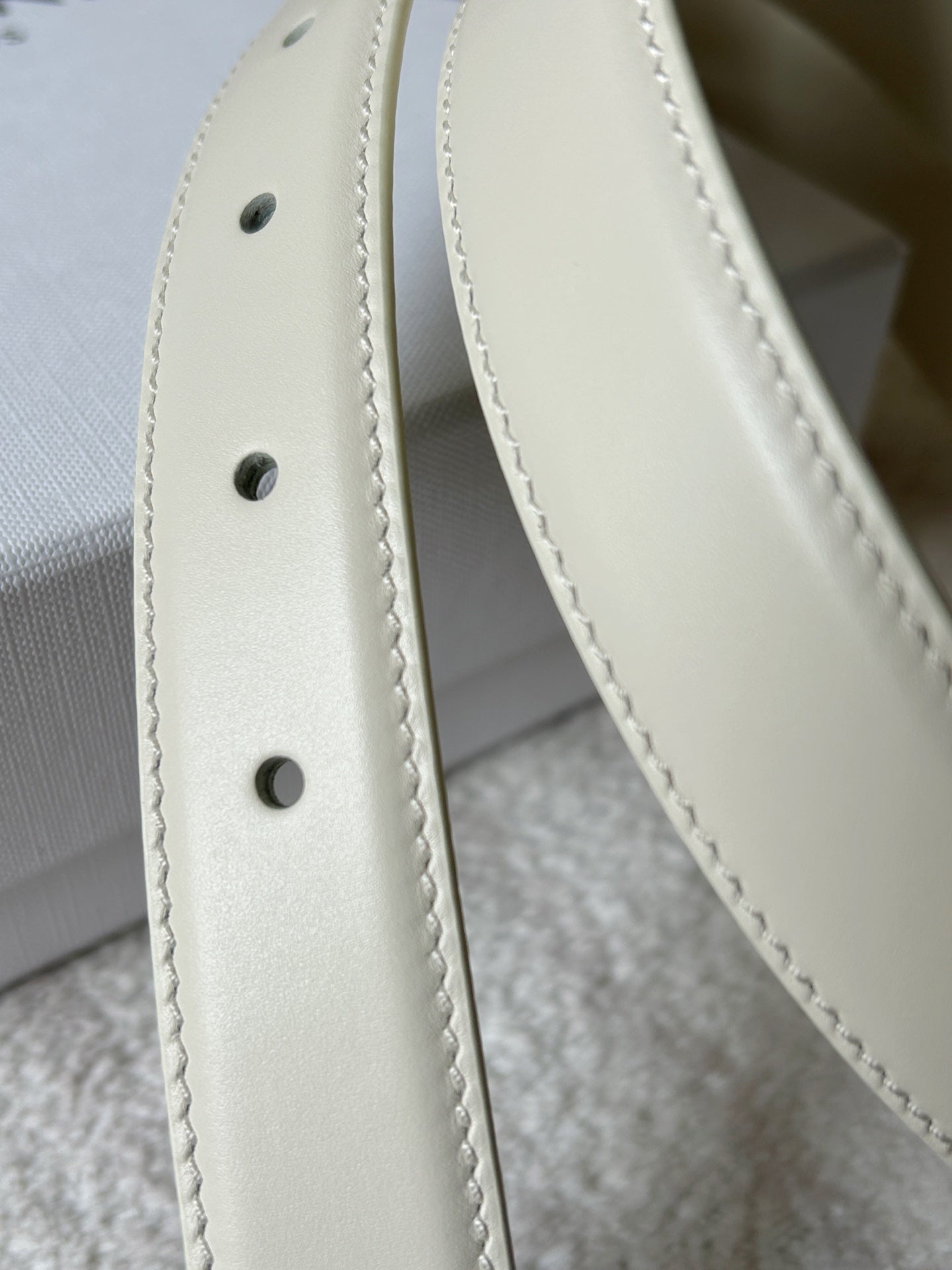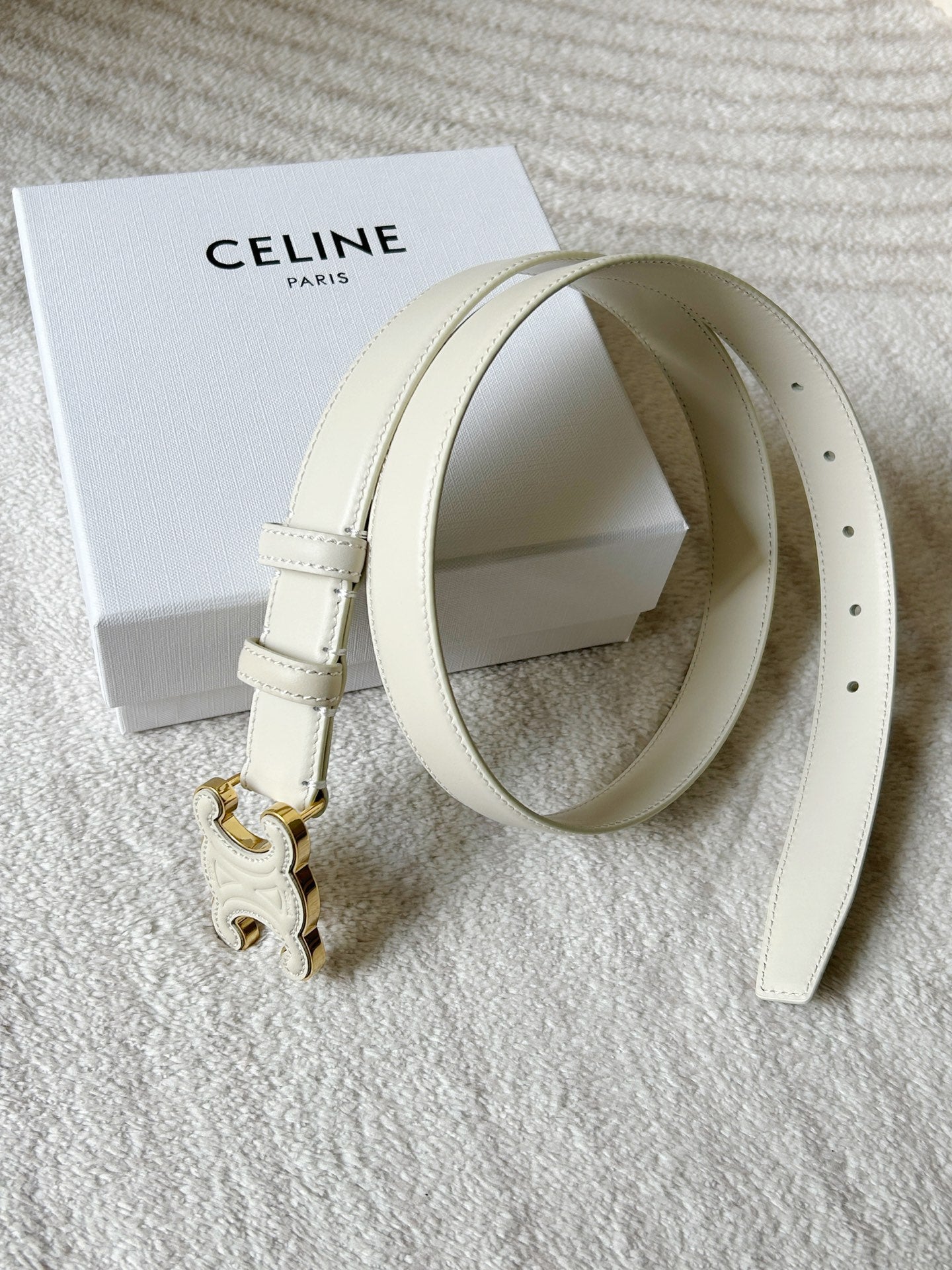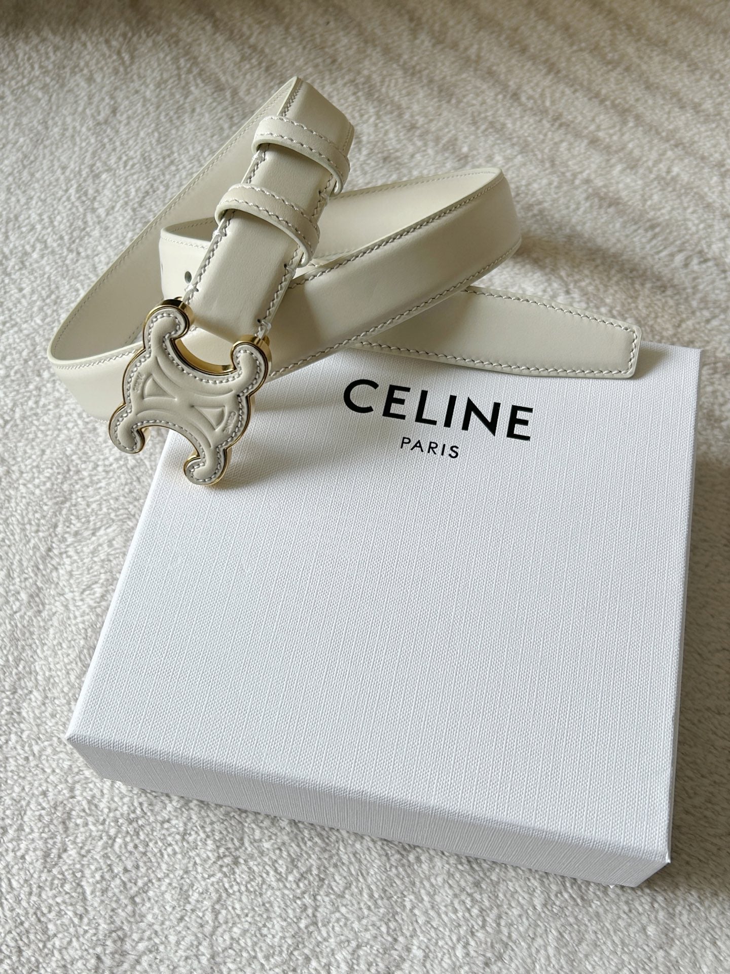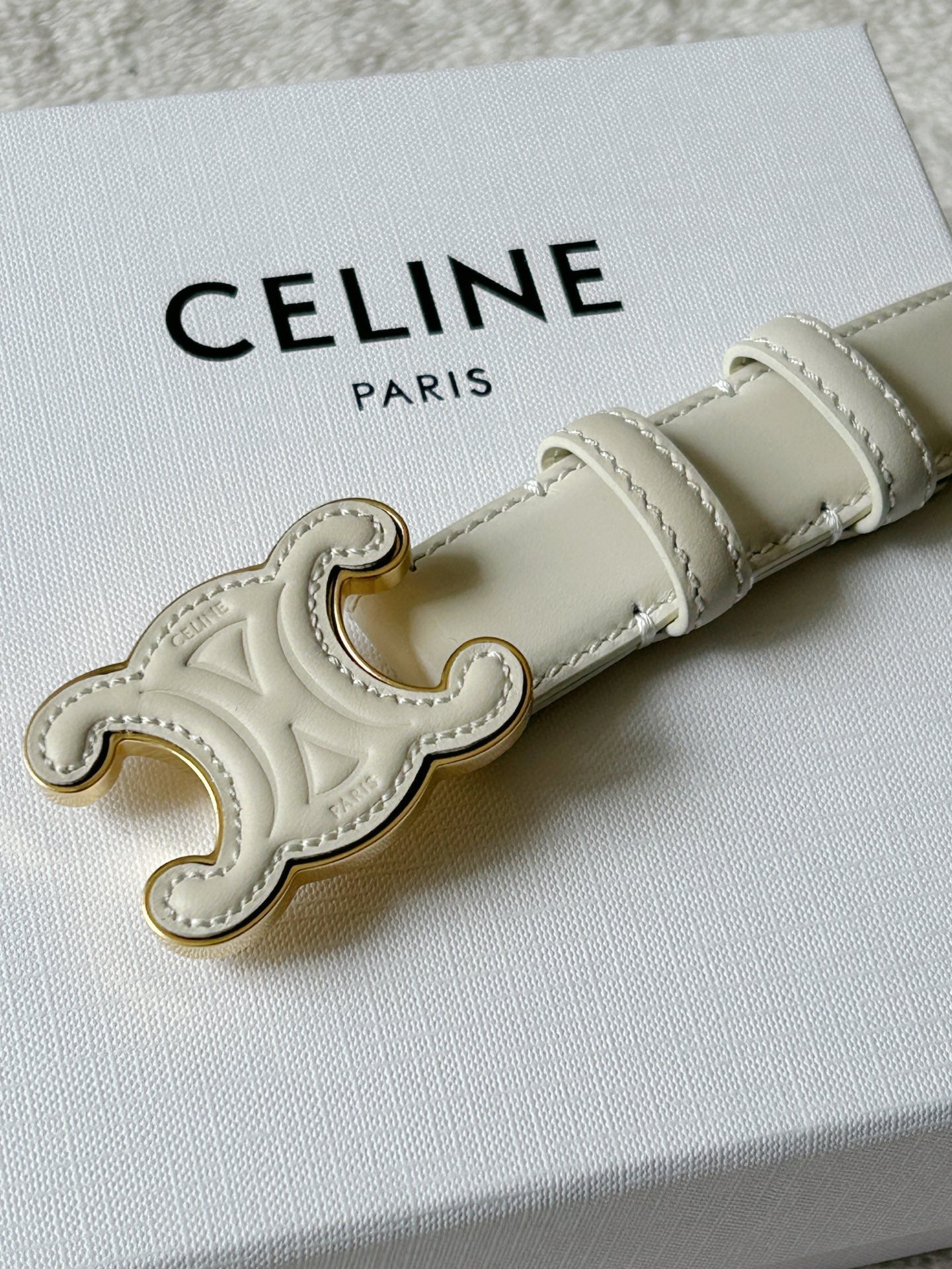 TRIOMPHE BELT 24MM IN WHITE CALFSKIN WITH LEATHER BUCKLE